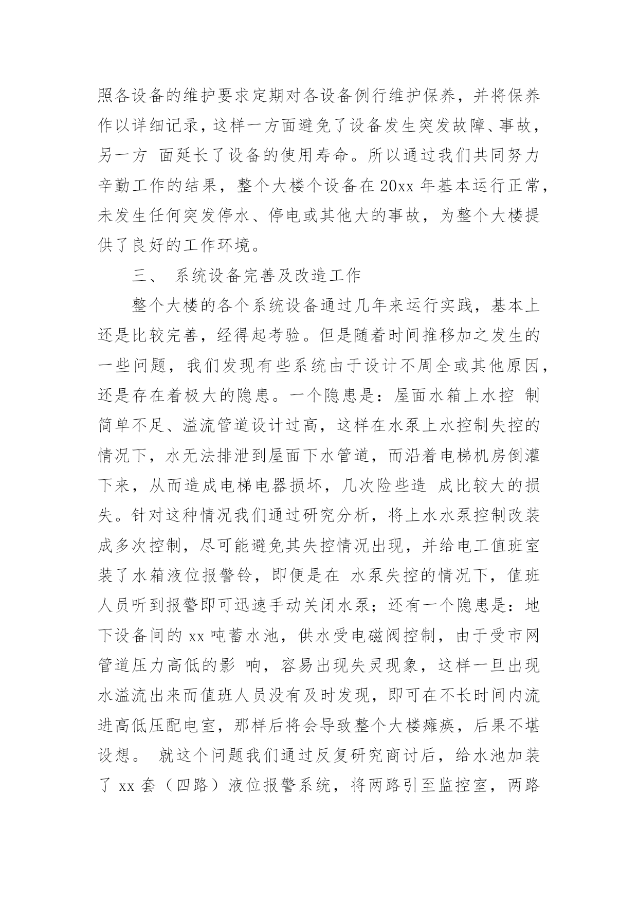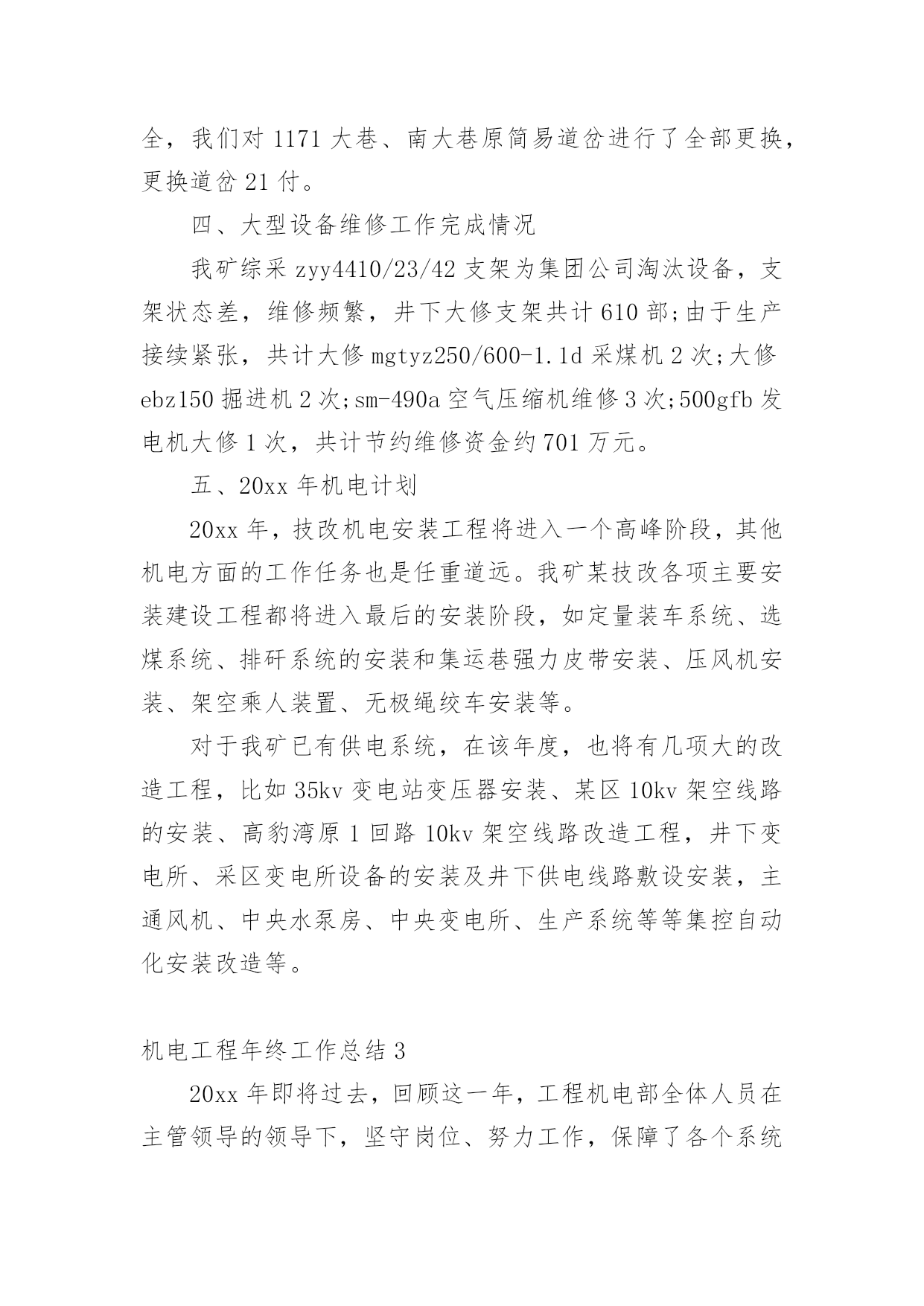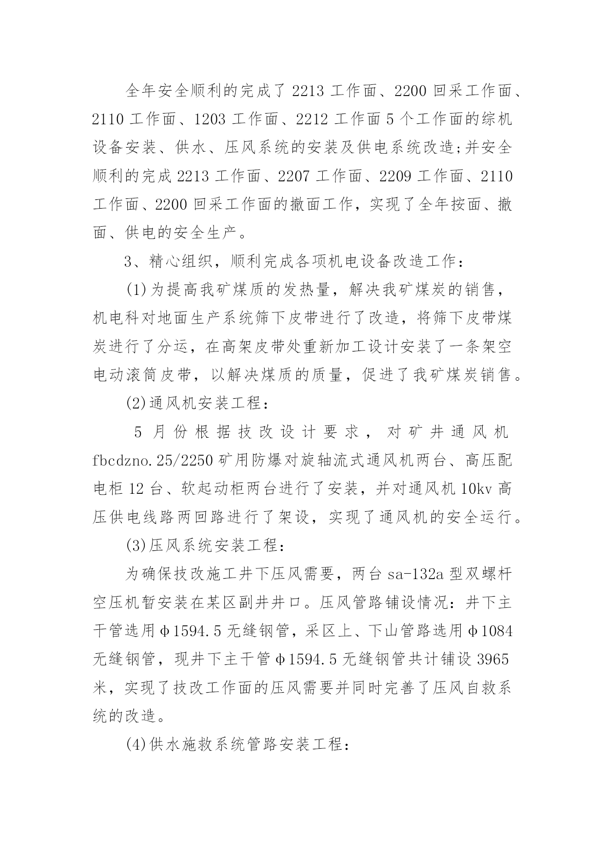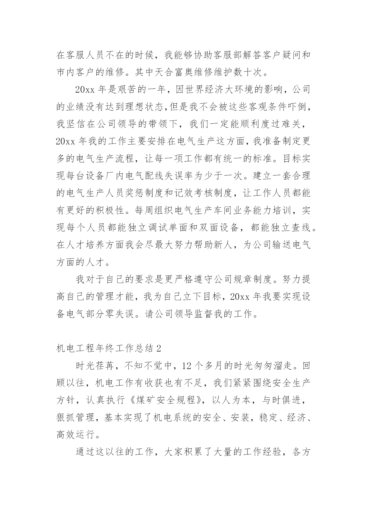 机电工程年终工作总结总结是把一定阶段内的有关情况分析研究,做出有指导性结论的书面材料,它能够使头脑更加清醒,目标更加明确,因此我们需要回头归纳,写一份总结了。总结你想好怎么写了吗?以下是小编收集整理的机电工程年终工作总结,仅供参考,希望能够帮助到大家。机电工程年终工作总结1xxxx年是我在公司工作的第一年,在这一年里随着公司在不断的发展和壮大我个人也从一个不知所谓的棱头青逐渐的变的成熟,从一个对平衡机毫无了解的门外汉变成一个熟悉平衡机原理熟悉公司各种产品的专业技术人员,而且在对部门的管理和与人沟通方面我也有了更深层次的认识,我深知我取得的这些进步和公司领导的培养是分不开的。没有他们不厌其烦的教导和一次次的给予机会我不会取得今天的进步,20xx年,将会是机遇和挑战并存的一年,我将团结在公司领导核心周围,努力工作,艰苦奋斗,为公司向更高层次发展做出自己的贡献。回首15年初,虽然在15年公司取得了可喜的成果,但是公司领导并没有沾沾自喜,反而为xxxx年制定了更高的目标。我也在经过短暂的调整之后马上进入自己的角色,当时按照领导的指示,我负责研发部管理和电气车间生产管理的工作。、我首先指定的部门工作范畴细则,明确了整个部门的工作任务。又对每个部门的成员在整个部门工作中所负责的范畴做了规定并已书面的形式发放到他们手中,我制定了部门成员结构组成图,明确上下级的从属关系。我想在完成公司交给的部门任务的同时建立一个有纪律,有向心力的团队更好的为公司服务是领导更希望我能做到的。在xxxx年初我的部门人员发生了很大的变化,首先是李鑫的离职按照公司领导的指示我迅速调整了部门的结构,将原来主要负责电气生产的董建军接替李鑫的研发工作,将原来只参与电气生产的许建文安排在负责生产管理并参与生产的位置,在我整理李鑫的工作备份时候,我发现一体机单片机程序不能正常工作,我用其他方法找到李鑫要回了能用的程序,并完成当时李鑫负责的一东项目,4月份董建军离职,影响了第一台微电机自动平衡机部分编写,为了保证设备参展,我连续加班,五一长假也不例外,最后实现了设备参展前有流畅动作的目标。这时公司领导也不断的给我提供新的技术人员来补充部门工作。在新的`人员还不能完全胜任的阶段,为了能完成生产任务,我经常是身兼多职,从电气图设计,到指导和参与配电完成再有新plc程序和触摸屏程序编写,设备厂内调试都由我一个人来完成。很多时候为了不耽误工程的进度我就利用自己的业余休息时间加班加点。加班到很晚没有车我就自己花钱打车回家。重庆自动线项目,上海自动打孔机项目,德惠大华自动机项目都是这个阶段的完成的。我还努力培养新人,把许建文掉到研发办公室,指导他使用PROTEL制图软件,制作电气原理图,在plc编程上,我也经常把思路告诉他让他动手编写程序,但是由于我太急功尽力给他的压力太大,使得他承受不住压力提出辞职。在此事情上人身上我重新认识了培养人才的方法和观点,要想炼出好钢,就应该找到好的材料,不管在意志品质上还是道德修养上,选中人才后再努力培养才不能造成人力和物力的浪费。在接下来的工作中我也是按照这样的思想去选材,后来公司输送的人才里也确实有比较适合的人选,只不过都因为这样和那样的原因他们中的一部分离开了公司。20xx年公司完成自动机7台,其中我独立完成了上海奥柏,德惠大华,和重庆三工位三台的电气设计工作,程序设计和厂内调试工作,一东钻削的厂内调试工作和程序后期查错工作,东风车桥制动鼓厂内调试工作,我组织其中4台设备的电气配线工作。公司完成双面机4台,其中烟台大学的曲轴平衡机的vb软件更改和厂内调试,一四环和山东凯马的厂内调试由我完成。公司完成单面机18台,在董建军离职后电气图纸设计由我独立完成。如售后人员不在公司我也对设备进行厂内调试。在电气设计,生产和程序上没有因为失误给公司带来损失。在公司办公设备或办公网络出现问题时,我随时给予处理,保证公司正常办公。工控机百分之七十由我安装调试。在客服人员不在的时候,我能够协助客服部解答客户疑问和市内客户的维修。其中天合富奥维修维护数十次。20xx年是艰苦的一年,因世界经济大环境的影响,公司的业绩没有达到理想状态,但是我不会被这些客观条件吓倒,我坚信在公司领导的带领下,我们一定能顺利度过难关,20xx年我的工作主要安排在电气生产这方面,我准备制定更多的电气生产流程,让每一项工作都有统一的标准。目标实现每台设备厂内电气配线失误率为少于一次。建立一套合理的电气生产人员奖惩制度和记效考核制度,让工作人员都能有更好的积极性。每周组织电气生产车间业务能力培训,实现每个人员都能独立调试单面和双面设备,都能独立查线。在人才培养方面我会尽最大努力帮助新人,为公司输送电气方面的人才。我对于自己的要求是更严格遵守公司规章制度。努力提高自己的管理才能,我为自己立下目标,20