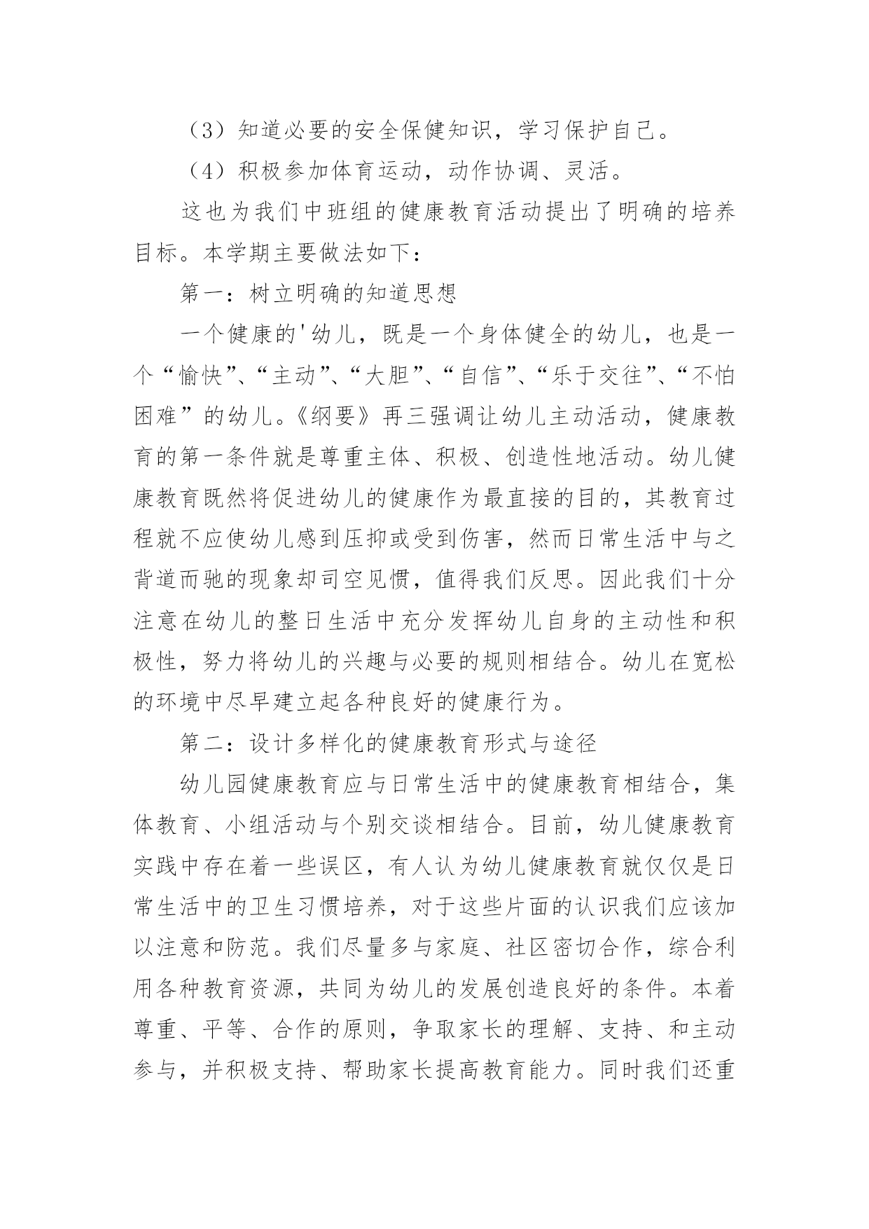 大班健康教育总结总结是把一定阶段内的有关情况分析研究,做出有指导性结论的书面材料,它可以使我们更有效率,快快来写一份总结吧。那么总结有什么格式呢?下面是小编收集整理的大班健康教育总结,欢迎阅读,希望大家能够喜欢。一直以来,“健康第一”是幼儿园教育的首要任务。健全的身体是一个人做人、做事、做学问的基矗幼儿离不开生活,生活离不开健康教育,幼儿的生活是丰富多彩的,健康教育也应把握时机。健康既是幼儿身心和谐发展的结果,也是幼儿身心充分发展的前提;健康是幼儿的幸福之源;离开健康,幼儿就不可能近尽情游戏,也不能专心学习,甚至无法正常生活;幼儿时代的健康不仅能够提供幼儿期的生命质量,而且为一生的健康赢得了时间。因此,我认为健康教育要充分考虑到本班孩子的年龄特点和个别差异,无论是进行幼儿健康教育还是试图改善幼儿的周围环境、都要依据幼儿身心发展的特点,否则不仅不能促进健康,而且可能有损健康。本学期我们大班在教育活动中把促进幼儿身心健康成长当成首要任务。促进幼儿身心健康发展既是幼儿教育的根本目的也是幼儿健康教育的终极目标,《纲要》中对幼儿健康发展提出几点:(1)身体健康,在集体生活中情绪安定、愉快。(2)生活、卫生习惯良好,有基本的生活自理能力。(3)知道必要的安全保健知识,学习保护自己。(4)积极参加体育运动,动作协调、灵活。这也为我们中班组的健康教育活动提出了明确的培养目标。本学期主要做法如下:第一:树立明确的知道思想一个健康的'幼儿,既是一个身体健全的幼儿,也是一个“愉快”、“主动”、“大胆”、“自信”、“乐于交往”、“不怕困难”的幼儿。《纲要》再三强调让幼儿主动活动,健康教育的第一条件就是尊重主体、积极、创造性地活动。幼儿健康教育既然将促进幼儿的健康作为最直接的目的,其教育过程就不应使幼儿感到压抑或受到伤害,然而日常生活中与之背道而驰的现象却司空见惯,值得我们反思。因此我们十分注意在幼儿的整日生活中充分发挥幼儿自身的主动性和积极性,努力将幼儿的兴趣与必要的规则相结合。幼儿在宽松的环境中尽早建立起各种良好的健康行为。第二:设计多样化的健康教育形式与途径幼儿园健康教育应与日常生活中的健康教育相结合,集体教育、小组活动与个别交谈相结合。目前,幼儿健康教育实践中存在着一些误区,有人认为幼儿健康教育就仅仅是日常生活中的卫生习惯培养,对于这些片面的认识我们应该加以注意和防范。我们尽量多与家庭、社区密切合作,综合利用各种教育资源,共同为幼儿的发展创造良好的条件。本着尊重、平等、合作的原则,争取家长的理解、支持、和主动参与,并积极支持、帮助家长提高教育能力。同时我们还重视幼儿园课程的潜在影响,环境是重要的教育资源,因此我们通过环境的创设和利用,有效地促进幼儿的发展。在幼儿健康教育实施中,我们不仅重视幼儿园物质环境的创设,而且应重视幼儿园心理环境的创设,本着幼儿身理和心理的需求,我园于本学期购置了大量的幼儿可选择的活动器材,以此来引导、鼓励幼儿大胆、积极地参与活动,同时还培养了幼儿大方友善的交往能力。