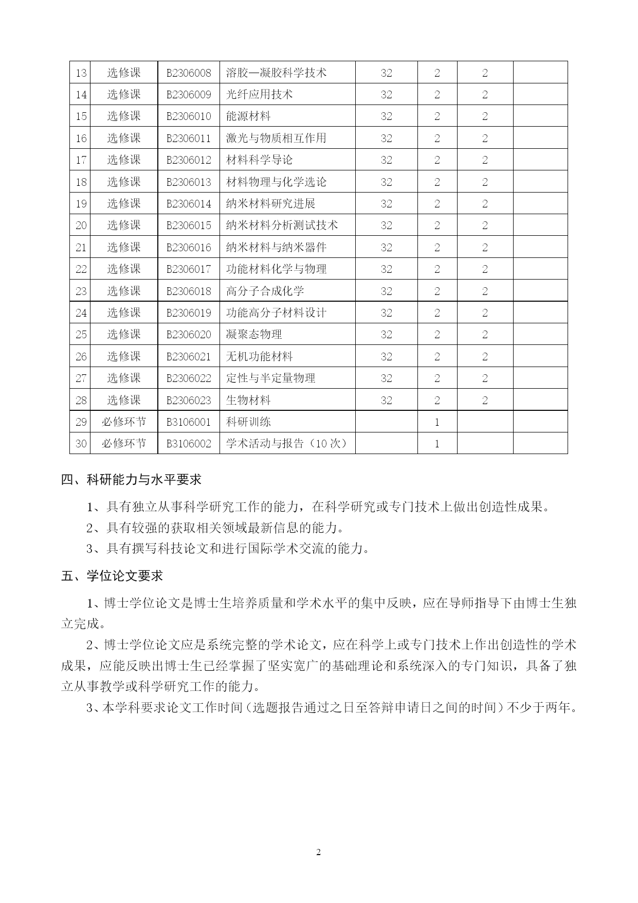 材料物理与化学专业(080501)博士学位研究生培养方案