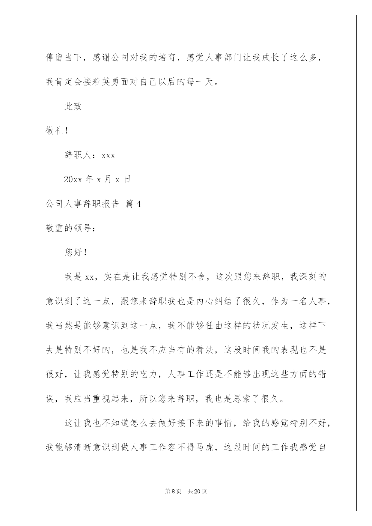 第PAGE\*Arabic\*MERGEFORMAT20页共NUMPAGES\*Arabic\*MERGEFORMAT20页第PAGE\*MERGEFORMAT20页共NUMPAGES\*MERGEFORMAT20页第PAGE\*MERGEFORMAT20页共NUMPAGES\*MERGEFORMAT20页第PAGE\*MERGEFORMAT20页共NUMPAGES\*MERGEFORMAT20页第PAGE\*MERGEFORMAT20页共NUMPAGES\*MERGEFORMAT20页第PAGE\*MERGEFORMAT20页共NUMPAGES\*MERGEFORMAT20页第PAGE\*MERGEFORMAT20页共NUMPAGES\*MERGEFORMAT20页第PAGE\*MERGEFORMAT20页共NUMPAGES\*MERGEFORMAT20页第PAGE\*MERGEFORMAT20页共NUMPAGES\*MERGEFORMAT20页第PAGE\*MERGEFORMAT20页共NUMPAGES\*MERGEFORMAT20页第PAGE\*MERGEFORMAT20页共NUMPAGES\*MERGEFORMAT20页2022公司人事辞职报告公司人事辞职报告范文汇编9篇随着个人的素养不断提高,报告与我们愈发关系亲密,报告依据用途的不同也有着不同的类型。那么,报告究竟怎么写才合适呢?以下是我收集整理的公司人事辞职报告9篇,欢迎大家共享。公司人事辞职报告篇1敬重的领导:您好!我是人事部的助理XXX,特此给您写这份关于我要辞职的辞职报告,在此向您提出辞职,希望您能允许。我是在20xx年进入的公司,来到公司也快X年了,从我还是实习生起先就在公司了,所以我在公司待的事情还是特别的久的,我也对公司的人,公司的物,都有着深厚的感情,对我与公司一起经验的事情也是一样的历历在目。公司的人都特别的和善,而且对于公司的领导也是特别的和气,在公司从不会有压抑,惊慌的感觉,感觉在这个公司上班就是一种享受,每个人都是不骄不躁,不急不慢的做着公司的日常工作,但是在我们须要处理紧急事务的时候,我们就会自动拧成一股绳,快速而又完备的完成它,所以我很喜爱公司的企业文化,我们是相对单独的个体,同时我们也是特别团结的大家庭。在公司的团建活动中,我们也不会有职位之分,每个人都向挚友一样对待,在该玩的时候就好好的玩,在该工作的时候就仔细的工作,这始终是工作所宣导的,所以我们平常的集体活动也是特别的多。我真的也很感谢公司能够在这么久的时间里对我的栽培,很感谢公司的培育,喝水不忘挖井人,以后不管我在哪里,我都会满怀对公司的感恩。至于为什么要离开公司,为什么会选择在此时离开公司,缘由有许多,可能工作上的工作让我觉得没有挑战了,不再新颖了,可能也有别的其他的缘由吧。我主要的缘由就是我从进入公司起先,到现在我始终是这个岗位,始终都人事助理,每一天的工作就是帮助人事处理公司员工的各项事情,离职,入职,聘请,以及面试等人事须要帮助的事情,我都须要去做,可是就是在见证了公司的员工的来来走走,今日走了这个,明天可能那个就来了,所以就在公司一轮又一轮的换了之后,我仍旧还是处于这个岗位,从我来到公司时候是个助理,现在还是个助理。但是人总是须要前进的,须要向前看的,不行能始终甘愿在原地踏步,也希望自己的努力能与自己的职位工资成正比,自己的付出能与收获成正比,全部我在考虑很久之后,选择在现在,在此刻向您提出辞职。我会尽量在最短的时间里将自己工作处理好,并且完成对接,而且在我离开公司之后,我也不不会忘了公司的恩情,感谢公司,感恩公司。最终,希望领导您能尽快审查我的辞职报告,并尽早批准,再次感谢。此致敬礼!辞职人:XXX20xx年X月X日公司人事辞职报告篇2敬重的领导:您好!在20xx年x月,我入职到贵公司,任职着人事助理一职,算一下时间也有两年了吧。在这将近两年时间里,我看过许多员工的辞职报告,现在自己写这份沉重的辞呈,并将它交给领导,内心也是感概万分啊。我很感谢本部门的经理对我这两年的训诲和信任,在人事助理的职位上,我接触到了一些自己之前从来没有触遇到的领域,因为我所学的专业和人力资源这个行业毫无关系,所以,我就是在公司从零起先,学习如何把握薪酬的设计以及计算,学习要如何为公司聘请合适的人员。当然还有一些简洁的工作,比如,办理社会保险,还有签订员工劳动合同。聘请员工和设计薪酬是经理一步一步地将我教会的,因为自己没有这方面的专业学问,所以对这些须要肯定学问储备的工作还是有许多困惑的,但是经理没有因此不耐烦,而是将他这么多年的经验所