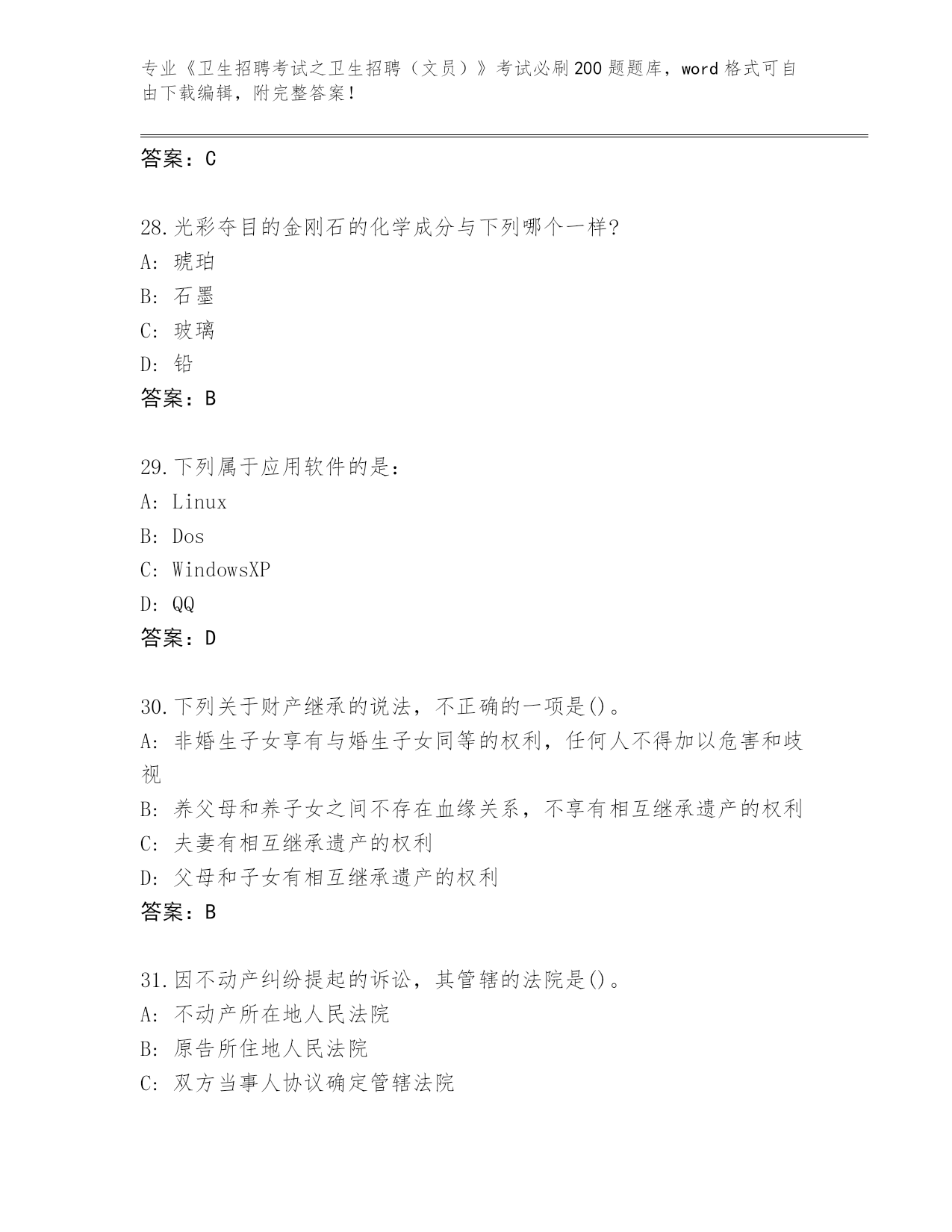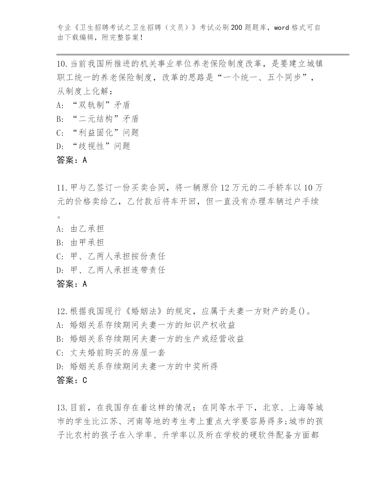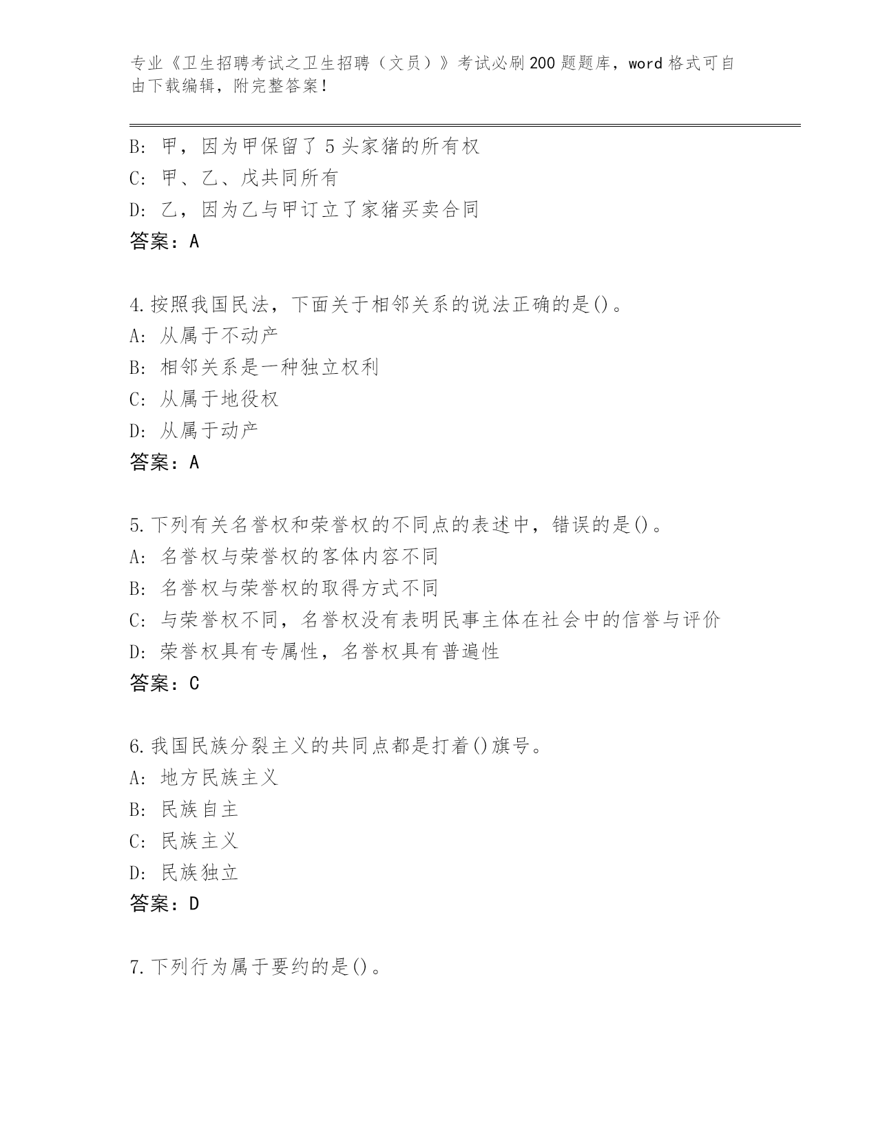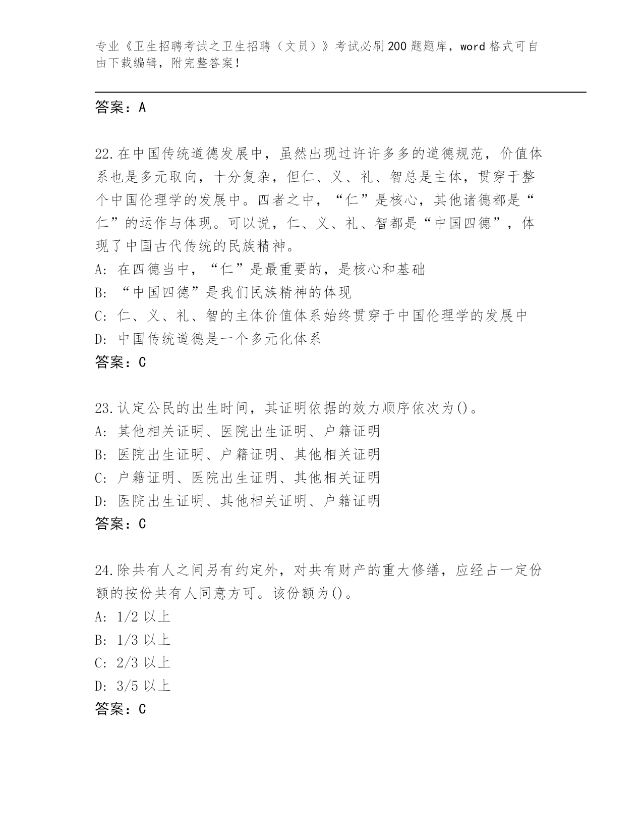 山西省交口县2024《卫生招聘考试之卫生招聘(文员)》考试必刷200题内部题库带答案(研优卷)