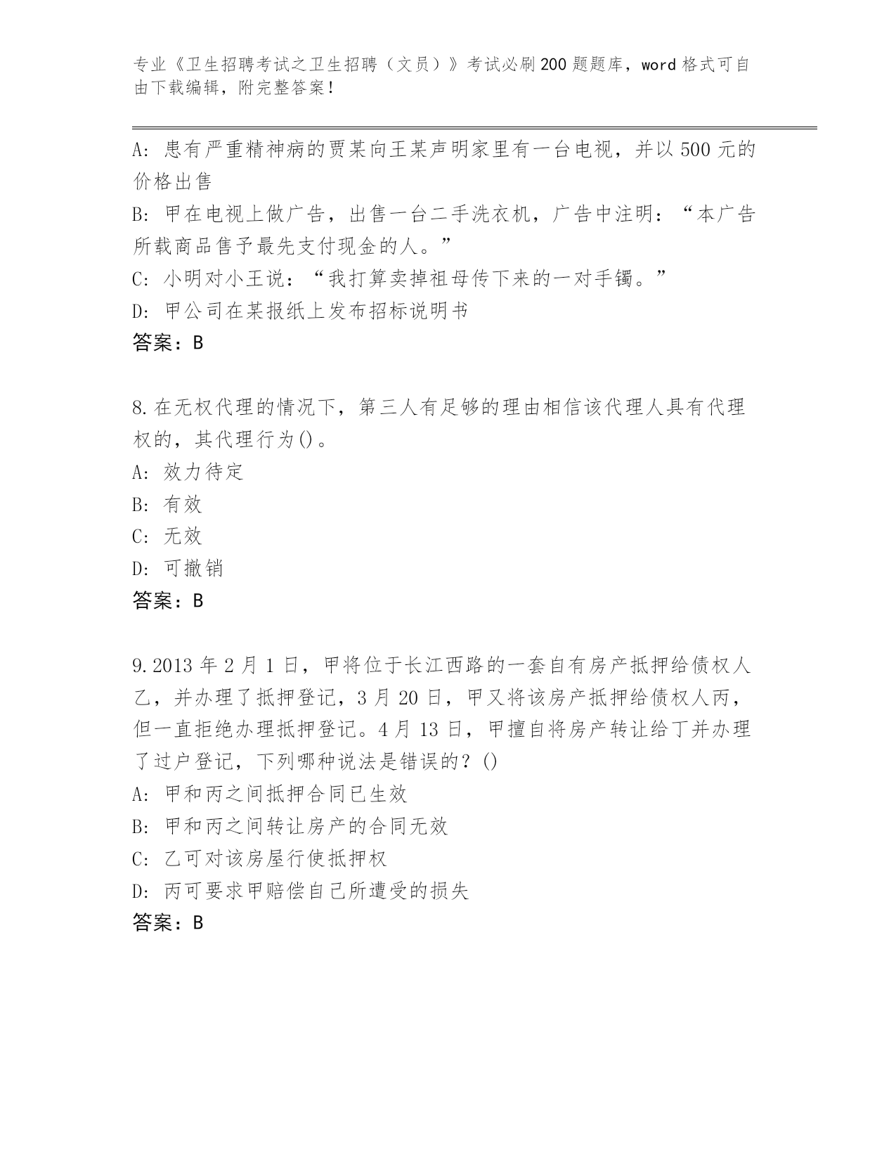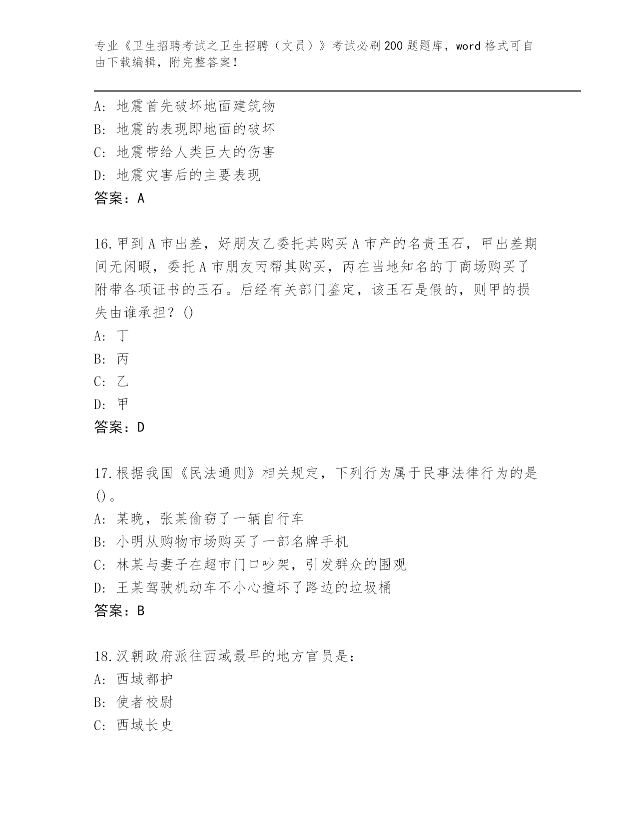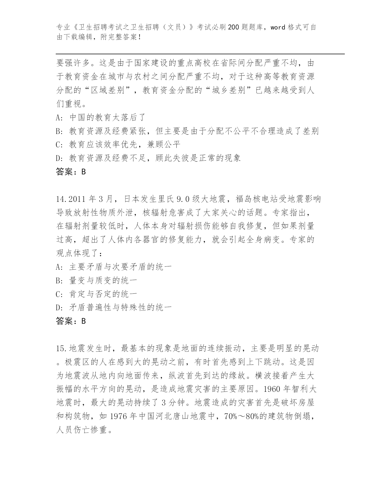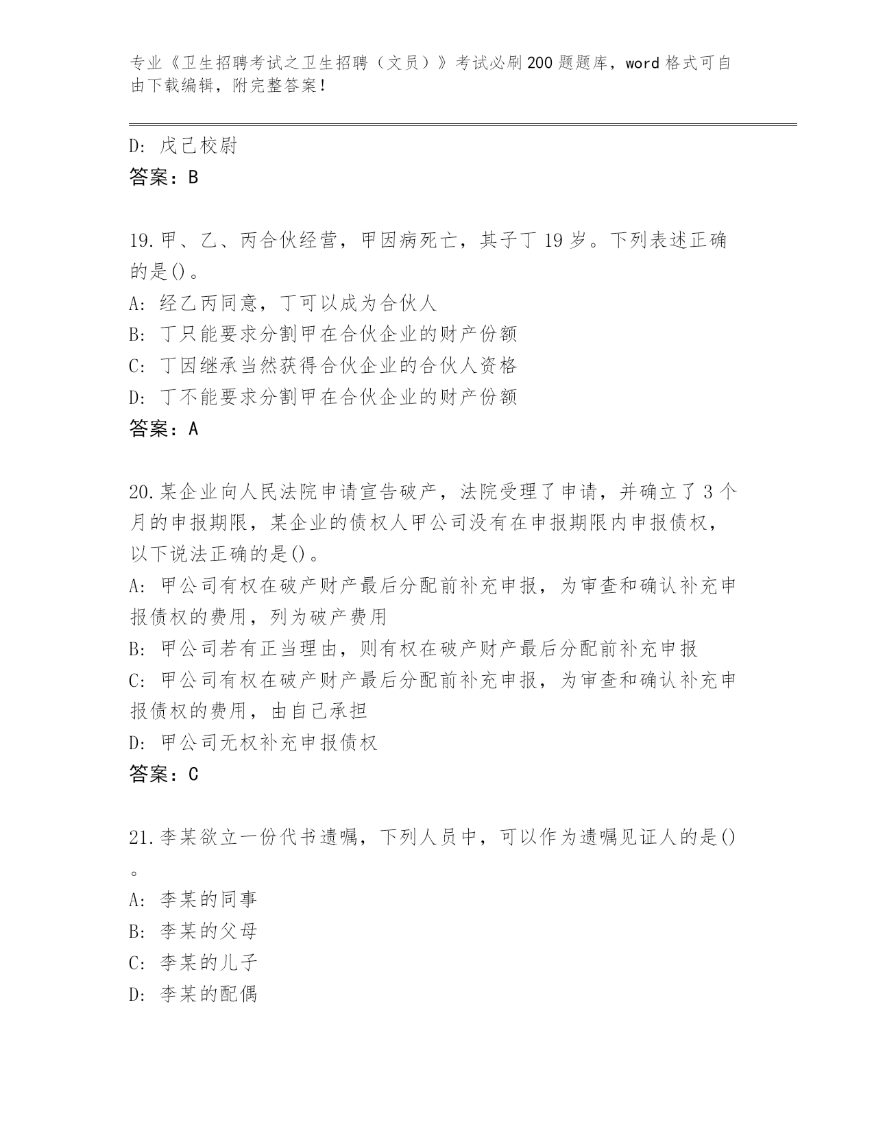 山西省交口县2024《卫生招聘考试之卫生招聘(文员)》考试必刷200题内部题库带答案(研优卷)
