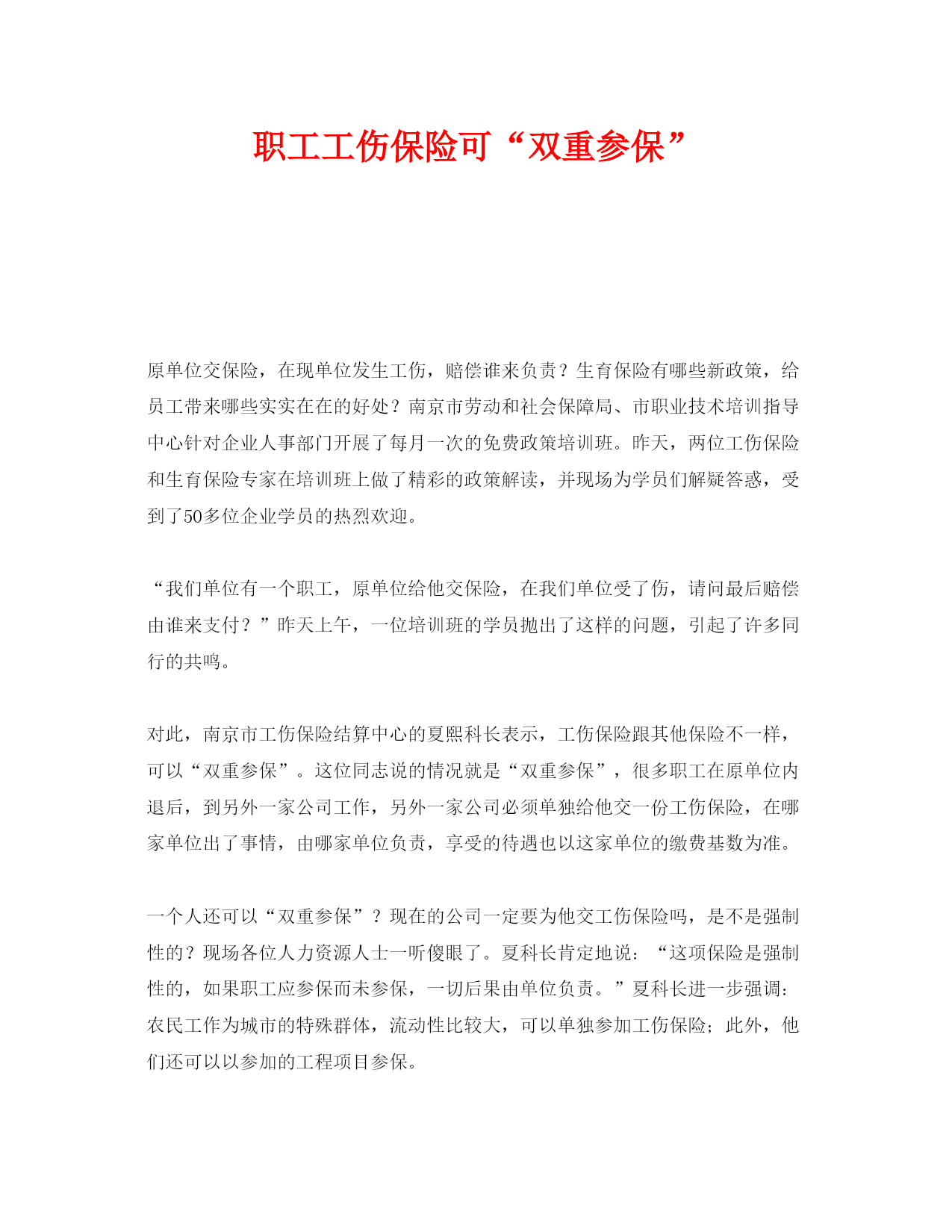 【精编】《工伤保险》之职工工伤保险可双重参保