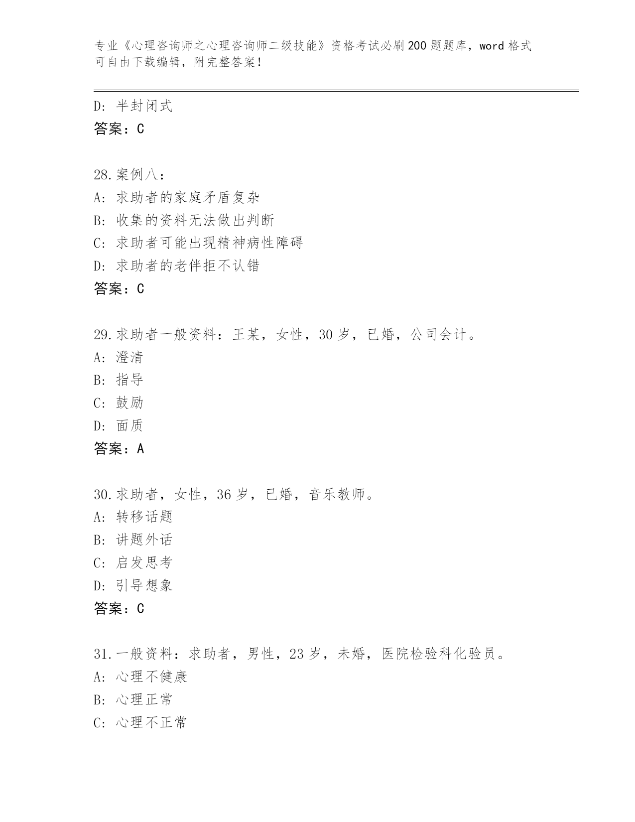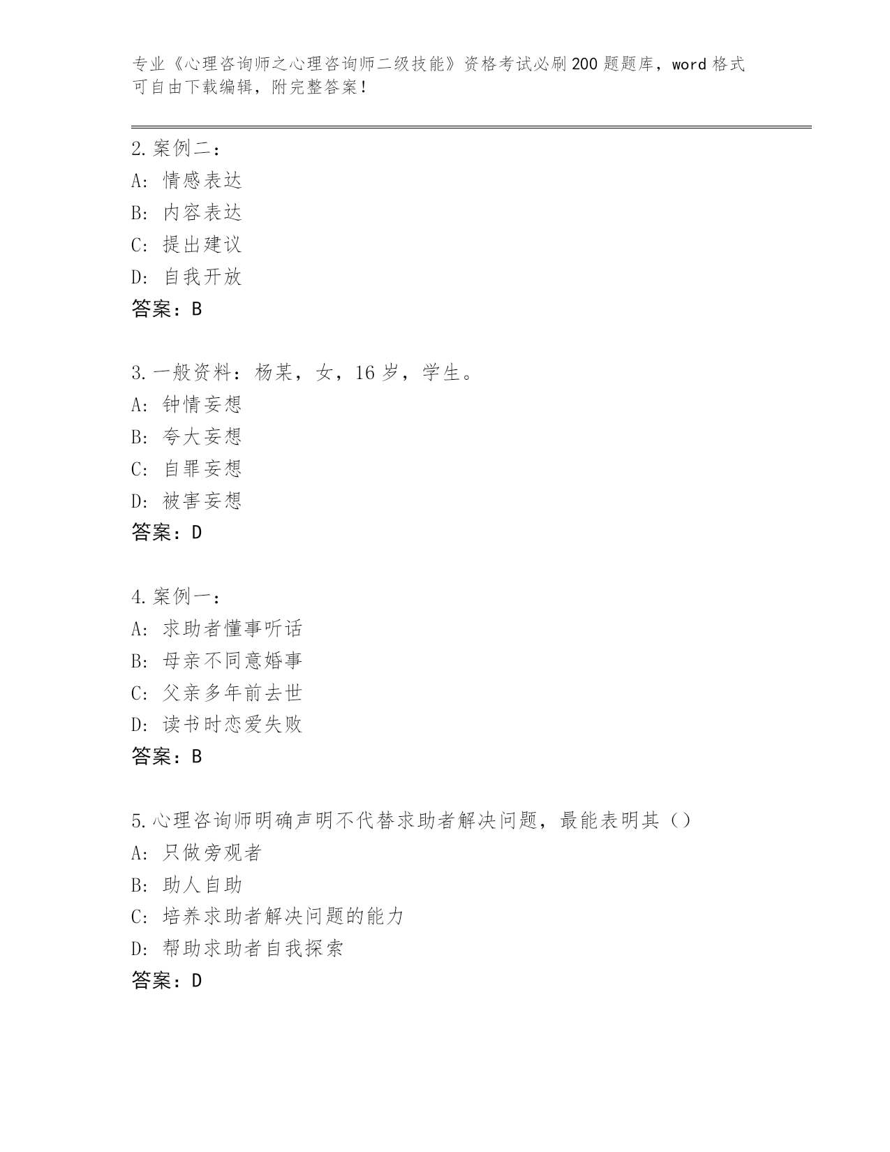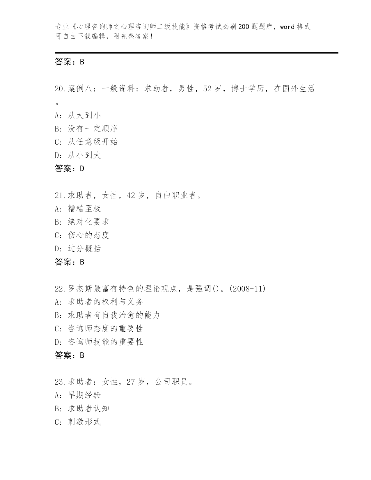 山西省夏县《心理咨询师之心理咨询师二级技能》资格考试必背200题真题含答案下载