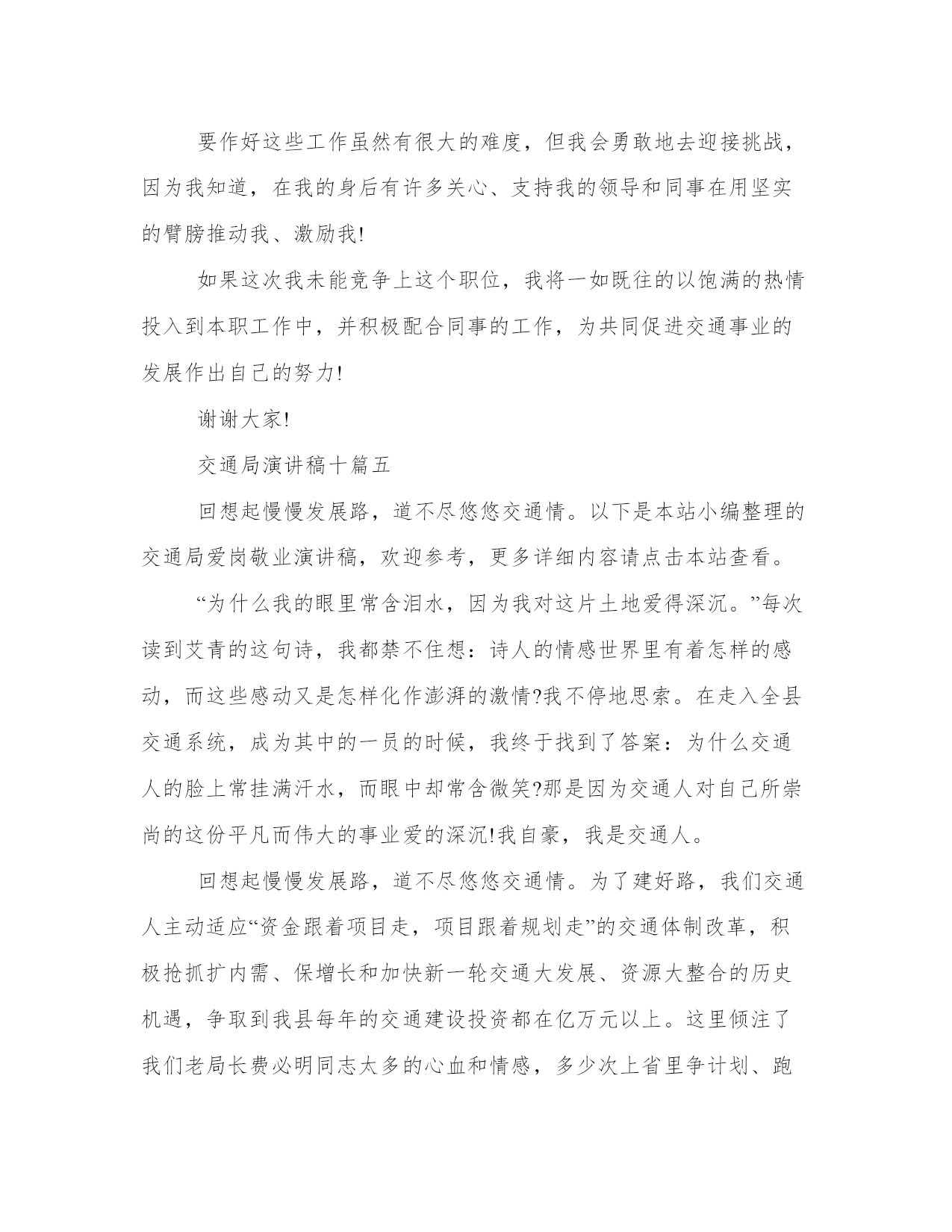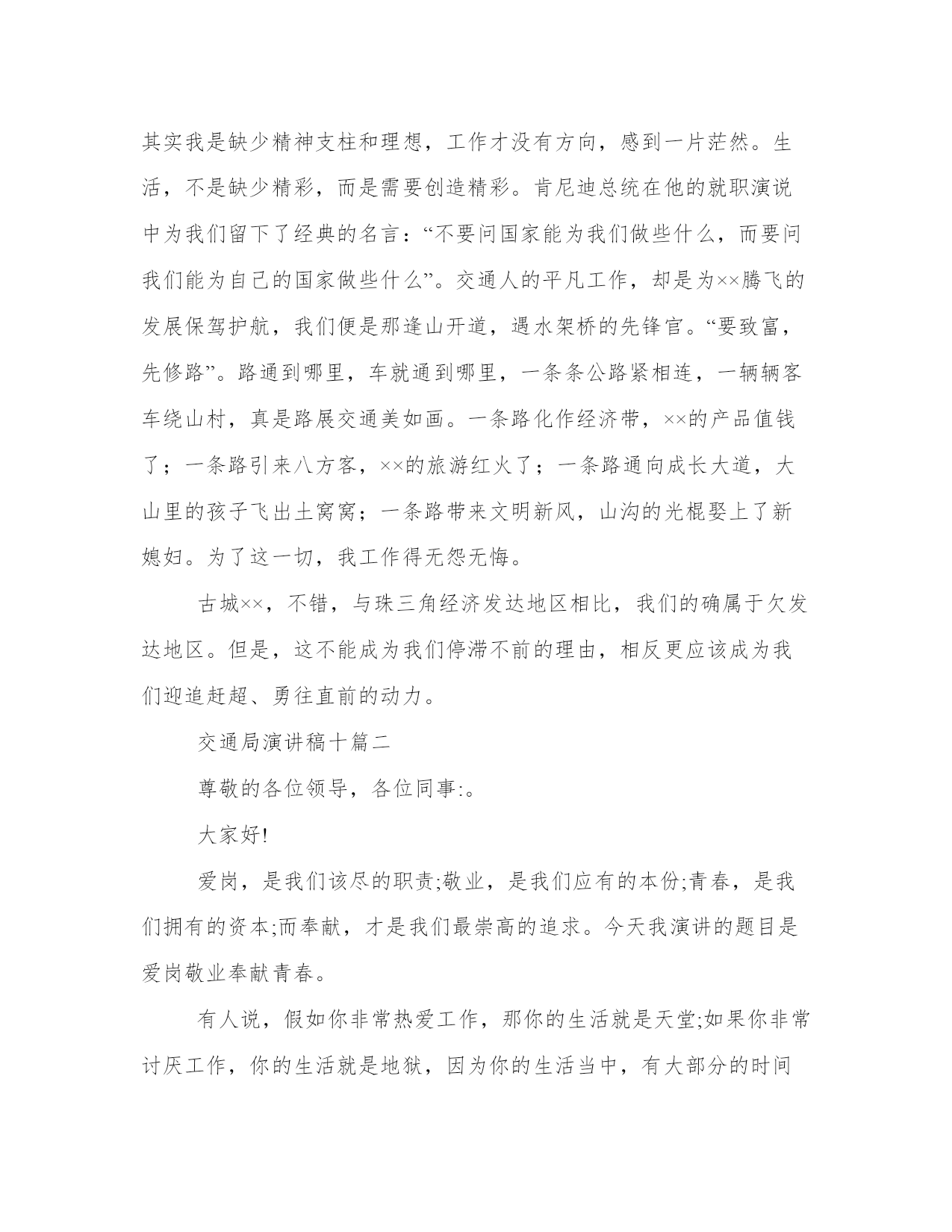 2023年交通局演讲稿十交通局演讲稿(大全8篇).docx