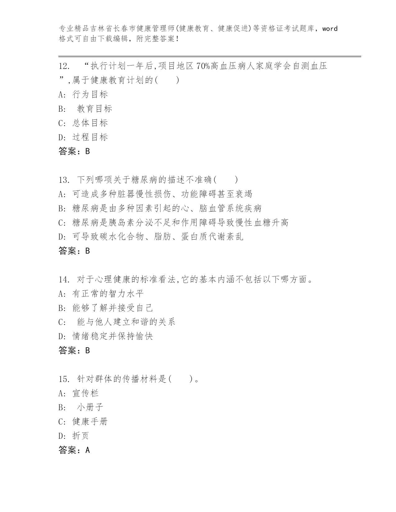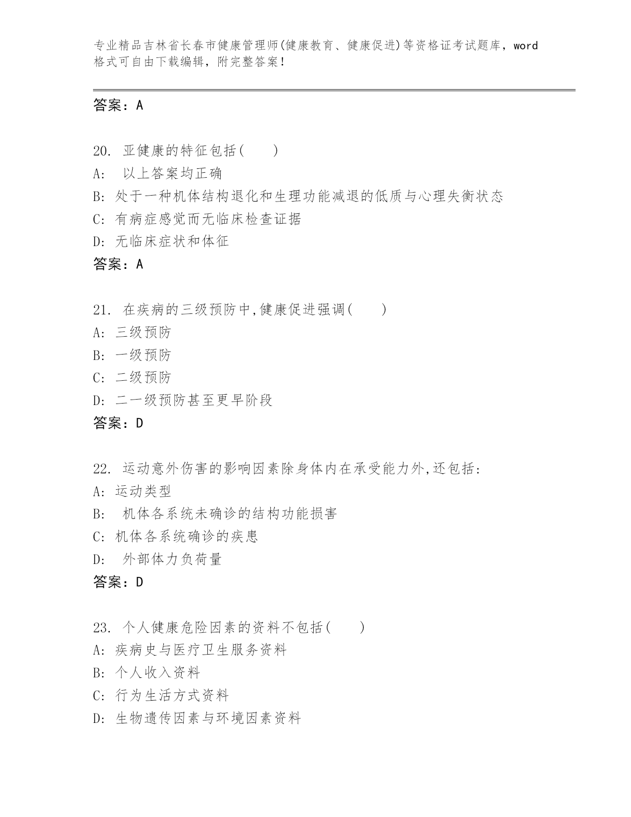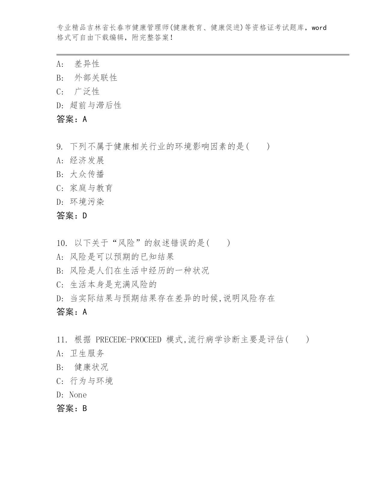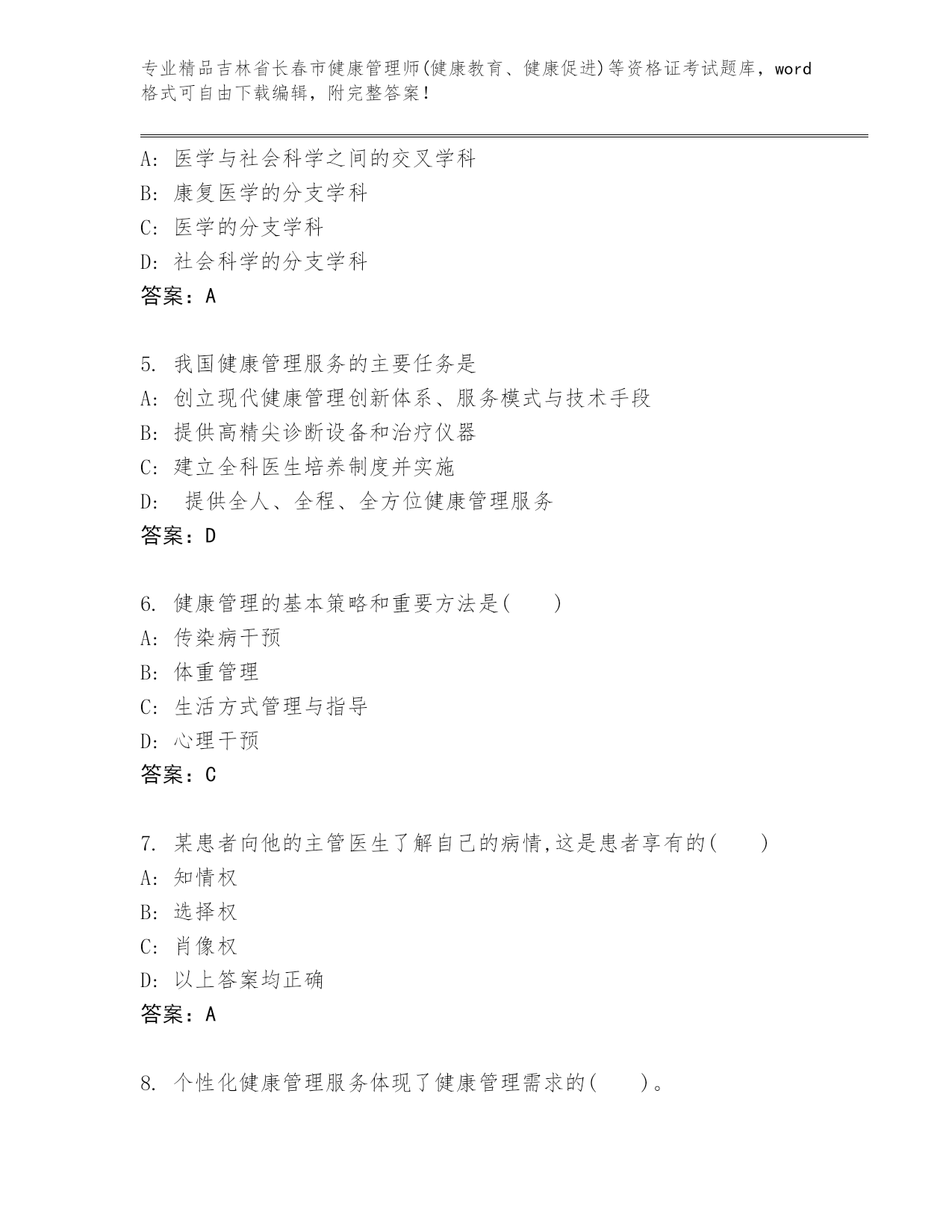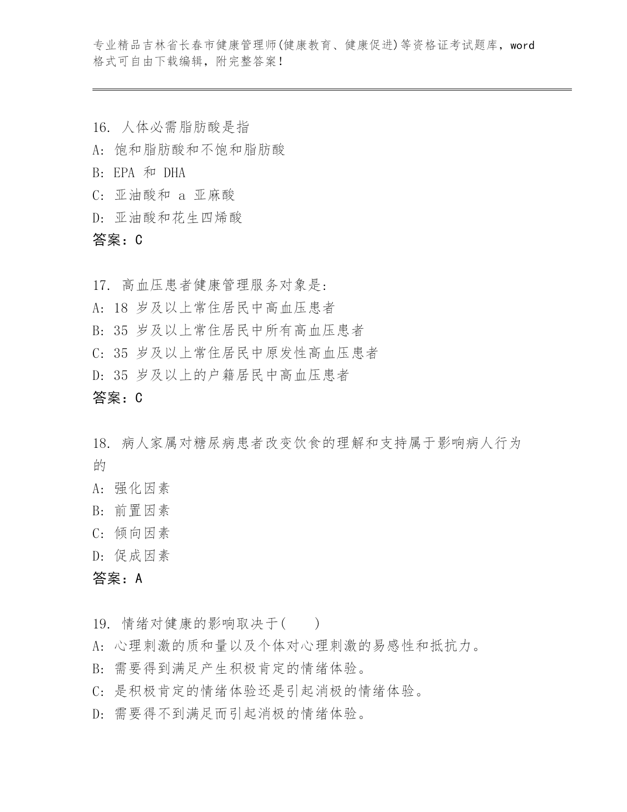 最新吉林省长春市健康管理师(健康教育、健康促进)等资格证考试完整题库【巩固】