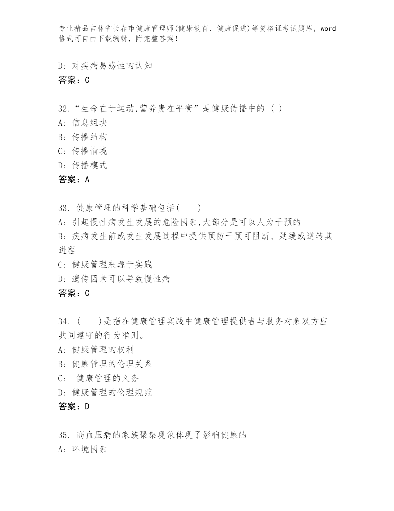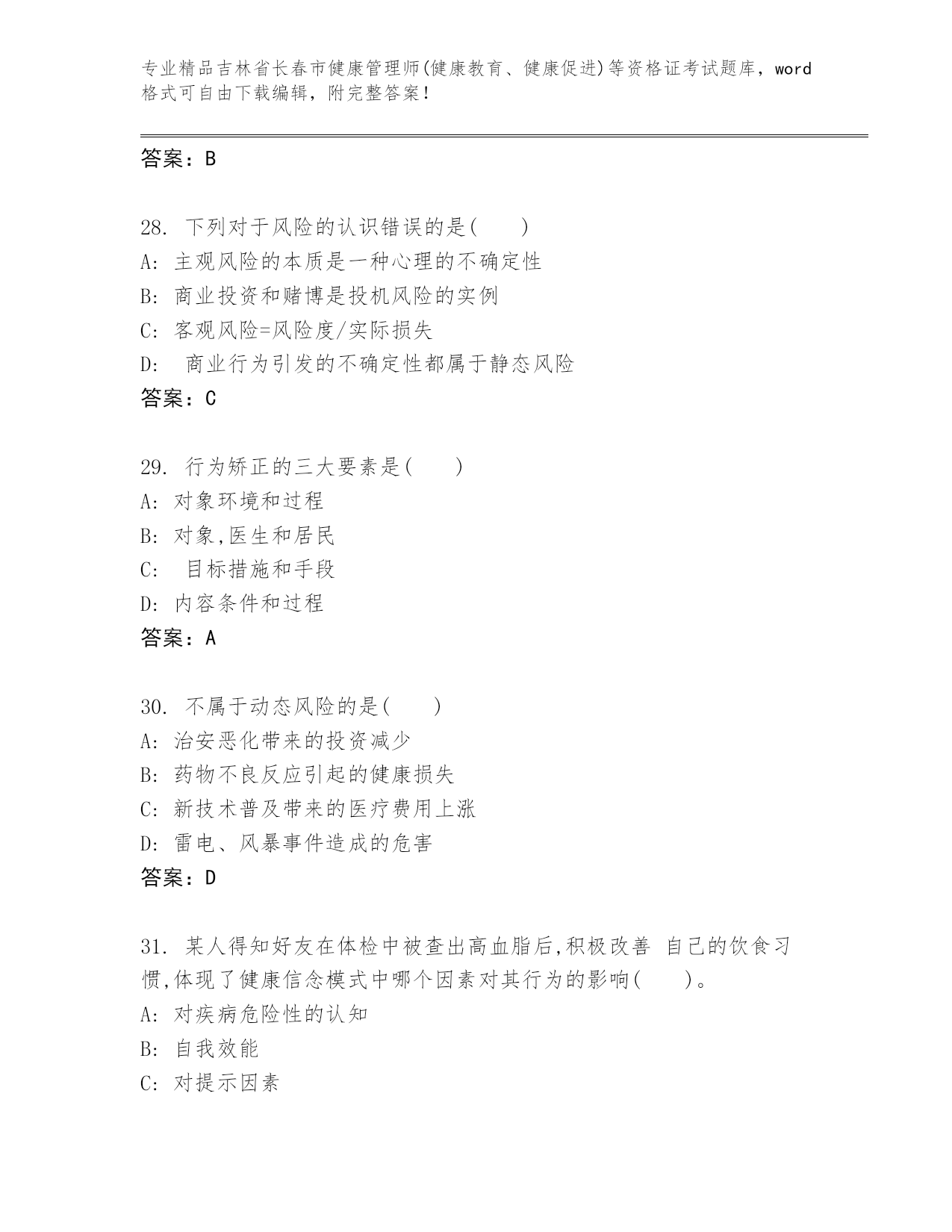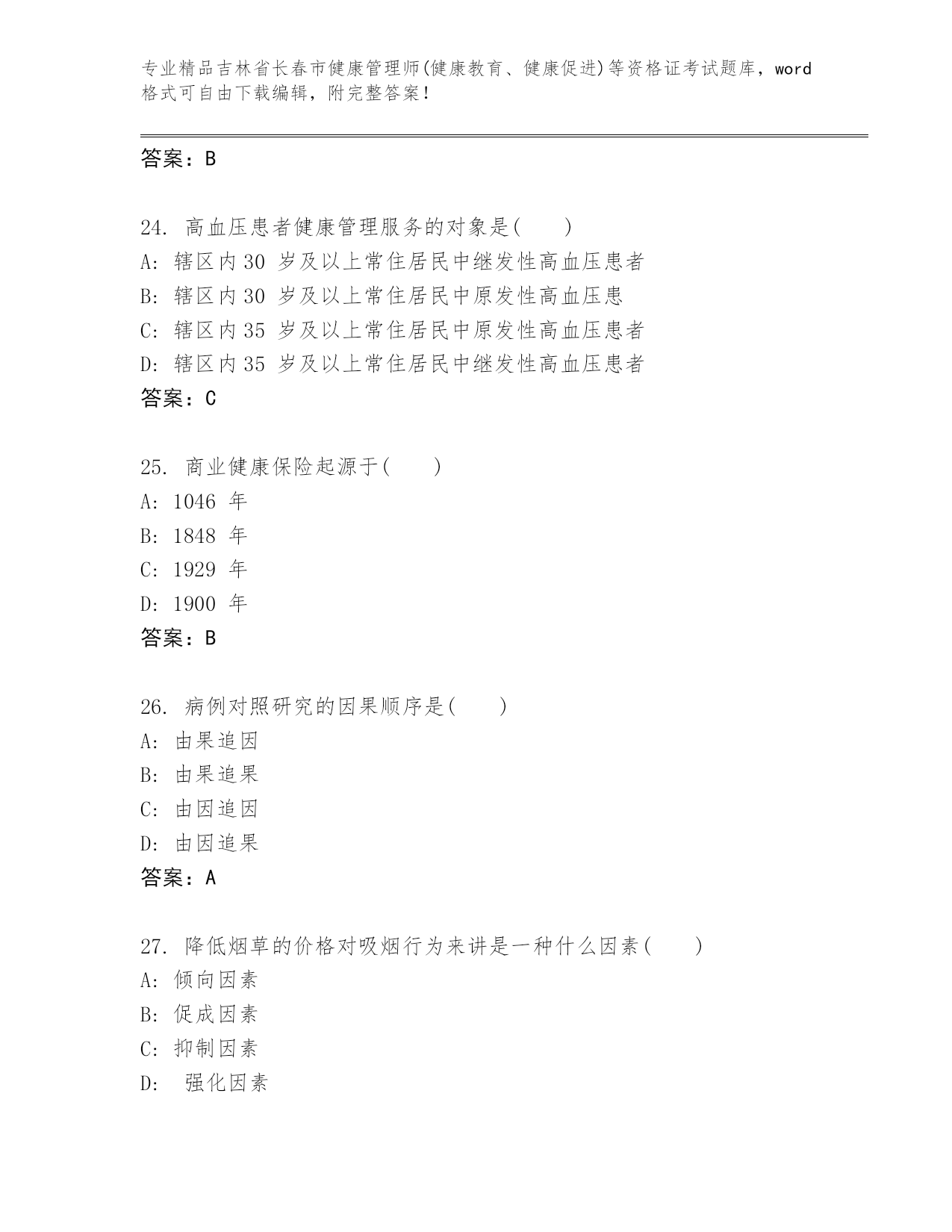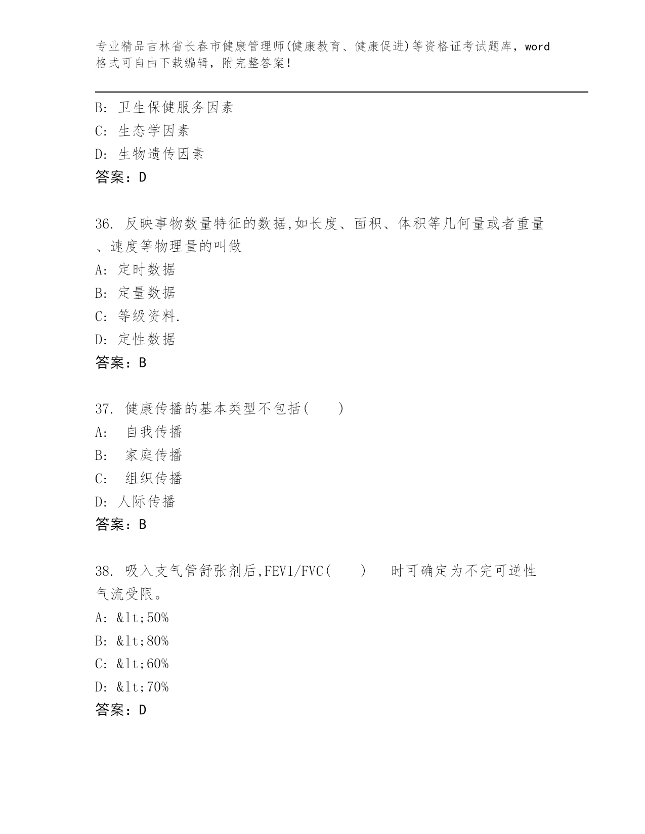 最新吉林省长春市健康管理师(健康教育、健康促进)等资格证考试完整题库【巩固】.docx