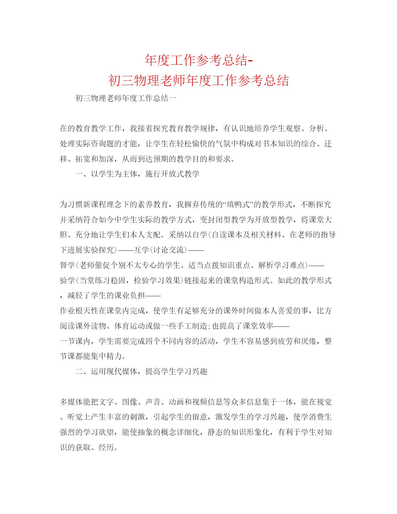 2022年度工作参考总结初三物理教师年度工作参考总结.docx