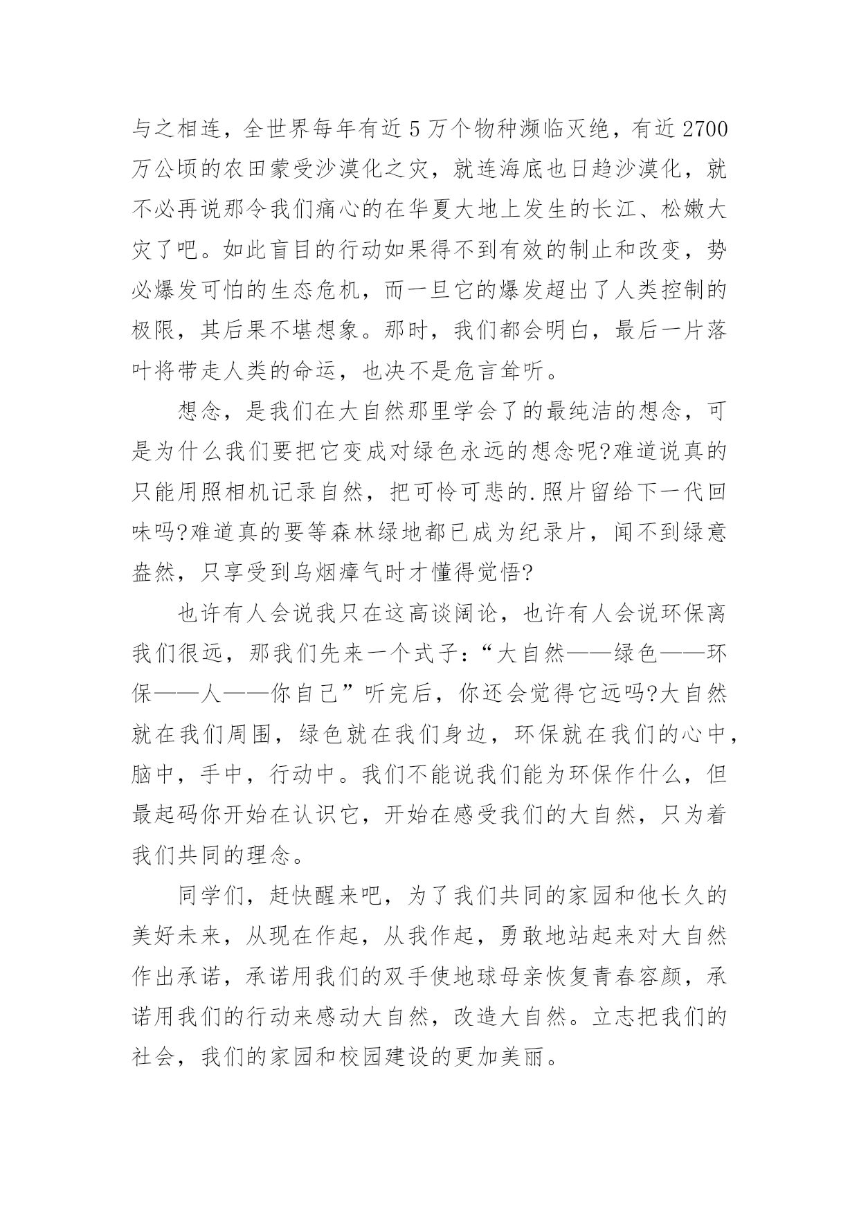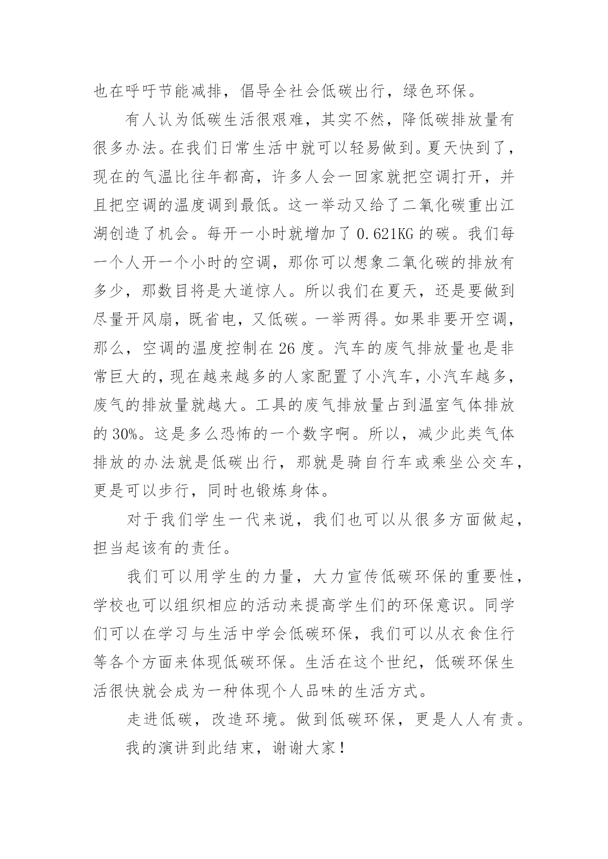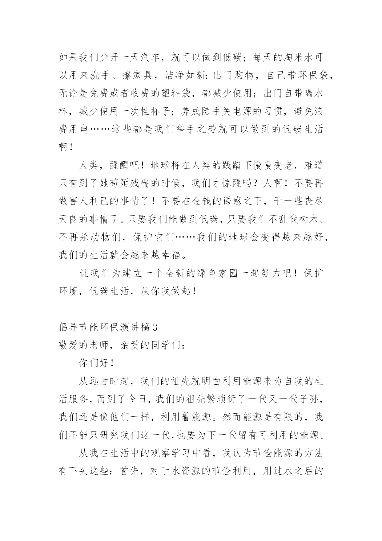 倡导节能环保演讲稿通过对演讲稿语言的推究可以提高语言的表现力,增强语言的感染力。在现在的社会生活中,演讲稿使用的情况越来越多,那么你有了解过演讲稿吗?以下是小编整理的倡导节能环保演讲稿,仅供参考,欢迎大家阅读。倡导节能环保演讲稿1尊敬的老师,亲爱的同学们:大家好!今天我演讲的题目是:低碳环保,人人有责。近几年,低碳环保这个词语越来越热门,因为低碳与环保是一种生活方式。那些低碳环保人士正在努力的呼吁每一个人做到环保的生活。解释低碳与环保这个词很简单,就是指生活作息中所耗用的能量要尽量的减少,从而减低碳排放,特别是二氧化碳的排放。人人都知道,我们吸入氧气,呼出二氧化碳。我们不可以不喘气。但我们可以从生活方面来控制它。现在,越来越多的环境问题出现,温室气体让地球发高烧,本世纪末海平面可能会升高1.9米。生物物种会减少,甚至影响到形体的变化。这些问题都与我们的`生活息息相关,它们在提醒我们要爱护地球母亲,不该让它背负太多的垃圾。地球是我们赖以生存的家园这句话每个人都耳熟能详,但对于地球来说,我们能做的真的很少。我们生活在地球上,就对它有了责任,所以环保,早就应该尽力的开始了。国家也在呼吁节能减排,倡导全社会低碳出行,绿色环保。有人认为低碳生活很艰难,其实不然,降低碳排放量有很多办法。在我们日常生活中就可以轻易做到。夏天快到了,现在的气温比往年都高,许多人会一回家就把空调打开,并且把空调的温度调到最低。这一举动又给了二氧化碳重出江湖创造了机会。每开一小时就增加了0.621KG的碳。我们每一个人开一个小时的空调,那你可以想象二氧化碳的排放有多少,那数目将是大道惊人。所以我们在夏天,还是要做到尽量开风扇,既省电,又低碳。一举两得。如果非要开空调,那么,空调的温度控制在26度。汽车的废气排放量也是非常巨大的,现在越来越多的人家配置了小汽车,小汽车越多,废气的排放量就越大。工具的废气排放量占到温室气体排放的30%。这是多么恐怖的一个数字啊。所以,减少此类气体排放的办法就是低碳出行,那就是骑自行车或乘坐公交车,更是可以步行,同时也锻炼身体。对于我们学生一代来说,我们也可以从很多方面做起,担当起该有的责任。我们可以用学生的力量,大力宣传低碳环保的重要性,学校也可以组织相应的活动来提高学生们的环保意识。同学们可以在学习与生活中学会低碳环保,我们可以从衣食住行等各个方面来体现低碳环保。生活在这个世纪,低碳环保生活很快就会成为一种体现个人品味的生活方式。走进低碳,改造环境。做到低碳环保,更是人人有责。我的演讲到此结束,谢谢大家!倡导节能环保演讲稿2尊敬的老师,亲爱的同学们:大家好!我们的祖国还是发展中国家,如果要发展得更好,就必须要做到低碳环保才可以。也只有如此,我们的国家才能更加繁荣富强。低碳听起来复杂,但是只要实践起来,却是十分简单的。只要每个人有一点儿低碳的意识,并且身体力行地去实践,就能做到低碳。现在,人们被金钱、利益所诱惑,迷失了方向。一栋栋高楼大厦拔地而起;一棵棵绿荫如盖的大树被无情地伐倒;一只只在天空自由自在飞翔的`鸟儿被残忍地射下来。人们太残忍了,如果人们不把钱看得太重的话,今天的环境就会很好,不会被严重地污染了!人们万万没有想到以前的“少年”——地球,现在也一天一天地衰老下去。当一些自然灾害突然来临时,我们难道没有想到造成这种结果的原因,恰恰是人类自己吗?现在,经济已经比较发达,我们的绿色家园——地球,却在为我们默默地牺牲着。汽车的尾气,使人整天头昏脑胀;遍地工厂的烟囱更是让人感觉乌烟瘴气;人类的生命之源——水,却被一些丧失良心的企业污染着……试想一下,我们只有低碳,才能让明天的生活更美好!如果我们少开一天汽车,就可以做到低碳;每天的淘米水可以用来洗手、擦家具,洁净如新;出门购物,自己带环保袋,无论是免费或者收费的塑料袋,都减少使用;出门自带喝水杯,减少使用一次性杯子;养成随手关电源的习惯,避免浪费用电……这些都是我们举手之劳就可以做到的低碳生活啊!人类,醒醒吧!地球将在人类的践踏下慢慢变老,难道只有到了她苟延残喘的时候,我们才惊醒吗?人啊!不要再做害人利己的事情了!不要在金钱的诱惑之下,干一些丧尽天良的事情了。只要我们能做到低碳,只要我们不乱伐树木、不再杀动物们,保护它们……我们的地球会变得越来越好,我们的生活就会越来越幸福。让我们为建立一个全新的绿色家园一起努力吧!保护环境,低碳生活,从你我做起!倡导节能环保演讲稿3敬爱的老师,亲爱的同学们:你们好!从远古时起,我们的祖先就明白利用能源来为自我的生活服务,而到了今日,我们的祖先繁琐衍了一代又一代子孙,我们还是像他们一样,利用着能源。然而能源是有限的,我们不能只研究我们这一代,也要为下一代留有可利用的能源。从我在生活中的观察学习中看,我认为节俭能源的方法有下头这些:首先,对于水资源
