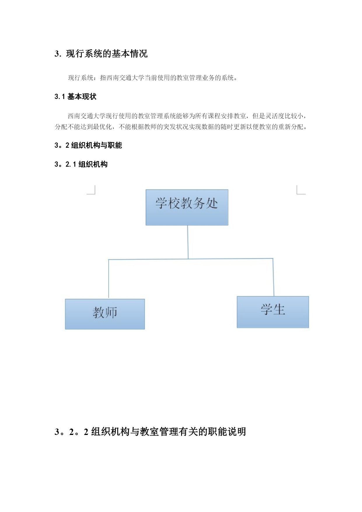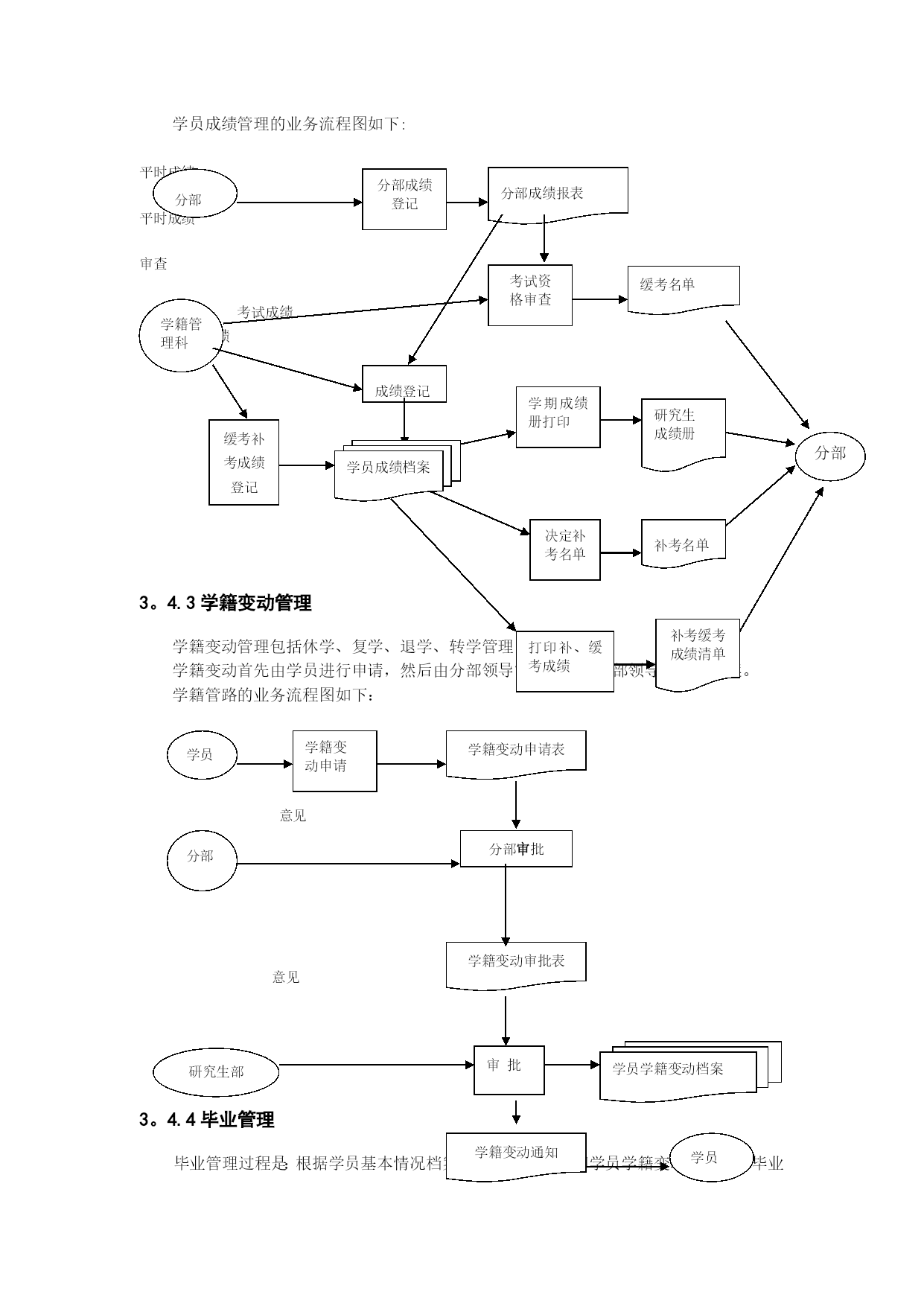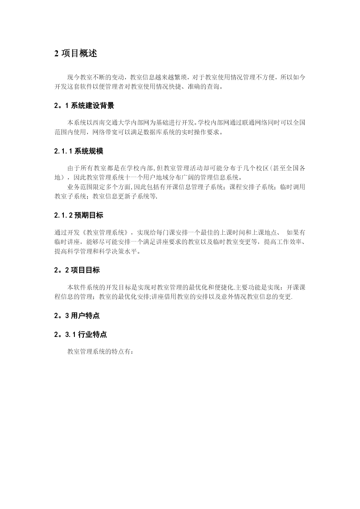 研究生学籍管理信息系统需求分析实用文档(实用文档,可以直接使用,可编辑优秀版资料,欢迎下载)2项目概述现今教室不断的变动,教室信息越来越繁琐,对于教室使用情况管理不方便,所以如今开发这套软件以便管理者对教室使用情况快捷、准确的查询。2。1系统建设背景本系统以西南交通大学内部网为基础进行开发。学校内部网通过联通网络同时可以全国范围内使用,网络带宽可以满足数据库系统的实时操作要求。2.1.1系统规模由于所有教室都是在学校内部,但教室管理活动却可能分布于几个校区(甚至全国各地),因此教室管理系统十一个用户地域分布广阔的管理信息系统。业务范围限定多个方面,因此包括有开课信息管理子系统;课程安排子系统;临时调用教室子系统;教室信息更新子系统等.2.1.2预期目标通过开发《教室管理系统》,实现给每门课安排一个最佳的上课时间和上课地点、如果有临时讲座,能够尽可能安排一个满足讲座要求的教室以及临时教室变更等,提高工作效率、提高科学管理和科学决策水平。2。2项目目标本软件系统的开发目标是实现对教室管理的最优化和便捷化.主要功能是实现:开课课程信息的管理;教室的最优化安排;讲座借用教室的安排以及意外情况教室信息的变更.2。3用户特点2。3.1行业特点教室管理系统的特点有:当前网络的流行为教室管理网络化的发展提供了广阔的空间.教室管理网络化,从一定程度上讲,该系统就是教室管理部门的网上办公室即意味着其具有信息时代的快捷方便等特征;“学校教室管理系统”构建了一个教室使用者和教室管理者交流的网上平台;教室使用者可以方便地查询和使用;教室管理者可以通过计算机实现最有效率的管理。2。3。2人员特点本软件的最终用户是教务处工作人员、教师还有学生.他们已具有熟练使用计算机的基本技能.2.3。3业务数据量每年的研究生班招生人数在1000人以上,随着形式的发展,其招生数量将有所增加,其数目估计在1000到1500之间。以三年为周期,研究生班在校人数在3000到5000人之间。2.3.4使用频度系统的主要操作是数据录入、统计分析和更新。这些操作主要集中在每学期开学初,学校要安排所有课程的教室;每学期的期中期末考试,学校需要合理安排考场;平时一些证书考试的考场安排,比如:大学英语四六级,计算机二级等等;一些答辩或者学生活动借用教室;在上面四个时期,使用该系统较多。平时使用较少.2。4计算机应用现状计算机应用情况:本管理系统无论是操作还是查询都是需要使用计算机。使用的计算机已与学校内部网联网。人员情况:所有工作人员均有计算机操作经验,能比较熟练使用办公自动化软件和上网操作.2.5条件及限制开发工具及环境规定:开发工具:Microsoftvisualbasic6.0软件结构:B/S结构操作界面:浏览器界面数据库:SQLSERVER2000操作系统:Windows7服务器系统Win2000Server3.现行系统的基本情况现行系统:指西南交通大学当前使用的教室管理业务的系统。3.1基本现状西南交通大学现行使用的教室管理系统能够为所有课程安排教室,但是灵活度比较小,分配不能达到最优化,不能根据教师的突发状况实现数据的随时更新以便教室的重新分配。3。2组织机构与职能3。2.1组织机构3。2。2组织机构与教室管理有关的职能说明.1学校教务处工作职能:负责主要教室管理工作。主要业务工作包括:1。课程的任课老师、上课时间、选课人数和是否要求多媒体教学等;2.全校的教室资源信息,包括教室的编号,最大容量,是否支持多媒体教学等;3。根据课程信息和教室资源信息,给每门课安排一个最佳的上课时间和上课地点;4。如果有临时讲座,能够尽可能安排一个满足讲座要求的教室,如时间、容纳人数、多媒体等。3。2。2。2教师和学生工作职能:教师:1.如果遇见意外情况,如老师临时停课,则要实时更新教室的使用情况信息;2。老师有临时变更上课时间的要求,则能够查询教室的使用情况信息,并尽力为其变更时间并重新安排教室.学生:选课,对课程的教室查询或者提出一些好的教室分配建议。3。3业务管理模式集中管理:主要是由学校教务处进行统计输入课程的任课老师、上课时间、选课人数和是否要求多媒体教学;全校的教室资源信息,包括教室的编号,最大容量,是否支持多媒体教学;以及根据课程信息和教室资源信息,给每门课安排一个最佳的上课时间和上课地点.分散组织:教师党需要停课,或者换教室的时候需要输入到系统中进行申请。学生负责选择课程,再由教务处分配教室。3.4现行教室管理系统流程3.4。1课程信息管理E—R图3。4.2学员成绩管理学员课程成绩由平时