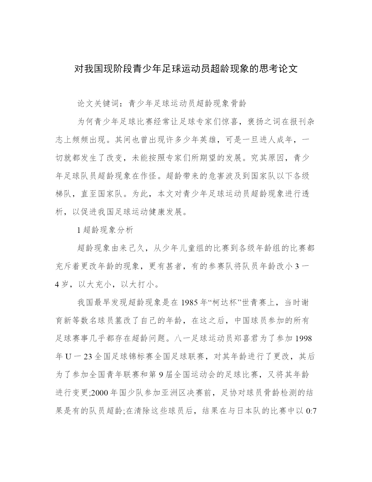 对我国现阶段青少年足球运动员超龄现象的思考论文.docx