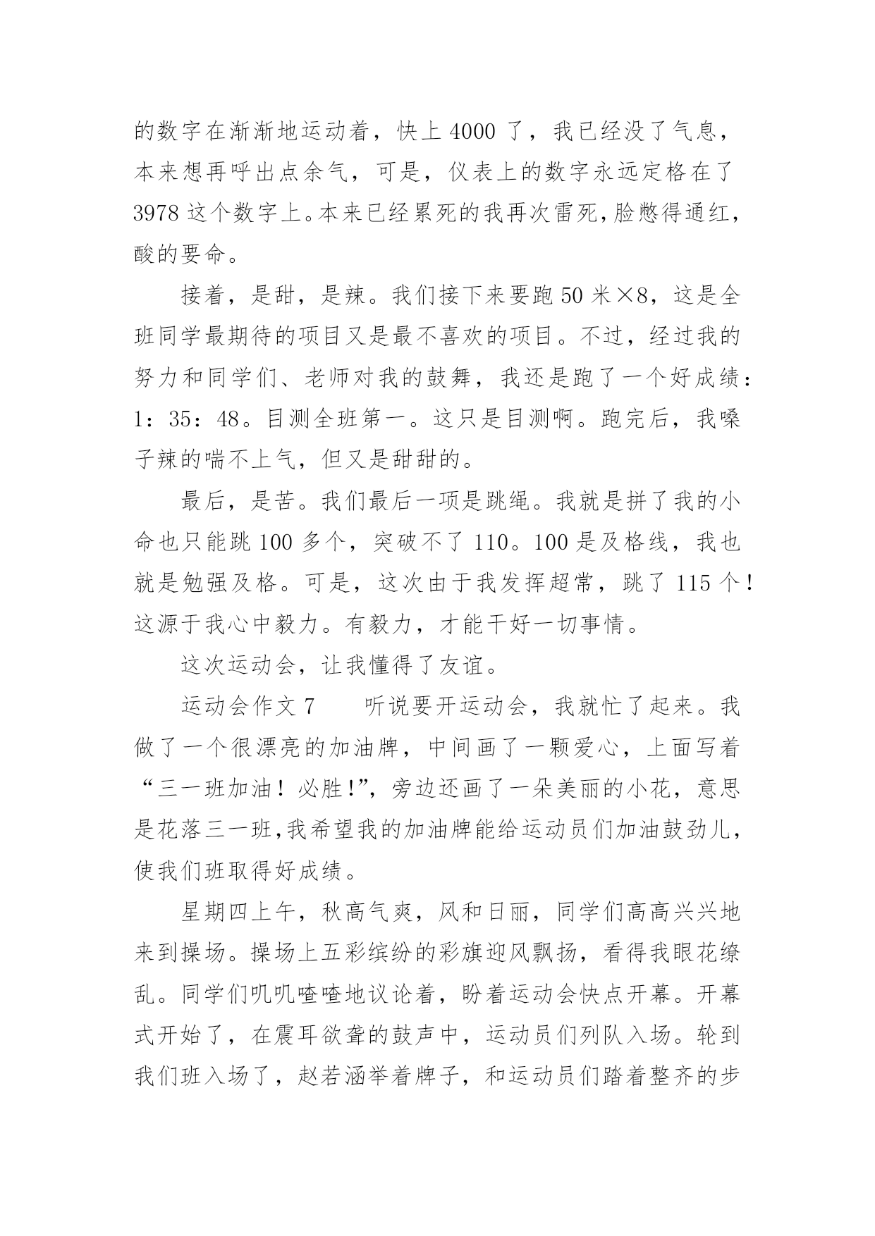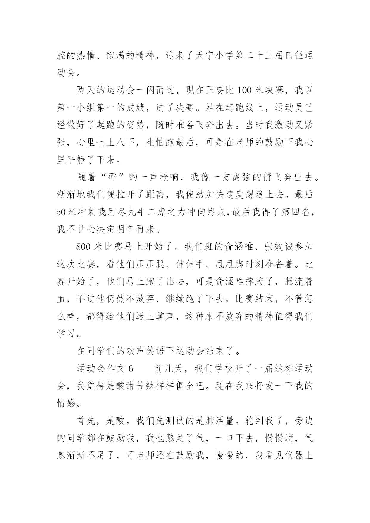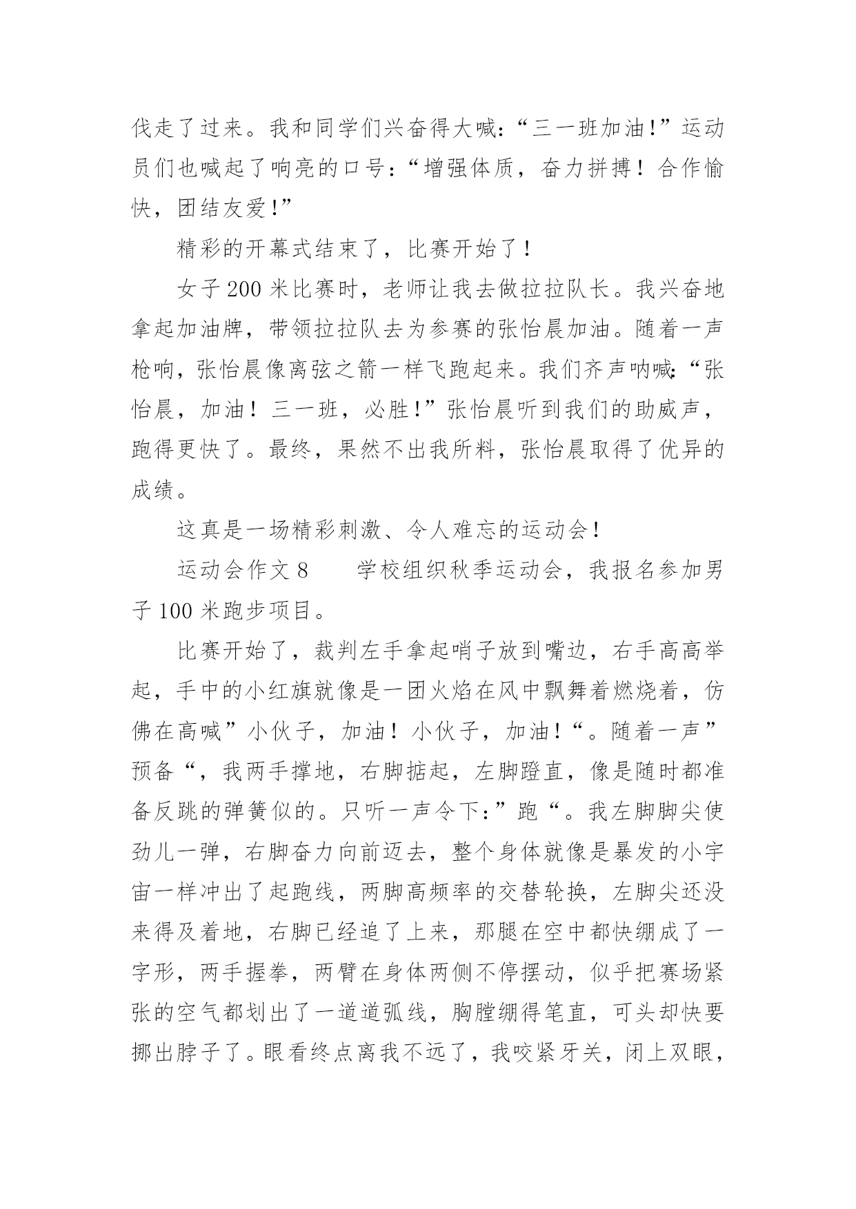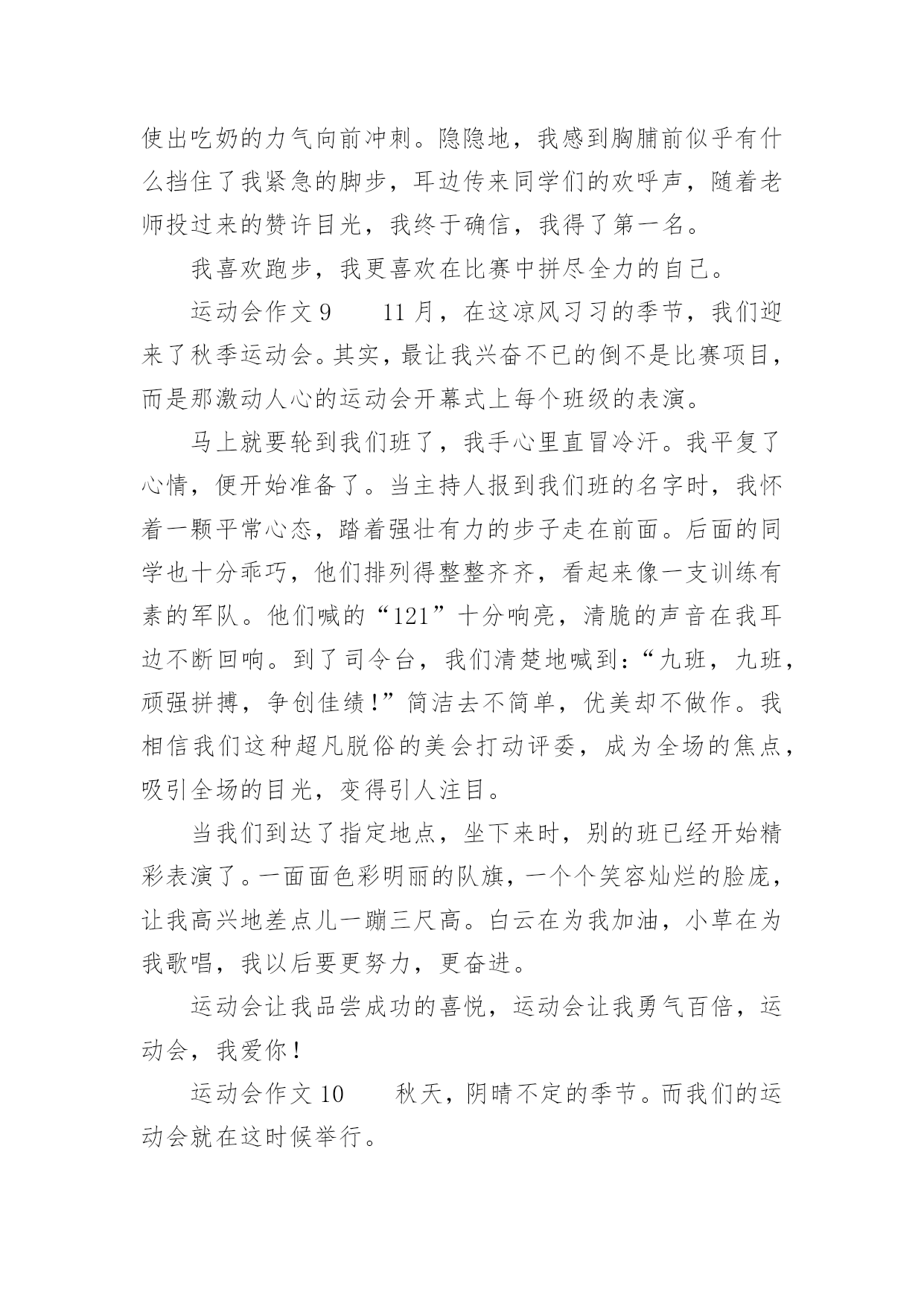 运动会作文400字运动会作文400字作文的分类写作时限来分从作文的写作时限来分,作文可以分为限时作文和非限时作文。限时作文又可以分为课堂作文和考试作文两类。写作字数来分从作文的写作字数来分,作文可以分为限字作文和非限字作文。教育部的新课程标准在学生作文的字数上有了一定的要求,要想让学生在有限的文字中写出非同寻常的好作文,必须要在“想”上下功夫。写作命题来分从作文的写作命题来分,作文可以分为命题作文和非命题作文。命题作文,一般是指出题者给出一个既定的题目,要求应试者根据这个给定题目进行写作。运动会作文400字(精选100篇)在日常的学习、工作、生活中,大家都经常接触到作文吧,作文一定要做到主题集中,围绕同一主题作深入阐述,切忌东拉西扯,主题涣散甚至无主题。你写作文时总是无从下笔?以下是小编帮大家整理的运动会作文400字(精选100篇),仅供参考,大家一起来看看吧。运动会作文1每年一季的秋季运动会开始了,同学们的脸上都带着欢快的笑容。一大早,我们踏着欢快的步伐来到学校,为运动会做着各种准备。运动会终于开始了,首先出场的是方队,看着方队迈着整齐的步伐,绕着操场走了一圈,我既高兴又紧张。比赛终于开始了,项目有跑步、跳高、跳绳、扔沙包。首先是一百米赛跑,枪声一响,小运动员们像箭似得飞奔出去。我们班男生有张承博、户文博,女生有侯新宁、刘嘉琦。我们为他们加油、喝彩,他们听到了我们的呐喊声跑的就更有劲了。在我们的呐喊中张承博是第一名。还有跳绳、跳高。大家都在给自己班里同学加油、打气。终于轮到我跑接力了,站在赛道上心想:“我可以当身后有一只狼在追我,那么我就跑的快了”。可是随着一声枪响,我一紧张结果全忘了。一开始我跑在最前面,可是不一会,二年级的一个小女孩超过我了,虽然她个子很矮,但她跑的可快了,我怎么也追不上她,结果跑了第二名。经过我们全班同学的努力我们班得了团体第三名的好成绩,我们可高兴了!运动会作文2一年一度秋风劲,一年一度送爽来。12月10日的天空旭日映照,我们中学运动场上人声鼎沸,大喇叭里播出的《运动员进行曲》响彻校园内外。我们中学田径运动会在校运动场隆重开幕。上午7:30,各班级代表队在进行曲中举行了入场式,随后举行奏国歌、升国旗仪式。运动会由校长宣布开幕,并致开幕词,最后运动员代表小明、裁判员代表小红,分别宣誓,各项比赛按预定程序全面展开。根据运动会组委会安排,运动会进行了一天半,比赛项目有:50m、100m、1000m、铅球、实心球、跳远、立定跳远、跳绳、4×100m接力赛、乒乓球。运动会于11月25日上午在4×100米接力赛后闭幕。下午随即开展教职工篮球赛和女职工绑腿接力赛。本次运动会是在课程改革的大潮下进行的,不仅培养了学生重在参与的奥林匹克精神,弘扬了团结友爱、吃苦耐劳的精神,还增强了同学们集体主义观念,为积极推进素质教育的开展,为我校体育运动的发展奠定坚实的基础。运动会作文3星期四的早上我带着激动的心情,迈着轻松的步子走进了学校的大门,因为今天是一年一度的秋季运动会。上午,运动会开幕式开始了。各个方队在班主任带领下迈着整齐的步子,走向各自预定的方位。开幕式的表演是由各班级的啦啦队组成,有跳街舞的、有跳健美操的……下午,运动会正式开始了。比赛的项目有男、女50米、200米、400米、600米跑步;50米接力赛;投篮、投准等等。同学们一个精神抖擞,箭步如飞,赢得了阵阵掌声和助威声。好不容易轮到我们班的选手比赛了。只见张璐豪站在起跑线上,左腿向前微弓,右腿向后直蹬着地,目视前方,身体向前微倾。只听“呯”的一声响,张璐豪的身体就像离弦的箭一样冲了出去,把其他选手远远丢在了后面。同学们兴奋极了,高呼着“三三三三,金豆乐园,团结一致,勇往直前。”不一会儿,张同学就跑到了终点,为我们班赢得了第一。秋季运动会在紧张、热烈、有趣的气氛中结束了,我班争得了优异的成绩。运动会作文4进入57中,我迎来了初中史上的第一场盛大的体育运动会!29日的一大早,整个57中的初、高中部的师生都在石景山体育场集合,大家都兴高采烈的笑着,闹着,跑着;急切的盼望着入场式的到来。当音乐响起时,同学们跨着整齐划一的步伐接受检阅,手中的花儿或黄或红,就像我们一颗颗跳动的心,让我们躁动起来,一场兔子舞过后,体育比赛终于开始了。我报的项目是4乘100米,这个比赛考验的是团队协作能力。跑道上,我一直往前猛冲,心想:“跑快点!跑快点!给同学多争取一些时间,胜利就是我们的了!”我就像吃了激素似的,箭一般似的冲刺超越好几位同学,当我把接力棒交给下一位同学时,我感忽然觉自己出汗如雨浆,心跳如雷,大口喘气不已。“这次看我们班不得第一名”,暗自得意不已。可是,事情总有出乎意料之时,我们班的同学在最后一棒时,没把握好机会,只轮得了第六名。但我们也没有气馁,比赛名次虽重要,但相比我们比