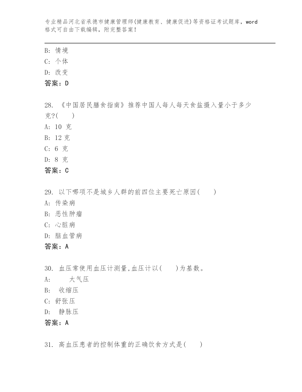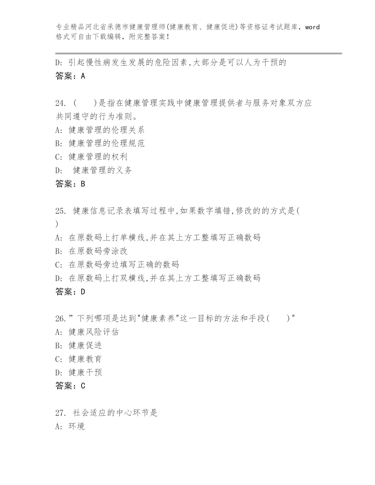 河北省承德市健康管理师(健康教育、健康促进)等资格证考试真题题库(各地真题).docx