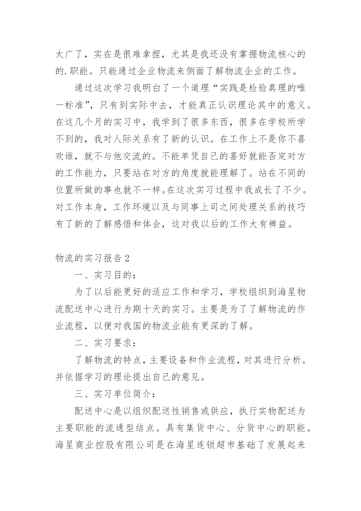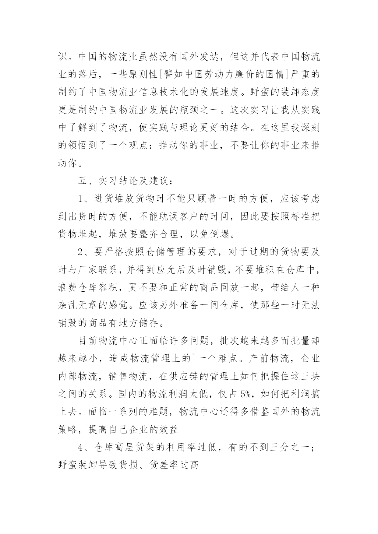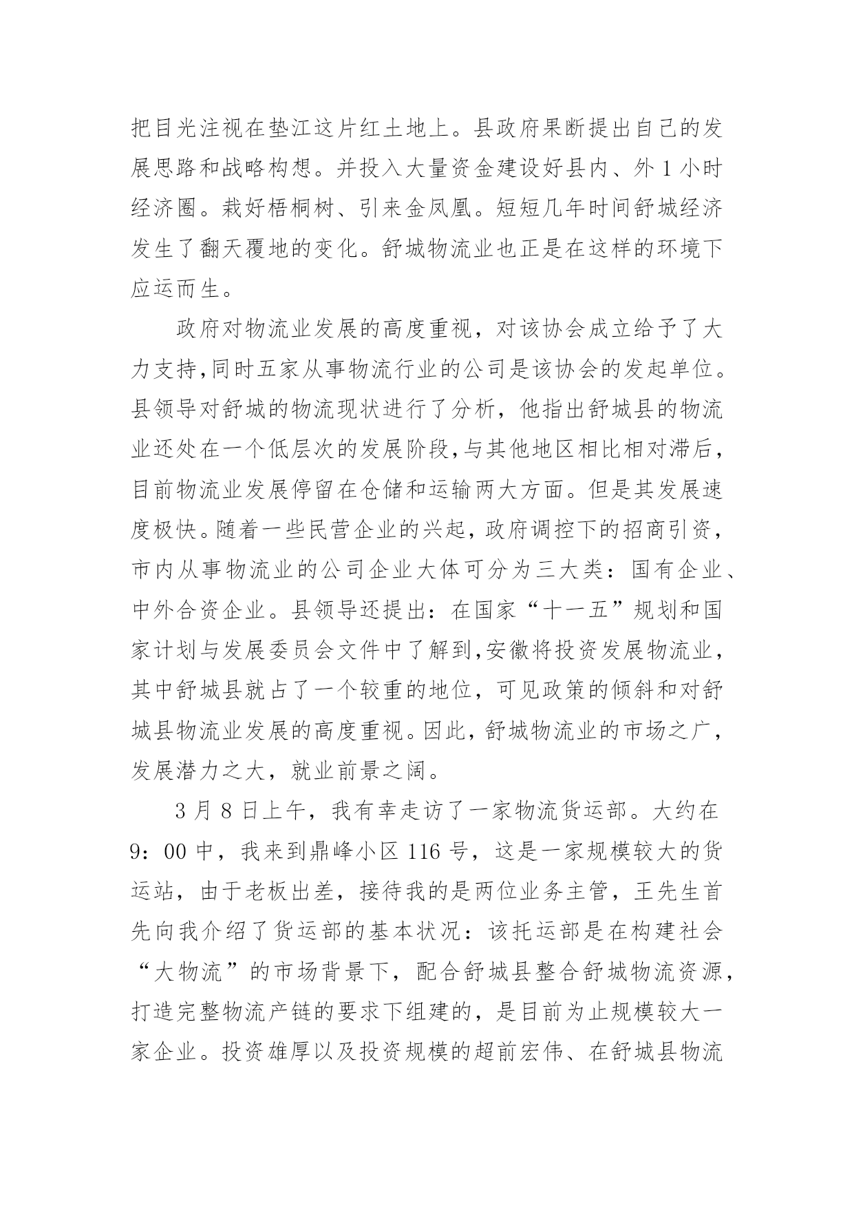 物流的实习报告[荐]物流的实习报告15篇在人们越来越注重自身素养的今天,报告与我们的生活紧密相连,不同种类的报告具有不同的用途。其实写报告并没有想象中那么难,下面是小编为大家收集的物流的实习报告,希望能够帮助到大家。物流的实习报告1实习目的:以xx经济建设发展中的各个类型物流企业和企业物流管理的相关内容作为对象,进行实地学习与实践。运用所学习的专业知识来了解物流的工作流程和工作内容,加深对物理工作的认识,将理论联系于实践,培养实际工作能力和分析解决问题的能力,达到学以致用的目的,为成功走向社会做准备。实习地点:xx市经开区xx电子实习内容:熟悉电子厂的流通加工,掌握了洗衣机主板的生产、包装、已经入库过程,并在此过程中联系生产实际检验和强化所学专业知识,了解当前我市物流管理现状,为毕业以后的工作做好充分准备。—、通过这次实训学习到了很多工作侧面的知识,将课本上的知识很好的与实践结合,也认识到了自身的不足之处以及今后的发展方向。时间一晃而过,转眼间我已经实习了几个月了,在这里面也认识了一些其他学校的实习生,这是我人生中弥足珍贵的经历,也给我留下了精彩而美好的回忆。二、我们刚去xx的时候,是我们学校的负责人接我们的,帮我们安排宿舍,打点行李。麻烦了他不少,在此向他表示感谢。祝他在工作上步步高升。我们加入到xx,前三天是培训,因为我们进入的是电子公司,我们不是计算机系的,对PCB板、色环的阻值计算、线路板上的零件名称等等都是一窍不通。所以通过以培训的方式让我们先了解这个企业涉及的一些东西。在这几天我们知道了这个企业大致规章制度,生产规模,还有车间里的生产环境。我们培训结束的当天,去宿管那领了静电服。之后去了车间。看到那里面的人工作时候的状态,工作的时候禁止空手拿板,不是带静电手环,就是要带静电手套。之后开始了我们的工作生涯,我被分在二楼的洗衣机线,二楼有电视机线、洗衣机线、模组,不过每条线都是有合作的,哪条线急着出货需要帮忙的,其他线要去支援。因为我是学物流的,本来打算去仓库的。但是还是留在了制造课,我想,把洗衣机板子制造出来比把它发出去更有值得人学习的东西。之前学习课本的时候就觉得物流的范围太广了,实在是很难拿捏,尤其是我还没有掌握物流核心的的.职能。只能通过企业物流来侧面了解物流企业的工作。通过这次学习我明白了一个道理“实践是检验真理的唯一标准”,只有到实际中去,才能真正认识理论其中的意义。在这几个月的实习中,我学到了很多东西,很多在学校所学不到的,我对人际关系有了新的认识。在工作上不是你不喜欢谁,就不与他交流的。不能单凭自己的喜好就能否定对方的工作能力,只要站在对方的角度就能理解了。站在不同的位置所做的事也就不一样。在这次实习过程中我成长了不少。对工作本身,工作环境以及与同事上司之间处理关系的技巧有了新的了解感悟和体会,这对我以后的工作大有裨益。物流的实习报告2一、实习目的:为了以后能更好的适应工作和学习,学校组织到海星物流配送中心进行为期十天的实习。主要是为了了解物流的作业流程,以便对我国的物流业能有更深的了解。二、实习要求:了解物流的特点,主要设备和作业流程,对其进行分析。并依据学习的理论提出自己的意见。三、实习单位简介:配送中心是以组织配送性销售或供应,执行实物配送为主要职能的流通型结点。具有集货中心、分货中心的职能。海星商业控股有限公司是在海星连锁超市基础了发展起来的大型企业,拥有大型百货购物中心,社区连锁超市,中心城市便利岛为支柱的三大商业,并以现代物流配送中心为支持平台。海星物流配送中心是一个中等规模的物流配送基地,是综合性的物流配送中心。兼有转运和集散功能,也可以扩展至配送和流通加工的功能,因此在规划与设计方面可操作性更高。陕西海星物流配送中心主要分为:收货、分货、验货、退货四大部门,各个部门之间相互协调和相互配合,密不可分。海星商业控股有限公司正逐步实现“以中心城市的中型百货购物中心和专业化超市为核心,以中小城市的大型综合超市和海便利岛为两翼,以现代化的大型物流配送中心为基础平台”的发展格局。诣在以多业态连锁发展、规模经营和便利服务为企业核心价值的西北地区最大的零售商业平台。四、实习感想:随着世界经济一体化步伐的加快,国际经济贸易发展日益活跃,我国的物流行业得到迅速发展。虽然这次实习时间很短,却给我上了人生历程中不可或缺的一课。对于物流,我只是知道它是集:运输、储存、搬运、包装、流通加工、配送、信息处理等基本功能实施的有机结合。但没有想到它的实际操作却没有这么的简单。通过十一点作为国人的物流人士有着切肤的体会。货物运转速度慢,货差货损率高难以避免,高层货架利用率严天的简单了解,使我对于物流配送有了更加深刻的认识。中国的物流业虽然没有国外发达,但这并代表中国物流业的落后,一些原则性[譬如中国劳动力廉价的国情]严