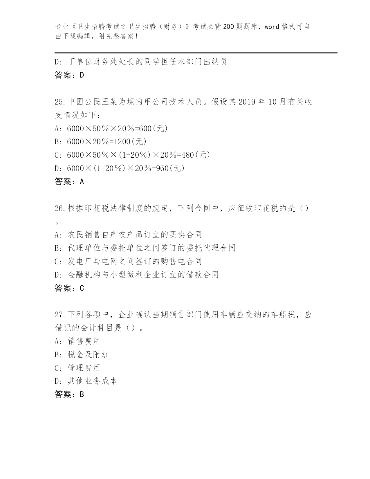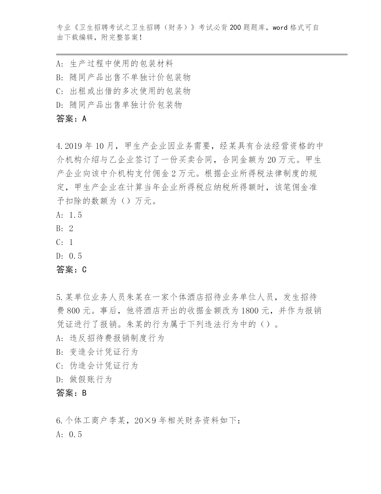 湖南省宁乡县2024年《卫生招聘考试之卫生招聘(财务)》考试必背200题大全【考点精练】