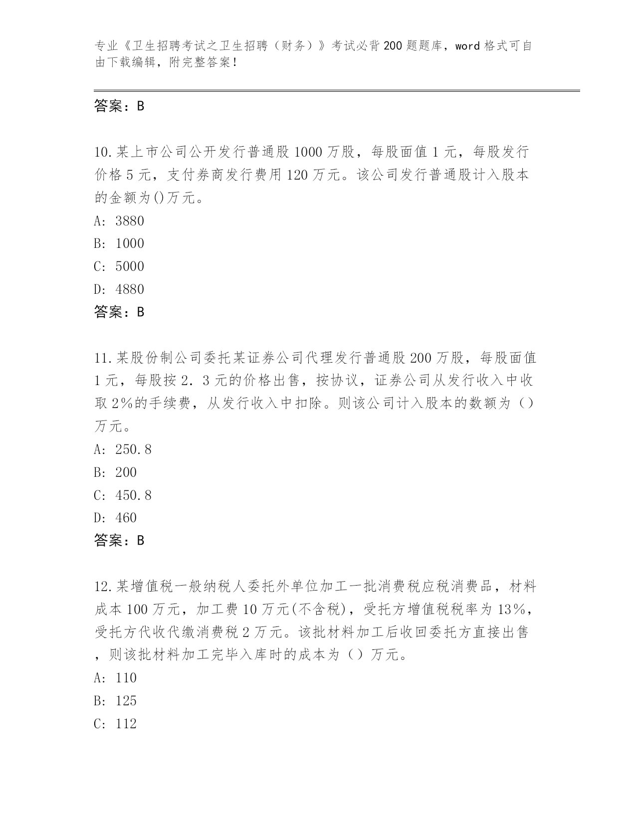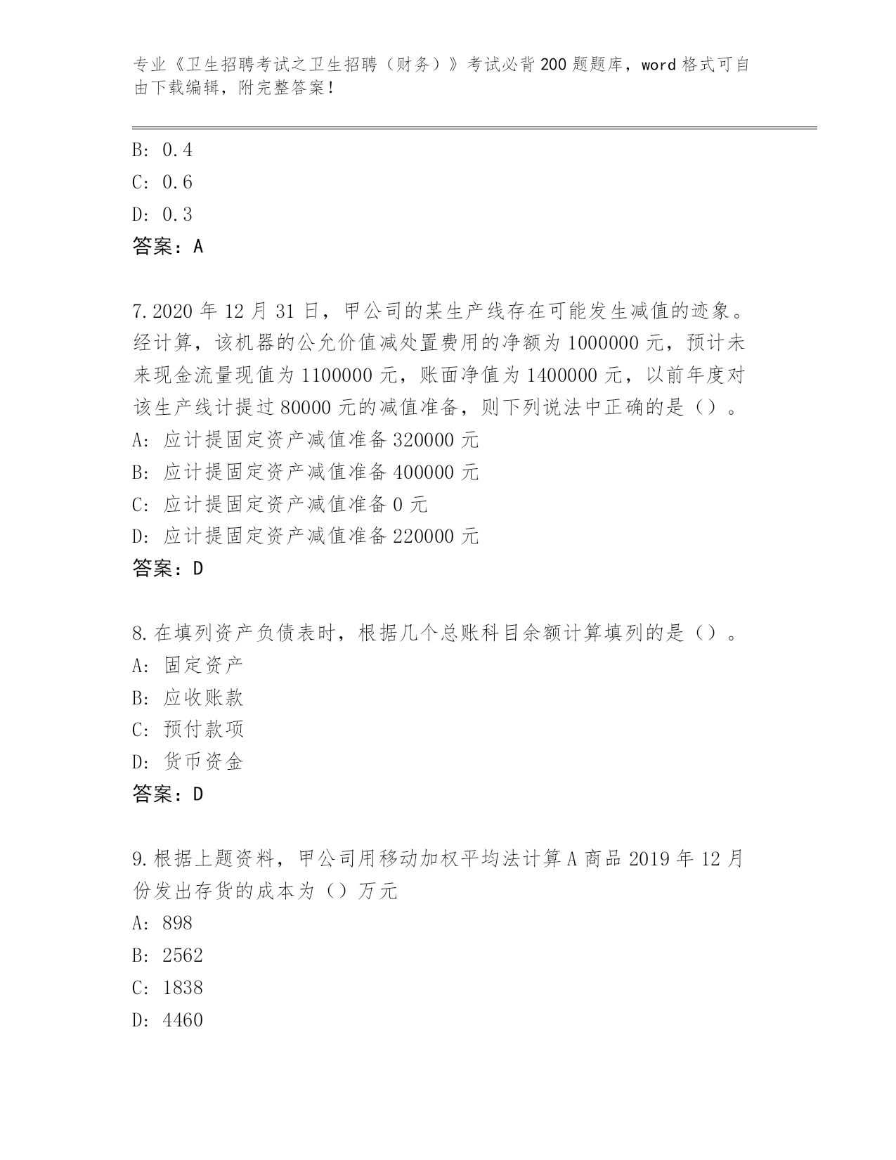 湖南省历年《卫生招聘考试之卫生招聘(财务)》考试必背200题题库大全【满分必刷】