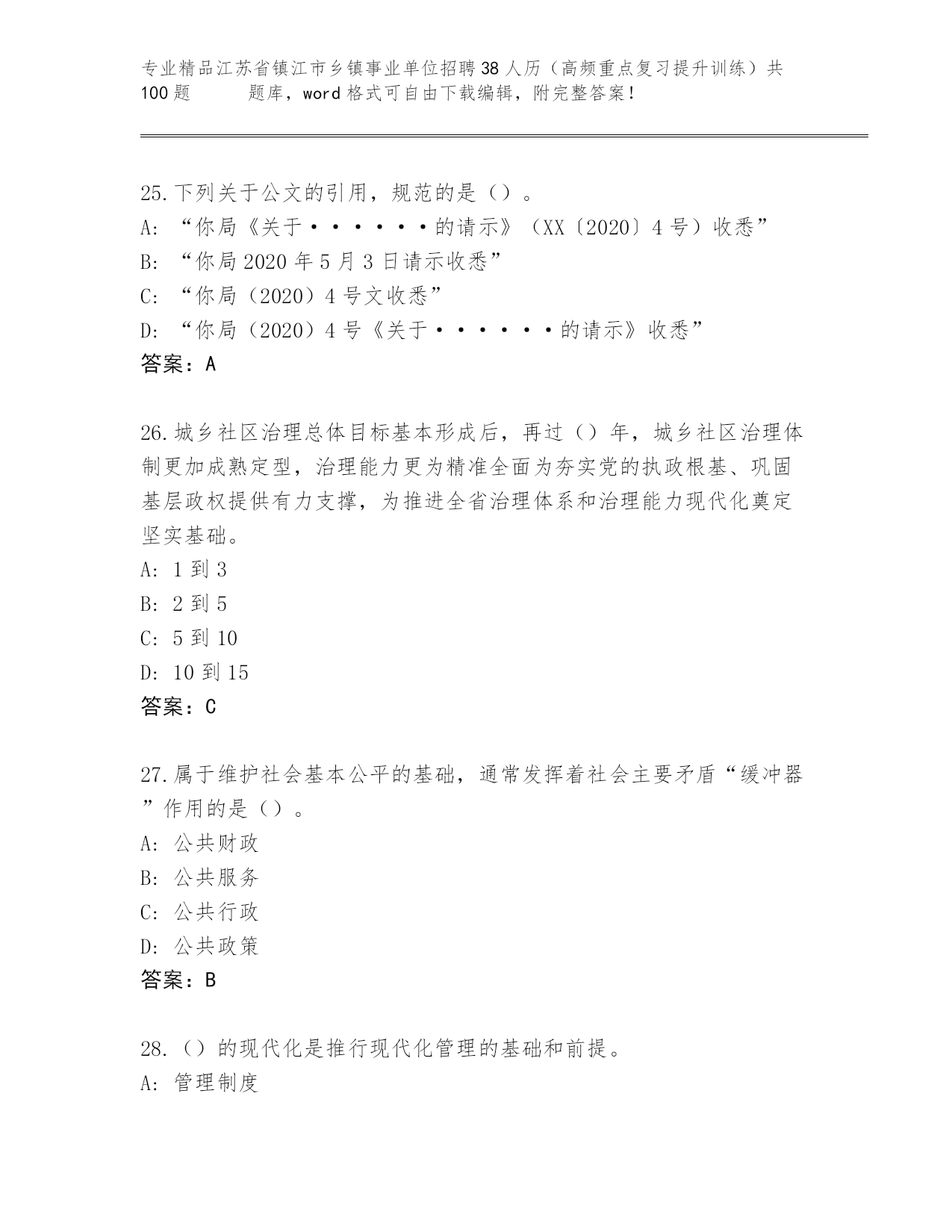 完整版江苏省镇江市乡镇事业单位招聘38人历(高频重点复习提升训练)共100题 【研优卷】