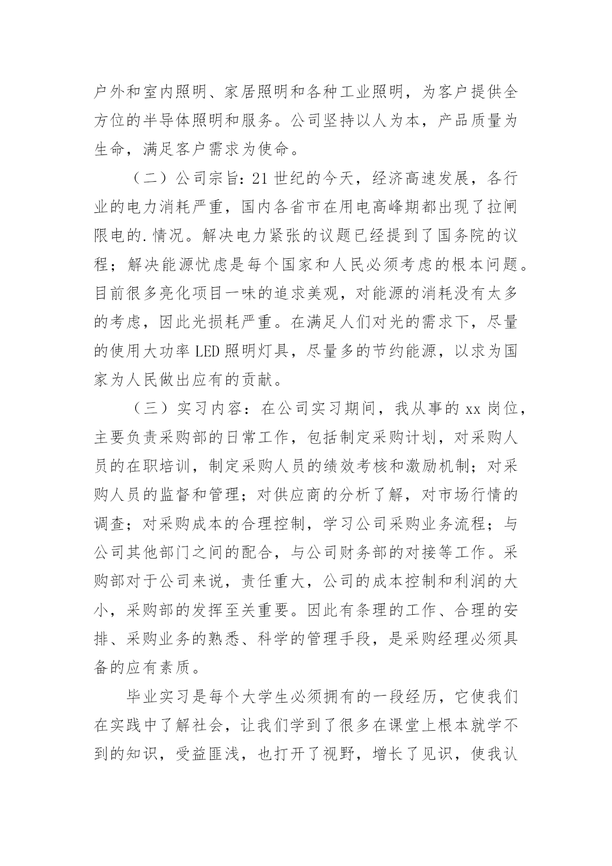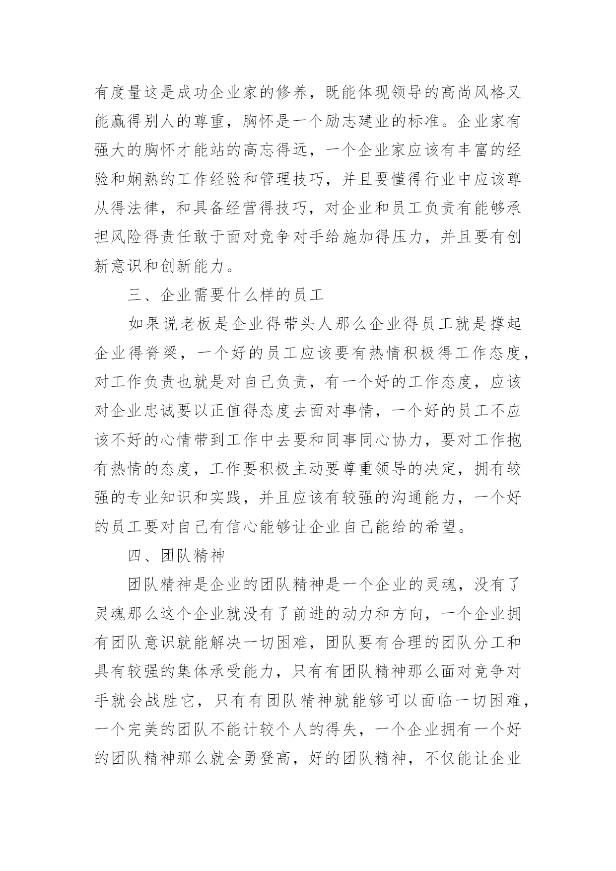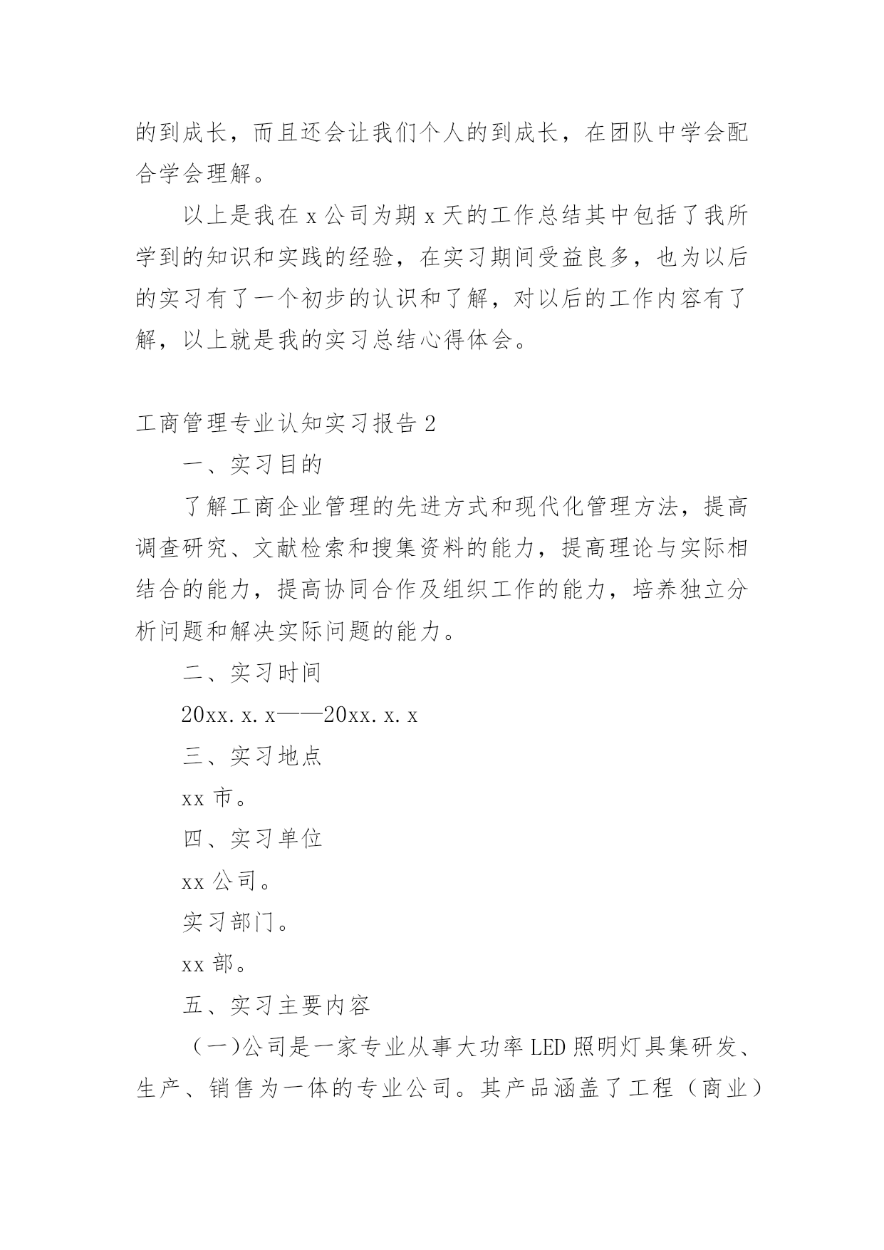 工商管理专业认知实习报告我们眼下的社会,接触并使用报告的人越来越多,报告包含标题、正文、结尾等。那么,报告到底怎么写才合适呢?以下是小编收集整理的工商管理专业认知实习报告,供大家参考借鉴,希望可以帮助到有需要的朋友。工商管理专业认知实习报告1我于xx年xx月xx日到x月x日在公司进行为期x天的企业实习,在为期x天的企业实习中将课堂上所学到的知识运用到实践中让我深有感触,感觉自己所学的知识匮乏和实践操作缺乏经验,开始感觉工作无从下手不知所措。一、企业文化每一个企业都应该有一个必备的流程和好的企业文化,首先客户向经销商发提货单然后由业务代表接单接下来将到交给出纳员,然后由库管提货送到客户家,公司的工作宗旨是"没有完美的个人只有完美的集体"二、成功企业家必备的素质一个企业要拥有一个好的.带头人,这个公司才能向远看向前发展,成功企业家应该心胸宽广,海纳百川,有容乃大。现在企业家如果心胸狭隘不能容人,不仅难成大事而且难以与人亲密相处,企业家拥有宽大的胸怀不仅能够收揽人心,也能体现自己身边聚集了许多优秀的人才。还能使人心悦诚服,企业家必须有一个度量,宰相肚里能撑船,凡事要有度量这是成功企业家的修养,既能体现领导的高尚风格又能赢得别人的尊重,胸怀是一个励志建业的标准。企业家有强大的胸怀才能站的高忘得远,一个企业家应该有丰富的经验和娴熟的工作经验和管理技巧,并且要懂得行业中应该尊从得法律,和具备经营得技巧,对企业和员工负责有能够承担风险得责任敢于面对竞争对手给施加得压力,并且要有创新意识和创新能力。三、企业需要什么样的员工如果说老板是企业得带头人那么企业得员工就是撑起企业得脊梁,一个好的员工应该要有热情积极得工作态度,对工作负责也就是对自己负责,有一个好的工作态度,应该对企业忠诚要以正值得态度去面对事情,一个好的员工不应该不好的心情带到工作中去要和同事同心协力,要对工作抱有热情的态度,工作要积极主动要尊重领导的决定,拥有较强的专业知识和实践,并且应该有较强的沟通能力,一个好的员工要对自己有信心能够让企业自己能给的希望。四、团队精神团队精神是企业的团队精神是一个企业的灵魂,没有了灵魂那么这个企业就没有了前进的动力和方向,一个企业拥有团队意识就能解决一切困难,团队要有合理的团队分工和具有较强的集体承受能力,只有有团队精神那么面对竞争对手就会战胜它,只有有团队精神就能够可以面临一切困难,一个完美的团队不能计较个人的得失,一个企业拥有一个好的团队精神那么就会勇登高,好的团队精神,不仅能让企业的到成长,而且还会让我们个人的到成长,在团队中学会配合学会理解。以上是我在x公司为期x天的工作总结其中包括了我所学到的知识和实践的经验,在实习期间受益良多,也为以后的实习有了一个初步的认识和了解,对以后的工作内容有了解,以上就是我的实习总结心得体会。工商管理专业认知实习报告2一、实习目的了解工商企业管理的先进方式和现代化管理方法,提高调查研究、文献检索和搜集资料的能力,提高理论与实际相结合的能力,提高协同合作及组织工作的能力,培养独立分析问题和解决实际问题的能力。二、实习时间20xx.x.x——20xx.x.x三、实习地点xx市。四、实习单位xx公司。实习部门。xx部。五、实习主要内容(一)公司是一家专业从事大功率LED照明灯具集研发、生产、销售为一体的专业公司。其产品涵盖了工程(商业)户外和室内照明、家居照明和各种工业照明,为客户提供全方位的半导体照明和服务。公司坚持以人为本,产品质量为生命,满足客户需求为使命。(二)公司宗旨:21世纪的今天,经济高速发展,各行业的电力消耗严重,国内各省市在用电高峰期都出现了拉闸限电的.情况。解决电力紧张的议题已经提到了国务院的议程;解决能源忧虑是每个国家和人民必须考虑的根本问题。目前很多亮化项目一味的追求美观,对能源的消耗没有太多的考虑,因此光损耗严重。在满足人们对光的需求下,尽量的使用大功率LED照明灯具,尽量多的节约能源,以求为国家为人民做出应有的贡献。(三)实习内容:在公司实习期间,我从事的xx岗位,主要负责采购部的日常工作,包括制定采购计划,对采购人员的在职培训,制定采购人员的绩效考核和激励机制;对采购人员的监督和管理;对供应商的分析了解,对市场行情的调查;对采购成本的合理控制,学习公司采购业务流程;与公司其他部门之间的配合,与公司财务部的对接等工作。采购部对于公司来说,责任重大,公司的成本控制和利润的大小,采购部的发挥至关重要。因此有条理的工作、合理的安排、采购业务的熟悉、科学的管理手段,是采购经理必须具备的应有素质。毕业实习是每个大学生必须拥有的一段经历,它使我们在实践中了解社会,让我们学到了很多在课堂上根本就学不到的知识,受益匪浅,也打开了视野,增长了见识,使我认识到将所学的知识具体应用到工作中去,为以后进一