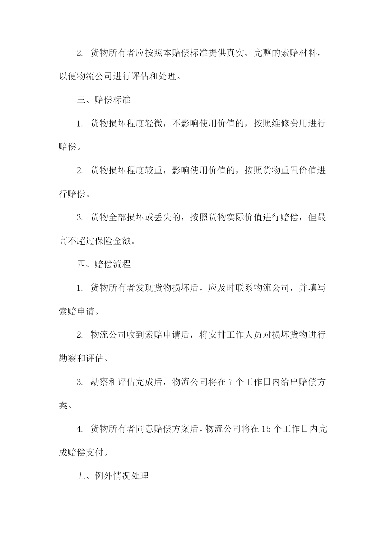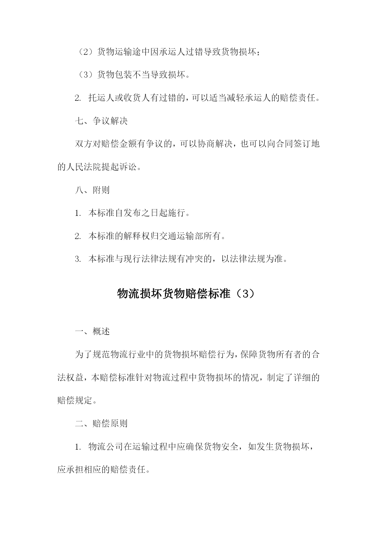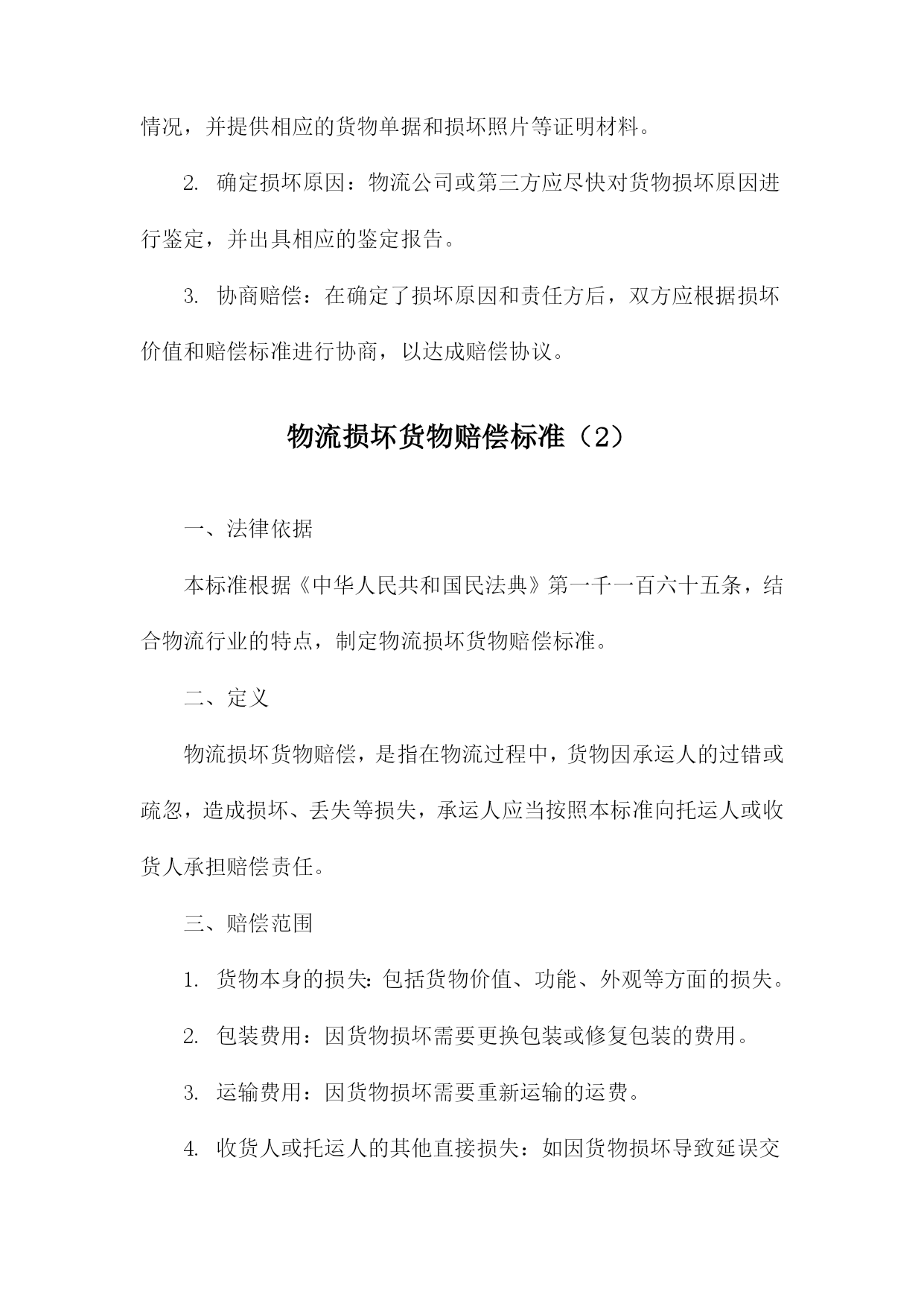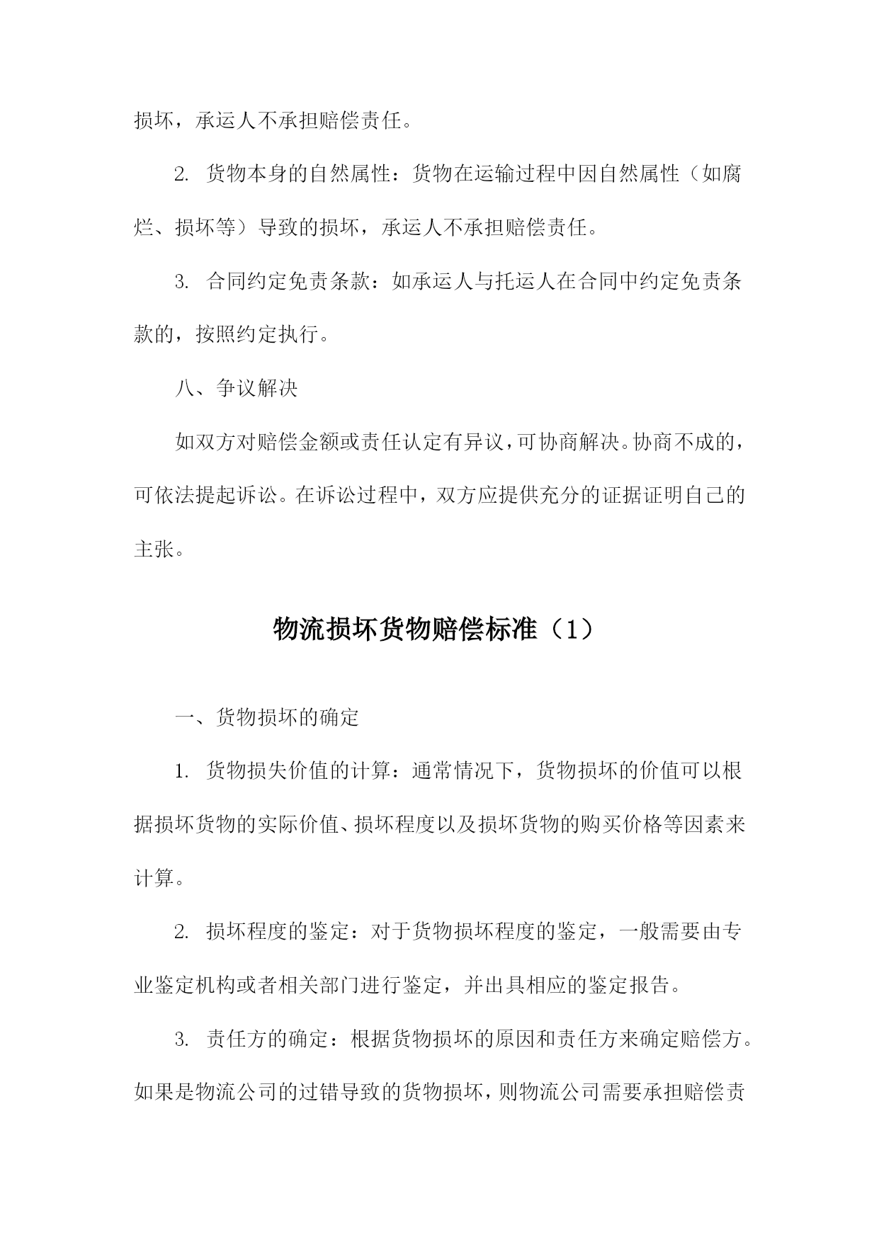 物流损坏货物赔偿标准一、法律依据本标准根据《中华人民共和国民法典》第一千一百六十五条,结合物流行业的特点,制定物流损坏货物赔偿标准。二、定义物流损坏货物赔偿,是指在物流过程中,货物因承运人的过错或疏忽,造成货物损坏,承运人应承担的赔偿责任。三、赔偿原则1.诚实信用原则:承运人应按照约定履行运输义务,确保货物安全、完整地送达目的地。2.谁主张、谁举证原则:索赔方应提供证据证明货物在运输过程中受损的事实及损失程度。3.过错责任原则:承运人应在过错范围内承担赔偿责任。则不承担赔偿责任。四、赔偿范围1.货物价值:货物在运输过程中的损失应按照货物价值进行赔偿。货物价值可根据购货发票、货物清单等证据确定。2.包装费用:由于货物包装不善导致的损坏,承运人应负责赔偿包装费用。3.运输费用:因货物损坏导致运输费用增加的部分,承运人应负责赔偿。4.其他附加费用:如因货物损坏导致延误交货产生的其他附加费用(如保险费、处理费等),承运人应负责赔偿。五、赔偿金额的计算方法1.单价法:根据货物单价的乘积计算赔偿金额。2.损失率法:根据货物实际损失率计算赔偿金额。具体计算公式为:赔偿金额货物实际损失率货物总价值。3.综合法:综合以上两种方法计算赔偿金额。六、责任认定1.承运人责任:承运人未按约定履行运输义务,导致货物损坏的,应承担赔偿责任。2.第三方责任:如货物在运输过程中因第三方原因损坏,承运人应协助索赔方向第三方追偿。3.无法确定责任方:如货物损坏原因无法确定,承运人和索赔方应协商解决。协商不成的,可依法提起诉讼。七、免责事由1.不可抗力:因不可抗力(如自然灾害、战争等)导致的货物损坏,承运人不承担赔偿责任。2.货物本身的自然属性:货物在运输过程中因自然属性(如腐烂、损坏等)导致的损坏,承运人不承担赔偿责任。3.合同约定免责条款:如承运人与托运人在合同中约定免责条款的,按照约定执行。八、争议解决如双方对赔偿金额或责任认定有异议,可协商解决。协商不成的,可依法提起诉讼。在诉讼过程中,双方应提供充分的证据证明自己的主张。物流损坏货物赔偿标准(1)一、货物损坏的确定1.货物损失价值的计算:通常情况下,货物损坏的价值可以根据损坏货物的实际价值、损坏程度以及损坏货物的购买价格等因素来计算。2.损坏程度的鉴定:对于货物损坏程度的鉴定,一般需要由专业鉴定机构或者相关部门进行鉴定,并出具相应的鉴定报告。3.责任方的确定:根据货物损坏的原因和责任方来确定赔偿方。如果是物流公司的过错导致的货物损坏,则物流公司需要承担赔偿责任;如果是第三方原因导致的货物损坏,则第三方需要承担赔偿责任。二、赔偿标准的制定在确定了货物损坏的责任方和损坏价值后,需要制定相应的赔偿标准。以下是一般情况下制定赔偿标准的方法:1.参照货物损失价值:赔偿标准可以参照货物损失的价值来进行制定。货物损失价值越高,赔偿金额也应该相应增加。2.区分不同损坏程度:对于不同损坏程度的货物,可以制定不同的赔偿标准。对于部分损坏的货物,可以按照损坏部分的重量或者价值进行赔偿;对于完全损坏的货物,可以按照全部价值进行赔偿。3.考虑货物的购买价格:赔偿标准还可以考虑货物的购买价格。货物的购买价格越高,赔偿金额也应该相应增加。4.区分责任方:对于不同责任方的赔偿标准也应该有所区别。如果是物流公司的过错导致的货物损坏,则物流公司的赔偿标准应该高于第三方的赔偿标准;如果是第三方原因导致的货物损坏,则第三方的赔偿标准应该高于物流公司的赔偿标准。三、赔偿流程在确定了货物损坏的责任方和赔偿标准后,需要进行赔偿流程。以下是一般情况下赔偿流程:1.报告损坏:当发现货物损坏时,应及时向物流公司报告损坏情况,并提供相应的货物单据和损坏照片等证明材料。2.确定损坏原因:物流公司或第三方应尽快对货物损坏原因进行鉴定,并出具相应的鉴定报告。3.协商赔偿:在确定了损坏原因和责任方后,双方应根据损坏价值和赔偿标准进行协商,以达成赔偿协议。物流损坏货物赔偿标准(2)一、法律依据本标准根据《中华人民共和国民法典》第一千一百六十五条,结合物流行业的特点,制定物流损坏货物赔偿标准。二、定义物流损坏货物赔偿,是指在物流过程中,货物因承运人的过错或疏忽,造成损坏、丢失等损失,承运人应当按照本标准向托运人或收货人承担赔偿责任。三、赔偿范围1.货物本身的损失:包括货物价值、功能、外观等方面的损失。2.包装费用:因货物损坏需要更换包装或修复包装的费用。3.运输费用:因货物损坏需要重新运输的运费。4.收货人或托运人的其他直接损失:如因货物损坏导致延误交货,产生的仓储费、交通费等。四、赔偿原则1.有过错责任原则:承运人因过错造成货物损坏的,应当承担赔偿责任。不承担赔