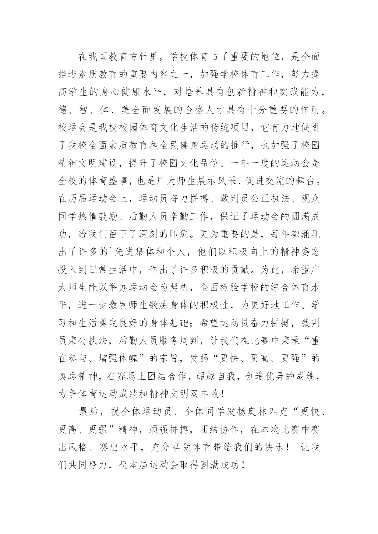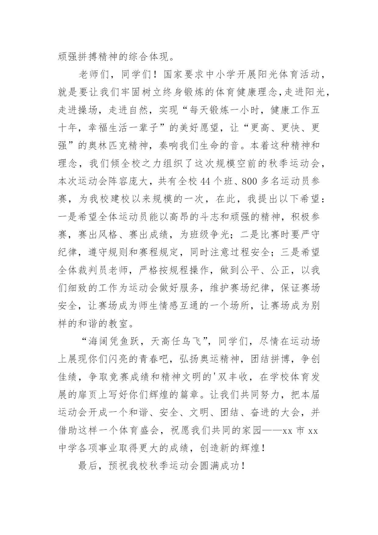 秋季运动会开幕式致辞_运动会开幕式通讯稿