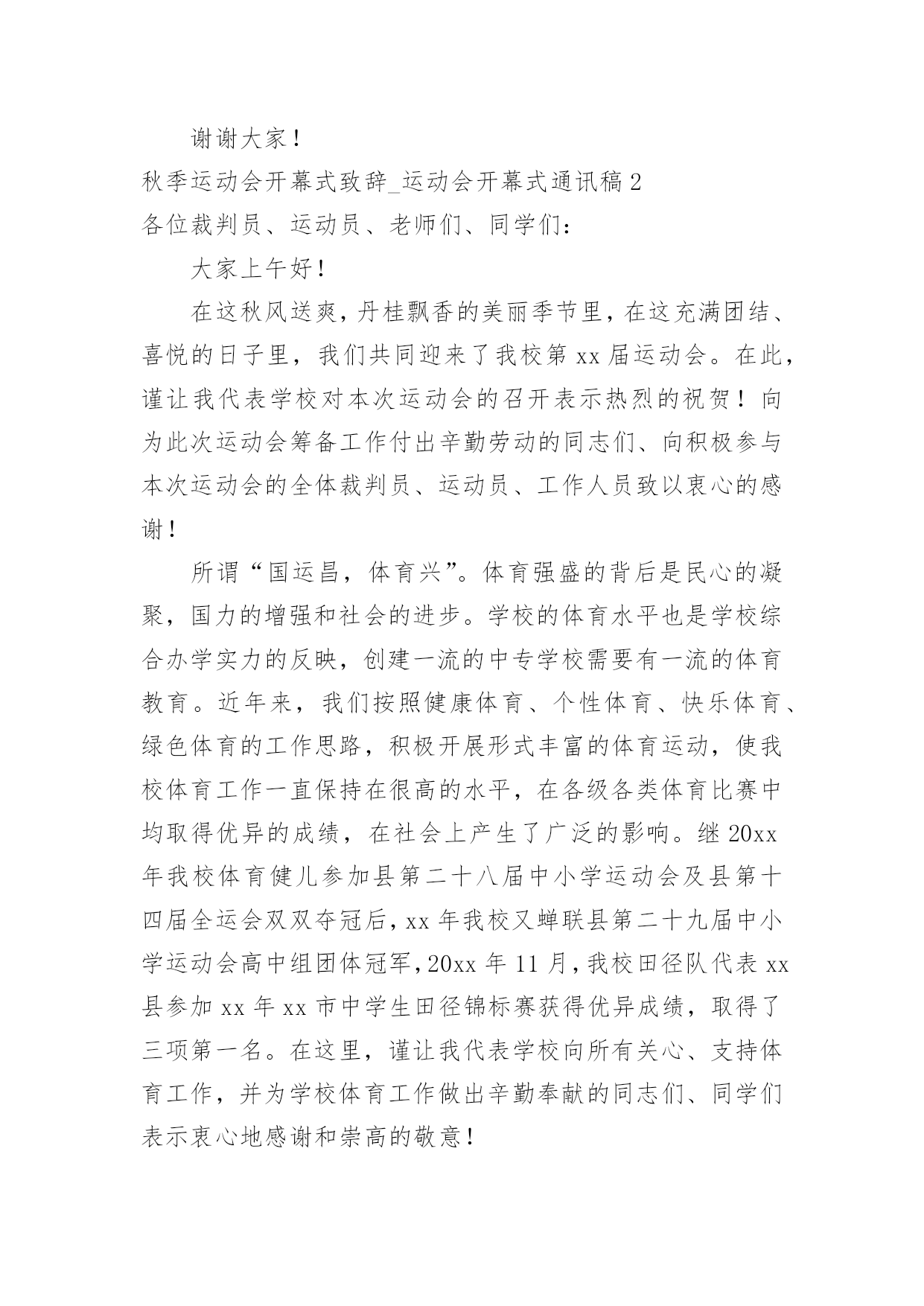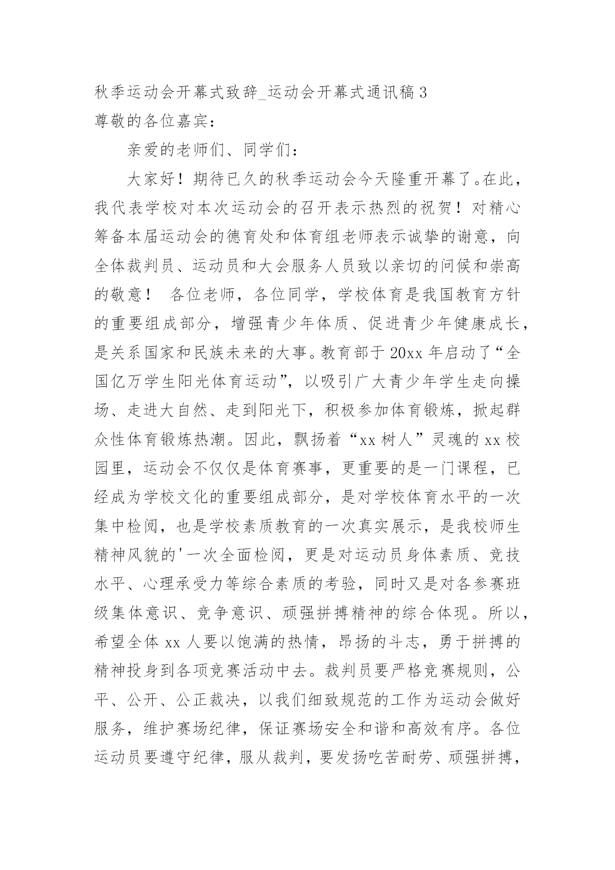 秋季运动会开幕式致辞_运动会开幕式通讯稿.docx