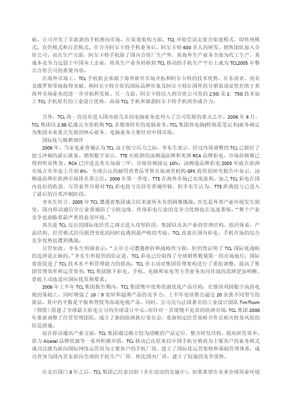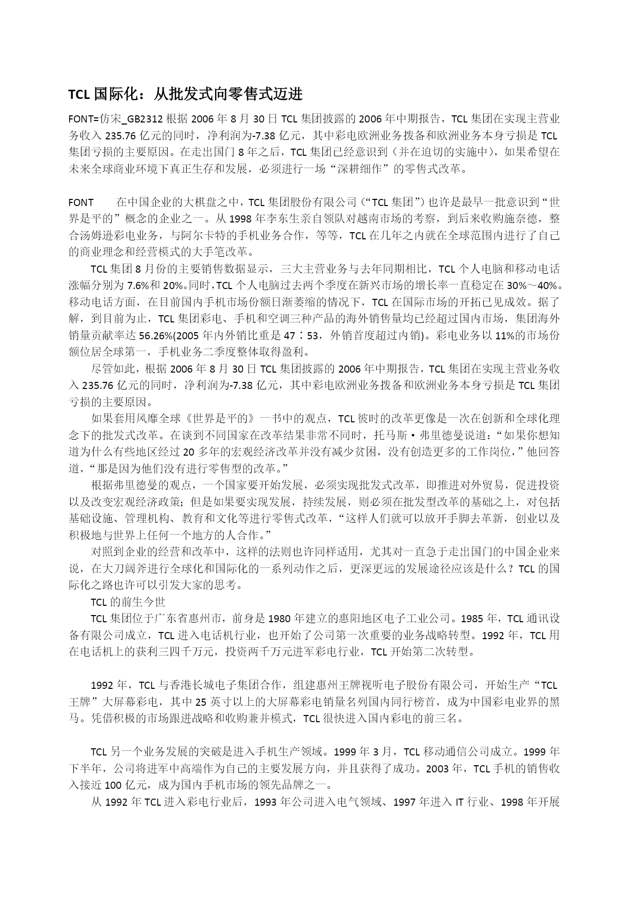 [精品]TCL国际化:从批发式向批发式迈进.doc
