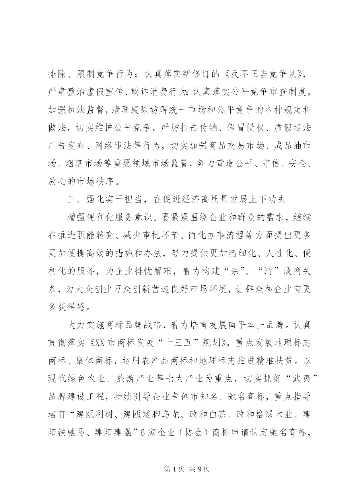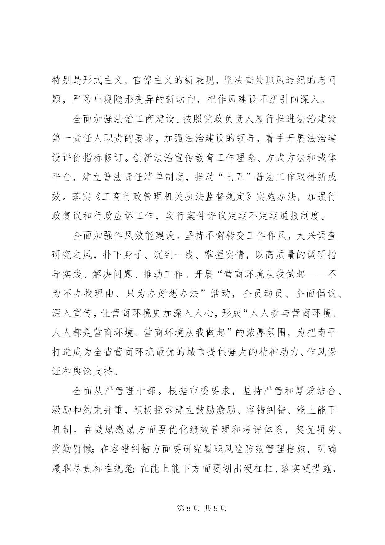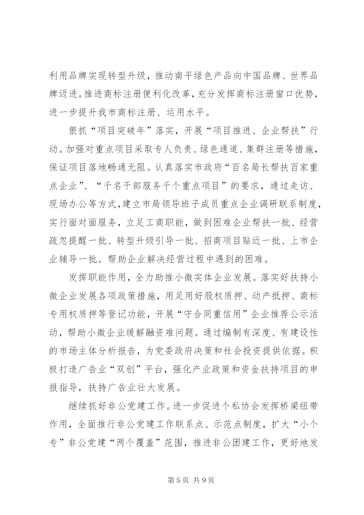 第PAGE\*Arabic\*MERGEFORMAT9页共NUMPAGES\*MERGEFORMAT9页工商局工作计划经典范文20___年是实施“十三五”规划承上启下的关键一年,紧紧围绕“全力推进南平高质量发展、赶超发展、绿色发展”的奋斗目标,坚持稳中求进工作总基调,坚持新发展理念,充分发挥好市场监管的主力军作用,强化担当、奋力作为,积极贯彻落实《XX市“十三五”市场监管规划》,持续创优营商环境、提升监管执法实效、促进经济高质量发展、提升消费维权效能、提升全面从严治党水平,为奋力谱写新时代南平发展新篇章作出新贡献。一、强化改革担当,在持续创优营商环境上下功夫树立纵深化改革理念。营商环境“优”无止境,我们必须坚持以市场化为方向,主动对标先进地区,积极借鉴国内外好的经验做法,努力打造更加开放透明、更具国际吸引力的营商环境。坚持以问题为导向,把要解决的问题找准,把改革的内容、步骤、环节考虑清楚,精准施策,不断提高改革的精准化、精细化水平。坚持以协同推进为手段,坚持改革系统性、整体性、协同性,着眼全局推进改革,主动加强与有关部门的沟通协调,建立协作机制,形成改革合力,共同把全局性改革推向纵深发展。统筹推进“证照分离”和“多证合一”改革。积极谋划,在抓好“证照分离”7月1日全面推开前期衔接工作的同时,主动作为,努力创造条件,积极争取“证照分离”早日实施。推动“照后减证”,大幅减少行政审批,着力解决“准入不准营”问题。继续做好“五证合一”到“多证合一”改革的过渡衔接工作,协调相关部门加强信息共享,确保改革措施落到实处。做好前置审批事项目录、后置审批事项目录和“多证合一”改革整合证照目录的更新和发布,逐步建立完善涉企证照目录动态化管理机制,积极推进第二批涉企证照整合。深入推进“最多跑一趟”改革。落实推进企业名称库开放工作,积极试点推行企业名称自主选用;按照省、市政府“互联网+政务服务”工作整体要求,在更大范围、更广领域推进市场主体登记全程电子化,进一步提高市场主体登记无纸化智能化水平;加大宣传引导力度,不断提高全程电子化登记、电子营业执照的社会知晓度和实际应用率,力争实现“互联网+”环境下的“一照走天下”。大力推进退出全程便利化改革。进一步优化市场主体退出机制,持续推行个体工商户简易注销登记改革,降低市场主体退出成本。建立个体工商户经营范围“负面清单”,做好个体工商户“两证整合”换照工作,推动地方政府指定免予登记、方便群众从事便民性、谋生性经营的场所和时间。大力推进注册登记规范化标准化建设。积极争取试点开展个体工商户自主申报、自动审查核准、自助打照全程电子化登记改革和个体工商户营业执照转让变更改革试点;从人员配置、设施配置、业务系统、工作流程等四个方面推进窗口标准化建设,努力实现各项服务更加统一、规范、高效、有序。二、强化引领担当,在提升监管执法实效上下功夫增强现代化监管意识。市场监管是促进公平竞争、维护市场秩序的根本要求。我们要树立大监管理念,以贯彻落实《XX市“十三五”市场监管规划》为重点,推进市场监管领域综合执法,建立市场监管局际联席会议制度,健全完善跨部门、跨区域执法联动响应和协作机制,逐步推进跨部门涉企随机抽查全覆盖,实现跨部门联合惩戒常态化。要坚持依法依规监管,运用法治思维和法治方式履行市场监管职责,全面落实权责清单制度,完善“双随机一公开”,建立“制度+科技”长效机制,促进市场监管规范化、法治化、智能化。积极推动落实事中事后监管责任。贯彻“谁审批、谁监管,谁主管、谁监管”原则,推动落实“证照分离”改革后发证部门和行业主管部门的监管责任,完善事中事后监管工作机制。加快建立抽查监管、信用监管、精准监管三位一体工作机制。继续牵头抓好全市“双随机一公开”监管,不断探索完善开展跨部门联合抽查工作;加强涉企信息监测分析,提高风险预判能力,适时组织开展定向抽查工作,提高监管的有效性和精准性。强化重点领域监管执法。继续开展公用行业和独占地位企业集中整治,以公用行业为重点,严查协议垄断和滥用市场支配地位行为;开展对独占地位企业集中整治,坚决制止滥用行政权力排除、限制竞争行为;认真落实新修订的《反不正当竞争法》,严肃整治虚假宣传、欺诈消费行为;认真落实公平竞争审查制度,加强执法监督,清理废除妨碍统一市场和公平竞争的各种规定和做法,切实维护公平竞争。严厉打击传销、假冒侵权、虚假违法广告发布、网络违法等行为,切实加强商品交易市场、成品油市场、烟草市场等重要领域市场监管,努力营造公平、守信、安全、放心的市场秩序。三、强化实干担当,在促进经济高质量发展上下功夫增强便利化服务意识。要紧紧围绕企业和群众的需求,继续在推进职能转变、减少审批环节、简化办事流程等方面提出更多更加便捷高效的措施和办法,努力提供更加精细化、人性化、便利化的服
