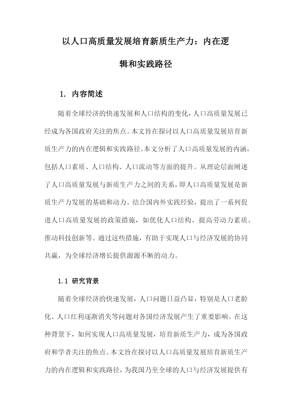 以人口高质量发展培育新质生产力:内在逻辑和实践路径.docx