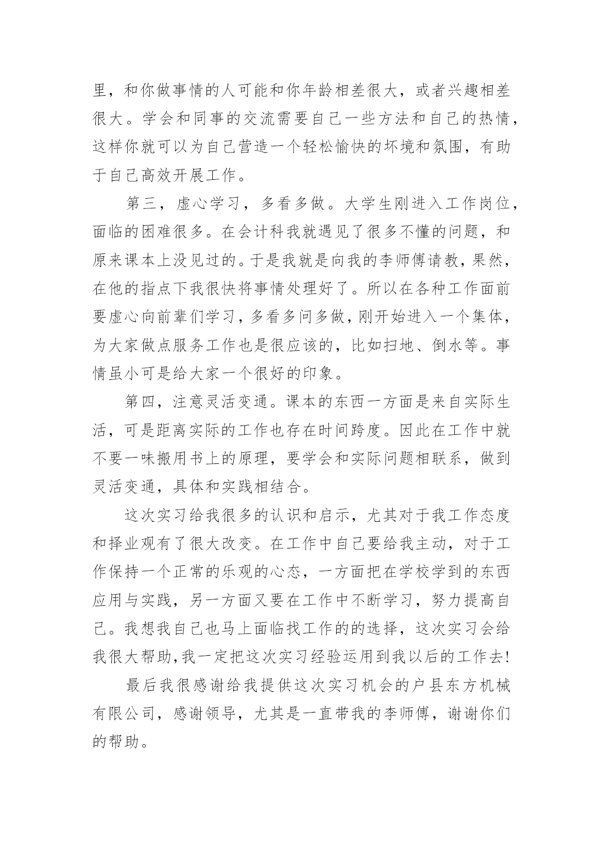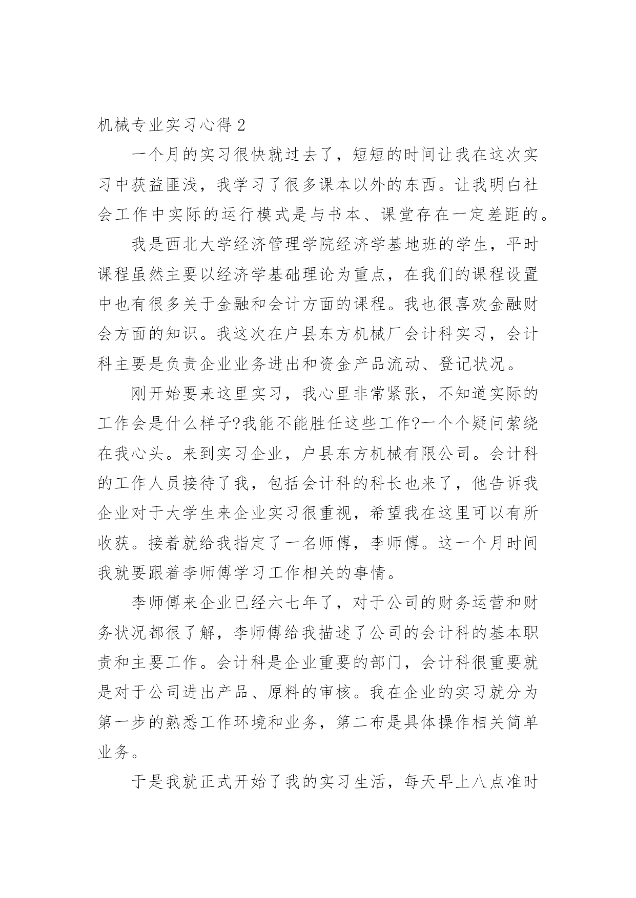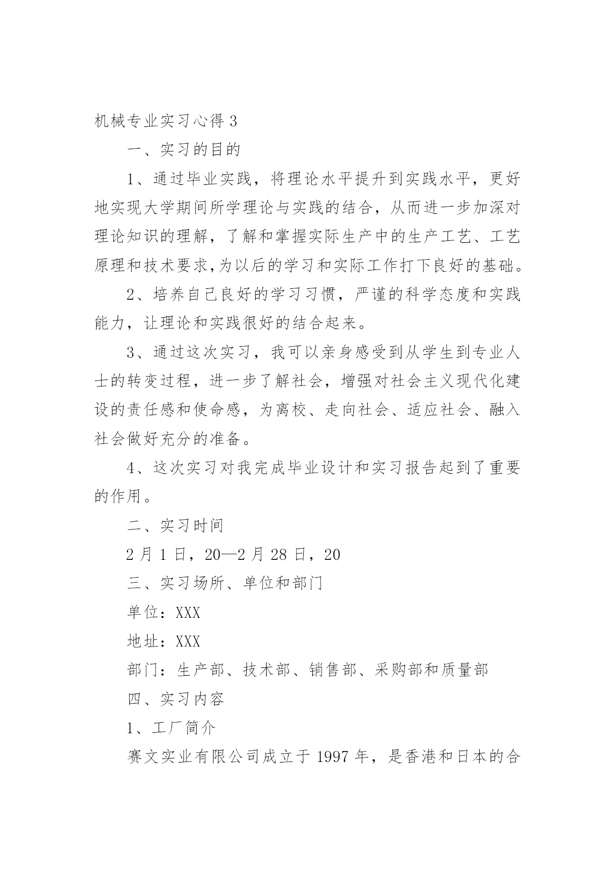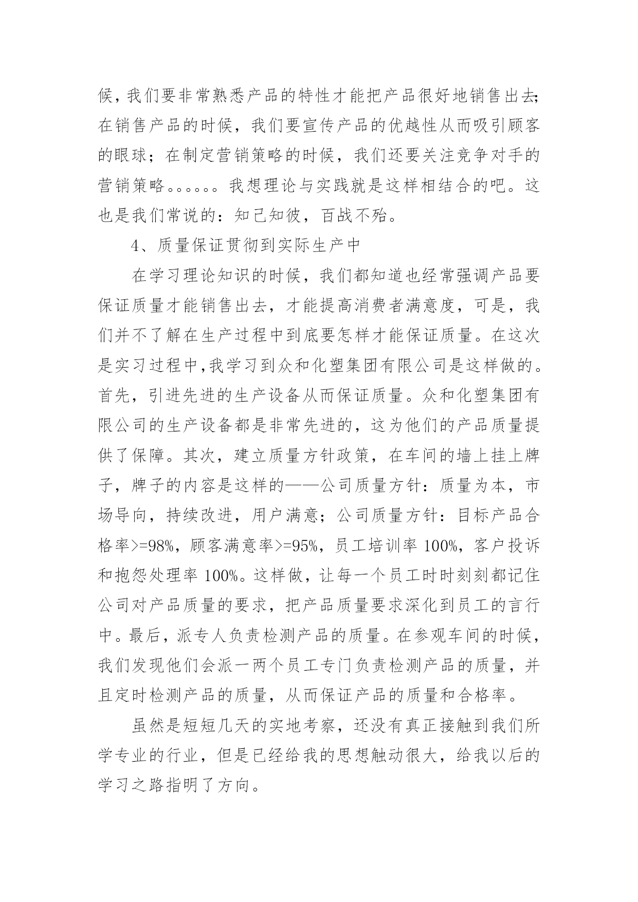 机械专业实习心得机械专业实习心得15篇我们得到了一些心得体会以后,应该马上记录下来,写一篇心得体会,从而不断地丰富我们的思想。但是心得体会有什么要求呢?以下是小编为大家收集的机械专业实习心得,欢迎阅读,希望大家能够喜欢。机械专业实习心得1俗话说:纸上得来终觉浅,欲知此事需躬行。虽然我们学习有关市场营销专业的基础理论知识已经两年多了,但是我们还不怎么了解一个企业是怎样进行营销工作,怎样进行生产的。通过学校组织我们到茂名铁路运输公司,茂名石化物质供应中心,众和化塑集团有限公司等三家企业进行实地考察,参观,听取企业工作人员讲课,学习讨论,我不仅开拓了我的视野,而且还认识了市场营销专业知识在实际工作中的作用。本次实习的过程是这样的:20xx年7月4日,学校组织我们到茂名铁路运输公司进行了参观和学习。20xx年7月5日,学校组织我们到茂名石化物质供应中心进行了实地考察和听取该公司的李主任讲课。通过本次的实习,我了解了铁路运输公司的运输系统及操作和日常工作和管理的情况;了解了茂名石化的原材料是怎样供应,怎样采购,怎样储存和管理;了解了该公司的生产原材料的化学装置,生产原材料的运作和制成成品——塑料编织袋的生产流水线。这次的实习虽然只有短短的三天时间,可是,我已经收获良多。以下几点是我这次实习的心得体会。1、深刻了解茂石化虽然来到茂名读书已经有三年多了,可是对于茂石化的了解说起来真的很少。平时,只是听别人说茂石化很厉害,有了茂石化才有了茂名,自己并没有主动积极地去了解茂石化。但是,听了茂名石化物质供应中心李主任的详细讲解之后,我对于茂名和茂石化终于有了一个全面而又深刻的了解。听了李主任的课之后,我不仅对于茂石化的起源历史有了深刻的了解,而且对于茂石化生产的产品、产品的特点、产品的用途都有了一定的了解。听了李主任的课之后,我对于石油在一个国家的重要性又有了深刻了解。这次的见习,给了一个让我深刻了解茂石化的机会。我也充分地利用了这次机会,好好地学习了茂石化的历史和生产过程。2、深刻认识到机械化在生产中的作用和管理我平时都是生活在学校的象牙塔里面,很少有机会出去见习,就算寒暑假出去兼职工作,也是在劳动密集型的工厂里面做些手工活。在没有去见习之前,我对于生产机械化这一词真的没有什么概念。虽然通过教材的学习也知道现在的社会已经很发达了,很多的生产已经进入机械化生产,苦力已经渐渐退出生产环节了。可是,没有亲眼看到,亲身经历,我不能深刻体会到机械化在生产中的作用。来到茂名铁路运输公司,看到来来往往的火车在运输着各种各样的产品,可是,却看不到有很多很多的工人在现场指挥操作。一走进他们的信息楼,看到有几个工作人员在一个很大的电子屏幕面前进行着各种各样的操作,我才明白到他们的这些运作是靠系统指挥操作的,已经进入半自动化了,所以并不需要很多的工人在现场进行指挥。而在现场的工作人员也不是去指挥工作的,而是通过系统了解到下面的机械出现了故障,下去维修的。再来到众和化塑集团有限公司,一个做编织袋的厂,年产3千万吨,我以为会有很多很多的工人在车间工作。可是,一来到车间,我知道我原先的想法是错的了。倘若大的车间,一排排机械有序的排放着,高速运转地工作着,只是有一两个工人在工作。看着这些高速运转的机器,我终于明白到3千万吨的产能是怎么来的了。现在的生产已经是机械化地生产,再也不是传统的人力劳动了。机械化的生产,解放了劳动生产力,大大地提高了产出,降低了生产成本,保证了产品的质量,为企业的竞争提供了很好地保障。3、熟悉自己的产品和竞争对手在见习的过程中,听了三家企业的主任,厂长的课之后,我发现了他们都有一个共性:就是非常熟悉自己企业的产品,尤其是产品的特性,用途,优越性和不足。不仅如此,他们还非常了解他们的竞争对手,如竞争对手的产品特性,竞争对手的产出量,竞争对手采取了那些营销策略等。各位主任和厂长的经验之谈,很好地印证了老师教导的内容。在学营销基础理论知识的时候,老师教导我们在销售自己产品的时候,我们要非常熟悉产品的特性才能把产品很好地销售出去;在销售产品的时候,我们要宣传产品的优越性从而吸引顾客的眼球;在制定营销策略的时候,我们还要关注竞争对手的营销策略。。。。。。我想理论与实践就是这样相结合的吧。这也是我们常说的:知己知彼,百战不殆。4、质量保证贯彻到实际生产中在学习理论知识的时候,我们都知道也经常强调产品要保证质量才能销售出去,才能提高消费者满意度,可是,我们并不了解在生产过程中到底要怎样才能保证质量。在这次是实习过程中,我学习到众和化塑集团有限公司是这样做的。首先,引进先进的生产设备从而保证质量。众和化塑集团有限公司的生产设备都是非常先进的,这为他们的产品质量提供了保障。其次,建立质量方针政策,在车间的墙上挂上牌子,牌子的内容是这样的——公司质量方针:质量为本,