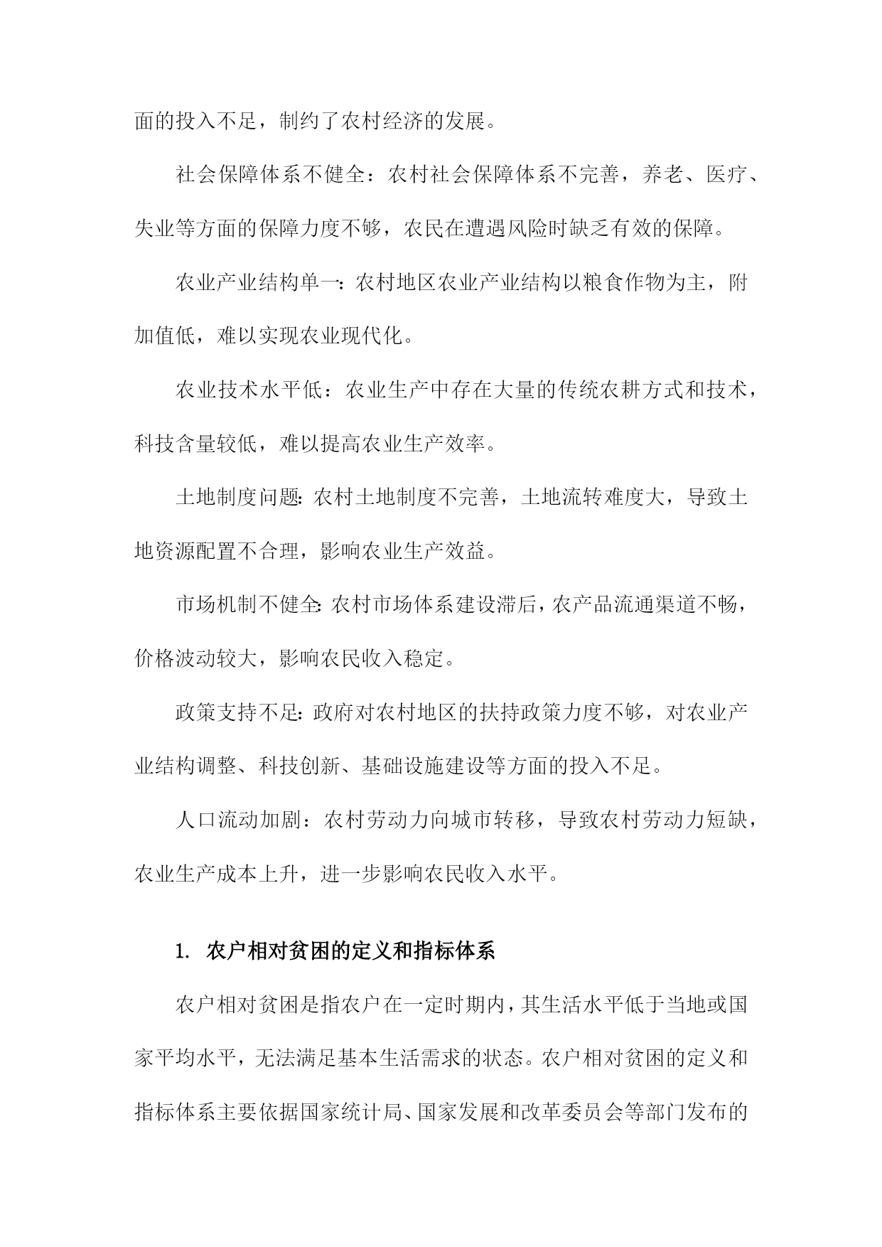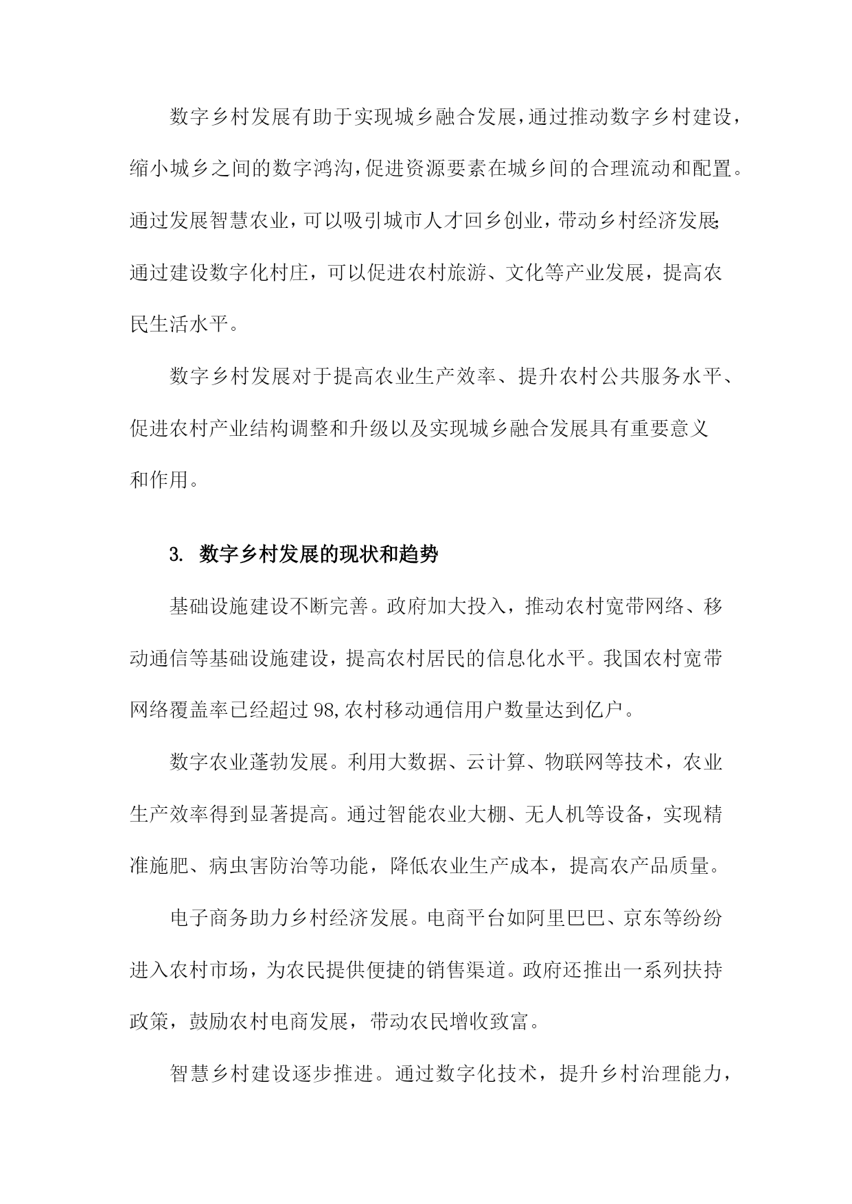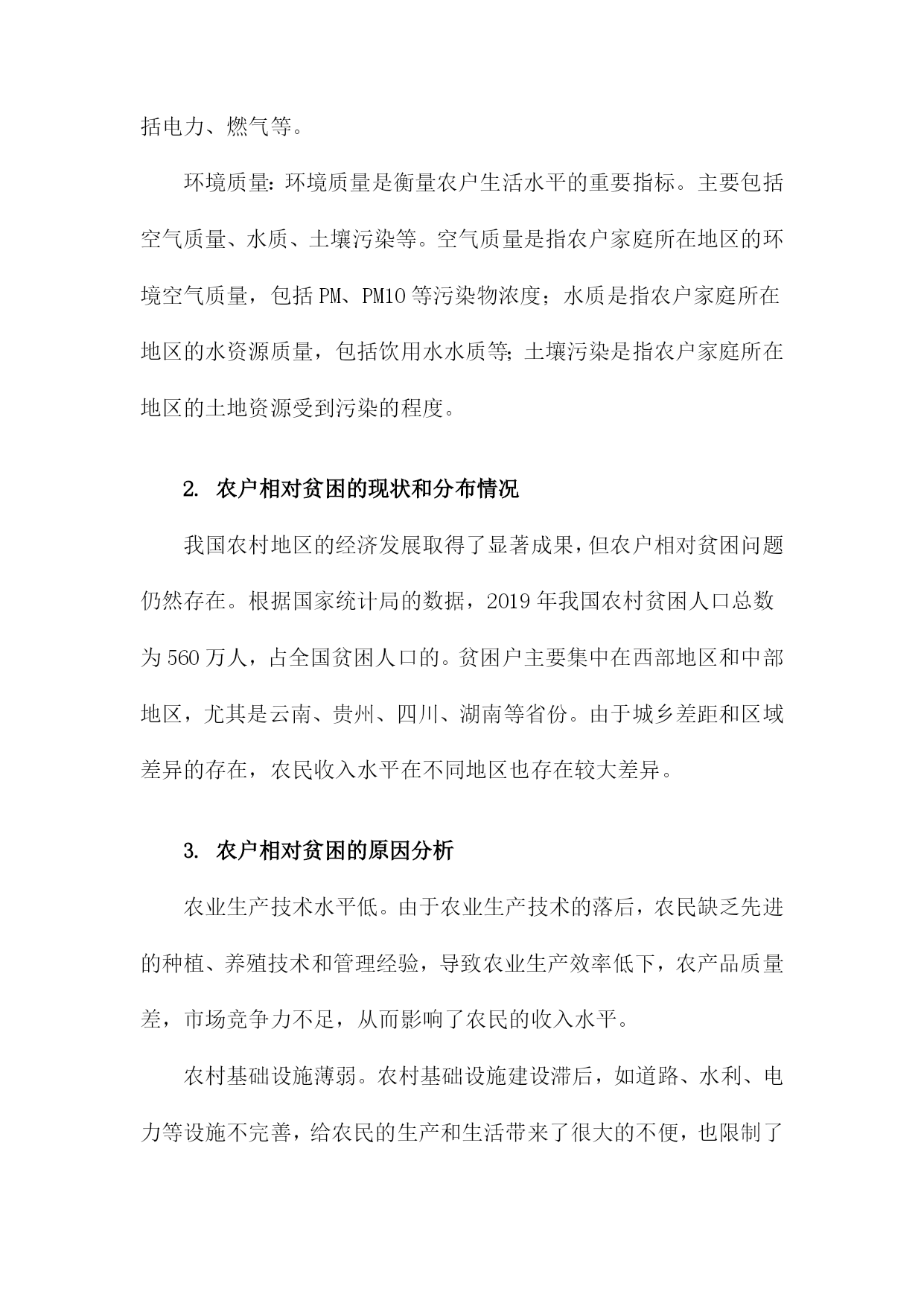 数字乡村发展与农户相对贫困一、数字乡村发展的概念和意义促进乡村经济增长。数字乡村发展可以推动农业生产效率的提高,促进农产品的现代化生产和加工,提高农业产值。数字乡村发展还可以带动农村非农产业的发展,拓宽农民就业渠道,增加农民收入来源。提升乡村公共服务水平。数字乡村发展可以通过信息化手段,提高乡村教育、医疗、养老等公共服务的质量和覆盖面,缩小城乡公共服务差距,提升农村居民的生活品质。保护乡村生态环境。数字乡村发展可以通过信息化手段,实现对农业生产、农村生活等各个环节的精准管理,减少资源浪费和环境污染,实现绿色发展。促进乡村文化繁荣。数字乡村发展可以利用现代信息技术手段,传承和弘扬乡村优秀传统文化,推动乡村文化创新,提升乡村文化软实力。推动城乡融合发展。数字乡村发展有助于打破城乡二元结构,促进城乡资源要素的优化配置,实现城乡经济社会协调发展。数字乡村发展是实现乡村振兴战略的重要途径,对于提高农村居民生活水平、促进经济社会发展具有重要意义。1.数字乡村发展的定义和内涵信息技术的应用:数字乡村发展强调运用现代信息技术,如物联网、云计算、大数据、人工智能等,改造农业生产、农村管理和农村服务等领域,提高农业科技水平和农业生产效率。互联网的普及:数字乡村发展要求加快农村宽带网络建设,提高农村居民的网络覆盖率和使用率,促进农村电子商务、在线教育、远程医疗等新型业态的发展,缩小城乡数字鸿沟。农业产业结构的优化:数字乡村发展着眼于推动农业产业结构调整,发展现代农业,培育新产业、新业态,提高农业附加值,实现农业可持续发展。农村公共服务水平的提升:数字乡村发展旨在通过信息化手段提高农村公共服务水平,包括教育、卫生、社会保障等方面,改善农民生活质量,促进农村社会和谐稳定。农村治理体系和治理能力现代化:数字乡村发展强调运用现代信息技术手段,加强农村基层组织建设,提高农村治理能力和水平,构建有效的乡村治理体系。数字乡村发展是一种以科技创新为核心,以提高农业生产效率、优化农村产业结构、改善农民生活质量为目标的全面发展模式,是实现农业农村现代化的重要途径。2.数字乡村发展的意义和作用数字乡村发展是指利用信息技术手段,推动农村经济社会的现代化、智能化和可持续发展。在当前全球经济一体化和信息化的大背景下,数字乡村发展具有重要意义和作用。数字乡村发展有助于提高农业生产效率,通过运用大数据、云计算、物联网等技术手段,实现农业生产的精准管理、智能决策和资源优化配置,从而提高农业生产效率,增加农民收入。通过智能农业系统,可以实时监测农田土壤湿度、温度等环境信息,为农业生产提供科学依据;通过无人机巡检,可以快速发现病虫害等问题,提高防治效果。数字乡村发展有助于提升农村公共服务水平,通过建设数字化基础设施,如宽带网络、移动通信基站等,实现农村公共服务的便捷化、高效化。通过远程医疗系统,可以让农村居民享受到优质的医疗服务;通过在线教育平台,可以解决农村孩子接受优质教育的问题。数字乡村发展有助于促进农村产业结构调整和升级,通过发展电子商务、互联网金融等新兴产业,推动农村产业结构的优化和转型升级。通过电商平台,可以将农产品销售到全国各地,拓宽销售渠道;通过互联网金融,可以为农民提供贷款、保险等金融服务,降低融资成本。数字乡村发展有助于实现城乡融合发展,通过推动数字乡村建设,缩小城乡之间的数字鸿沟,促进资源要素在城乡间的合理流动和配置。通过发展智慧农业,可以吸引城市人才回乡创业,带动乡村经济发展;通过建设数字化村庄,可以促进农村旅游、文化等产业发展,提高农民生活水平。数字乡村发展对于提高农业生产效率、提升农村公共服务水平、促进农村产业结构调整和升级以及实现城乡融合发展具有重要意义和作用。3.数字乡村发展的现状和趋势基础设施建设不断完善。政府加大投入,推动农村宽带网络、移动通信等基础设施建设,提高农村居民的信息化水平。我国农村宽带网络覆盖率已经超过98,农村移动通信用户数量达到亿户。数字农业蓬勃发展。利用大数据、云计算、物联网等技术,农业生产效率得到显著提高。通过智能农业大棚、无人机等设备,实现精准施肥、病虫害防治等功能,降低农业生产成本,提高农产品质量。电子商务助力乡村经济发展。电商平台如阿里巴巴、京东等纷纷进入农村市场,为农民提供便捷的销售渠道。政府还推出一系列扶持政策,鼓励农村电商发展,带动农民增收致富。智慧乡村建设逐步推进。通过数字化技术,提升乡村治理能力,实现乡村资源优化配置。利用大数据对乡村人口、土地、环境等信息进行分析,为决策提供科学依据;推广智能安防系统,提高乡村治安水平。数字文化繁荣发展。乡村数字文化资源丰富,政府加大对农村文化设施的投入,推动数字文化产业在乡村的发展。通过数字图书馆、在线教育等方式,丰富农村居民的