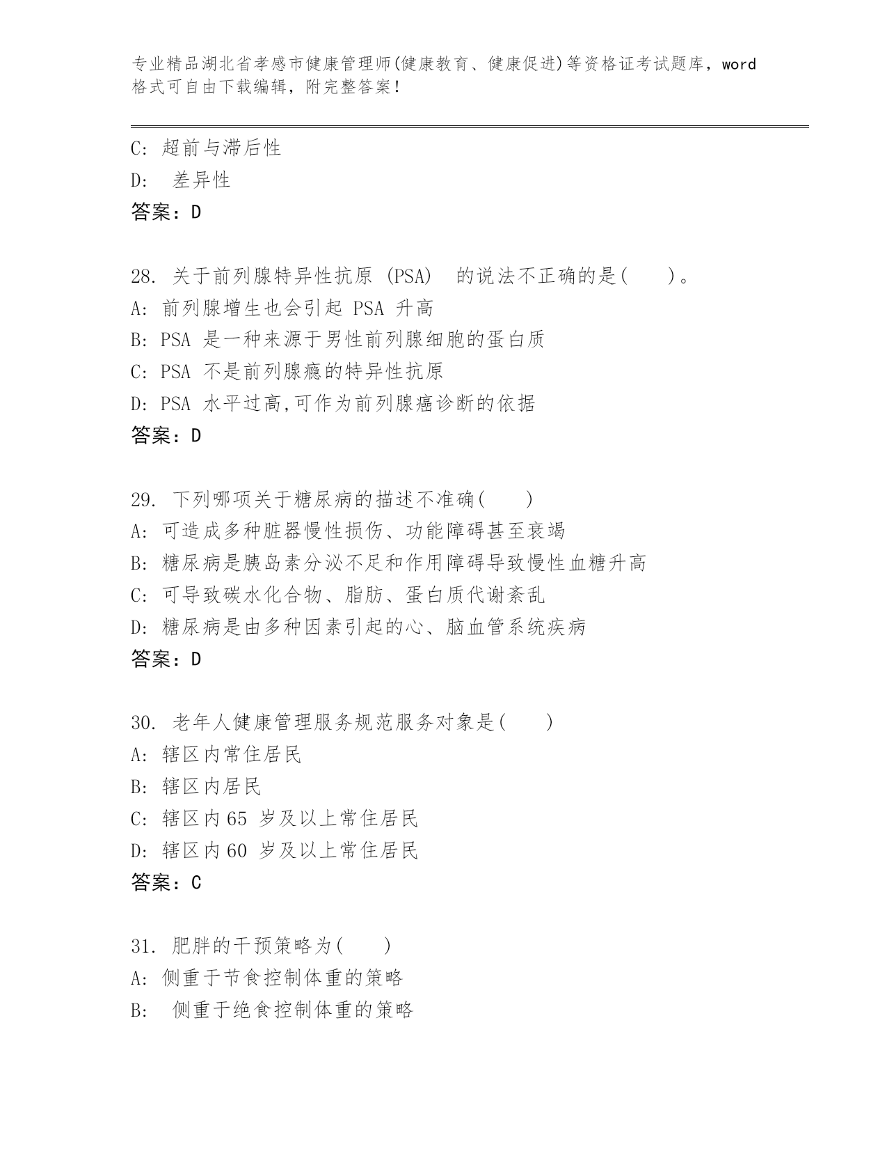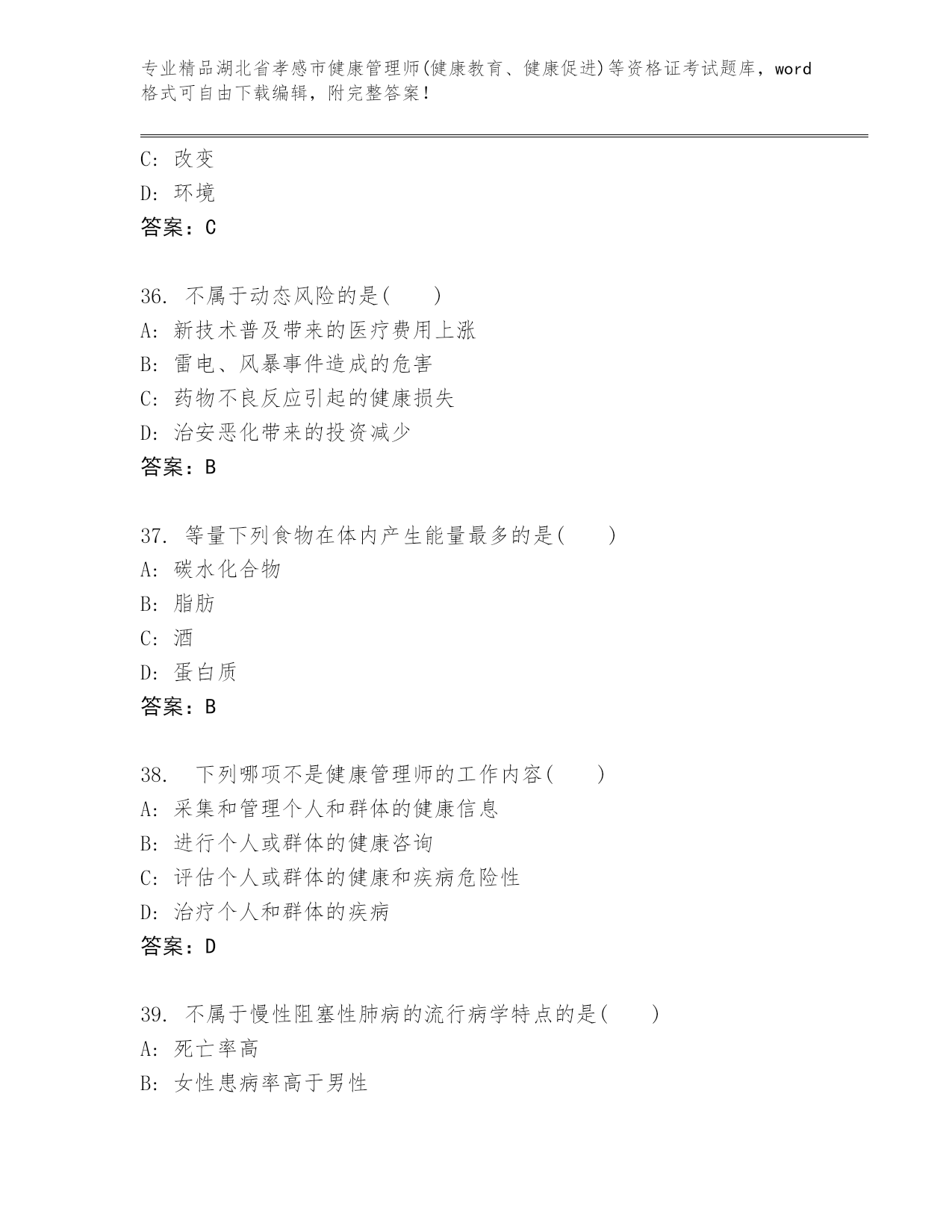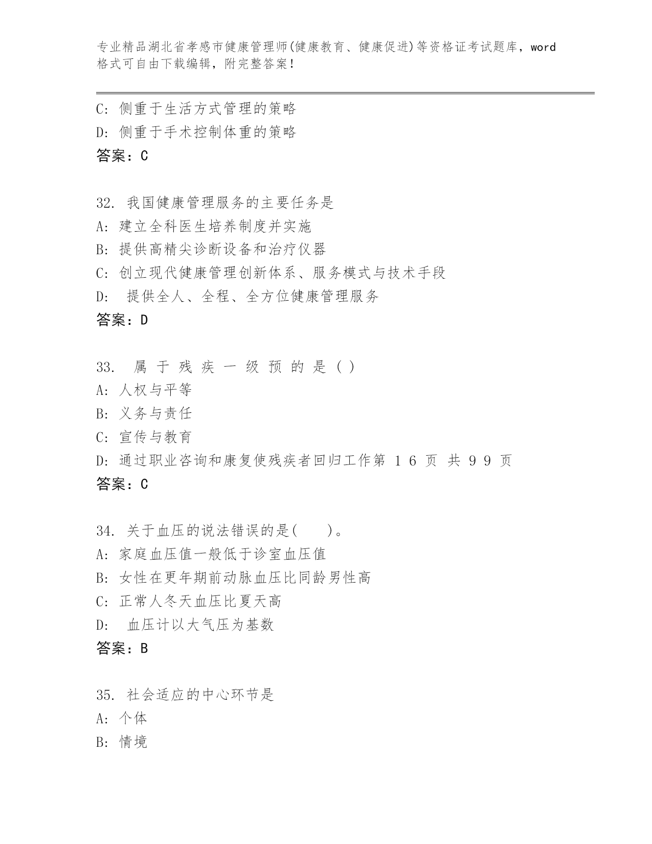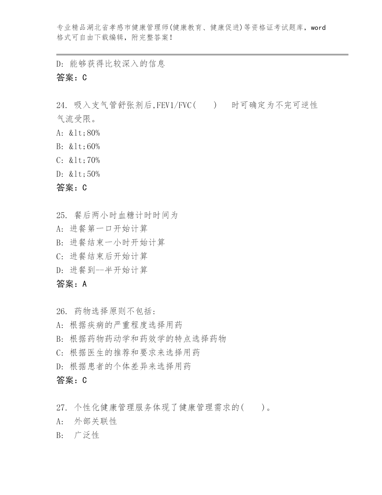 最新湖北省孝感市健康管理师(健康教育、健康促进)等资格证考试王牌题库完整答案.docx