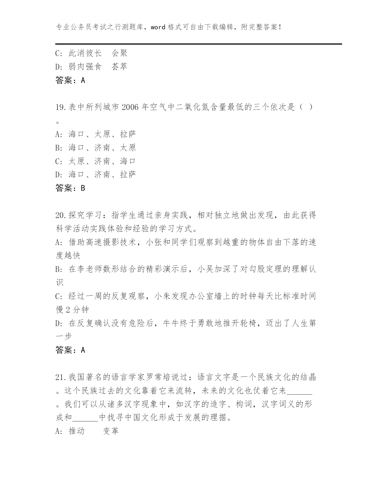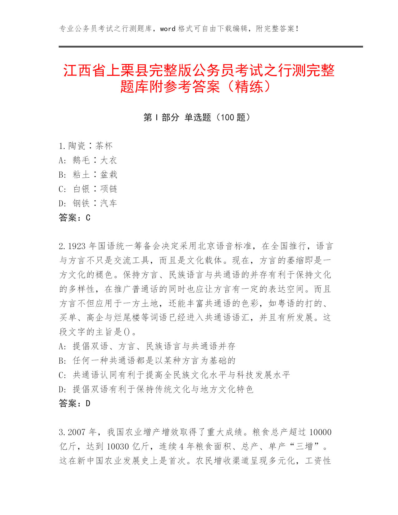 江西省上栗县完整版公务员考试之行测完整题库附参考答案(精练).docx