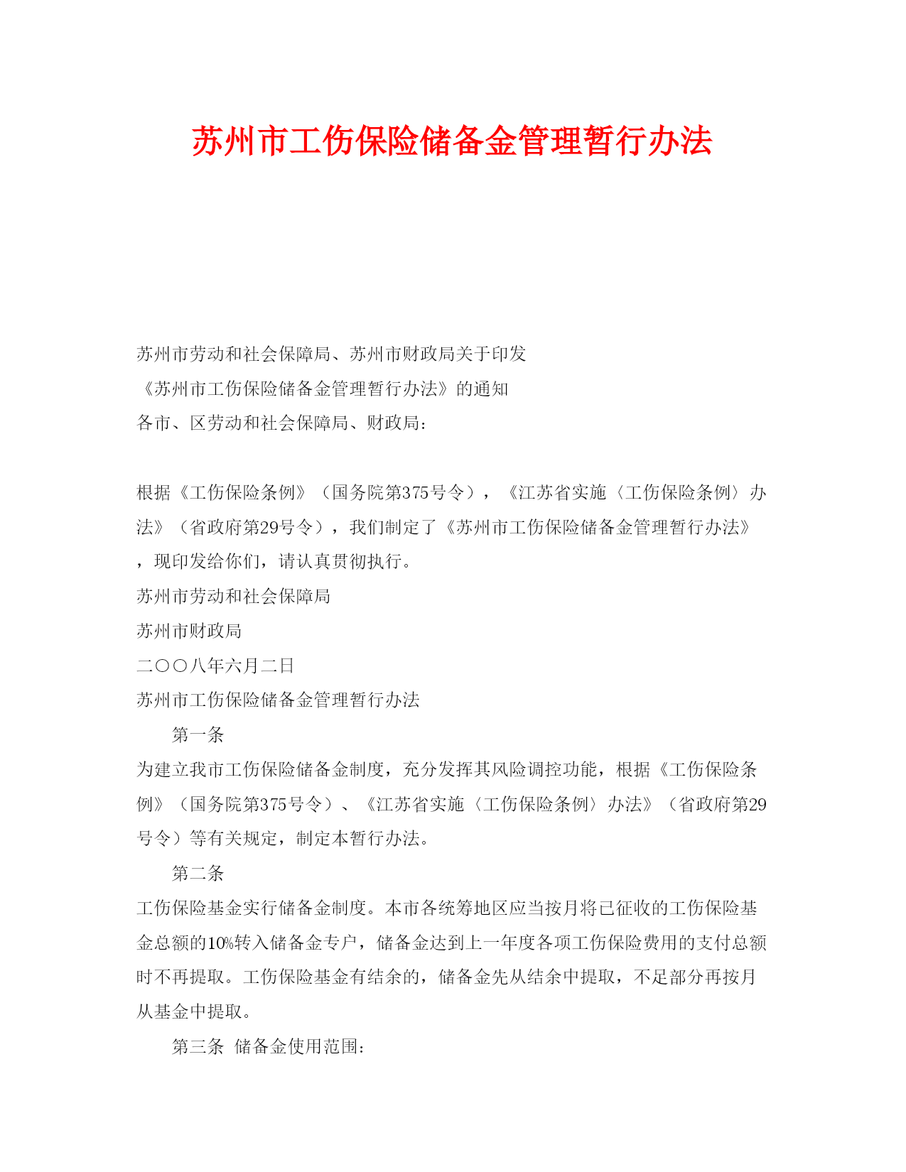 2022《工伤保险》之苏州市工伤保险储备金管理暂行办法.docx