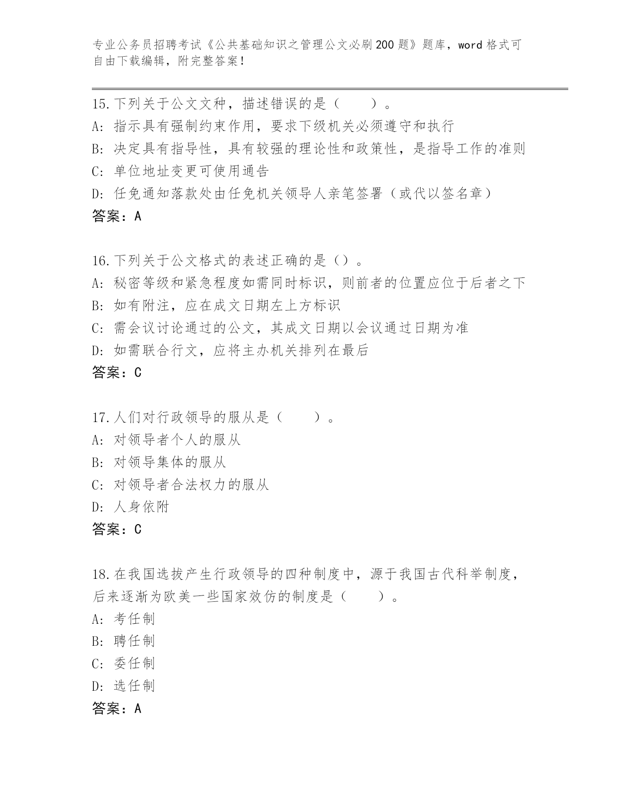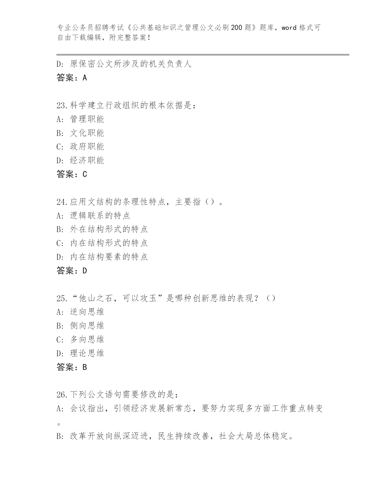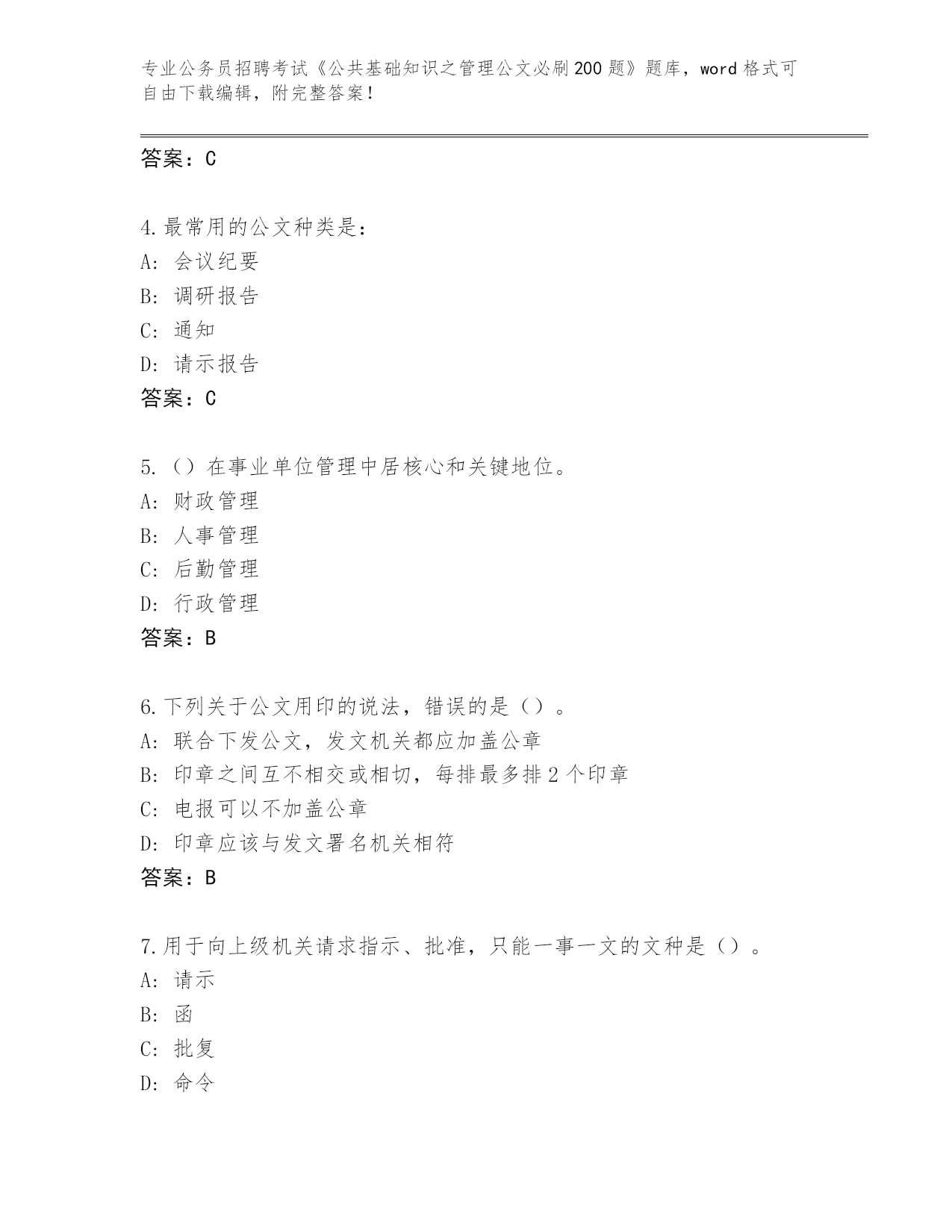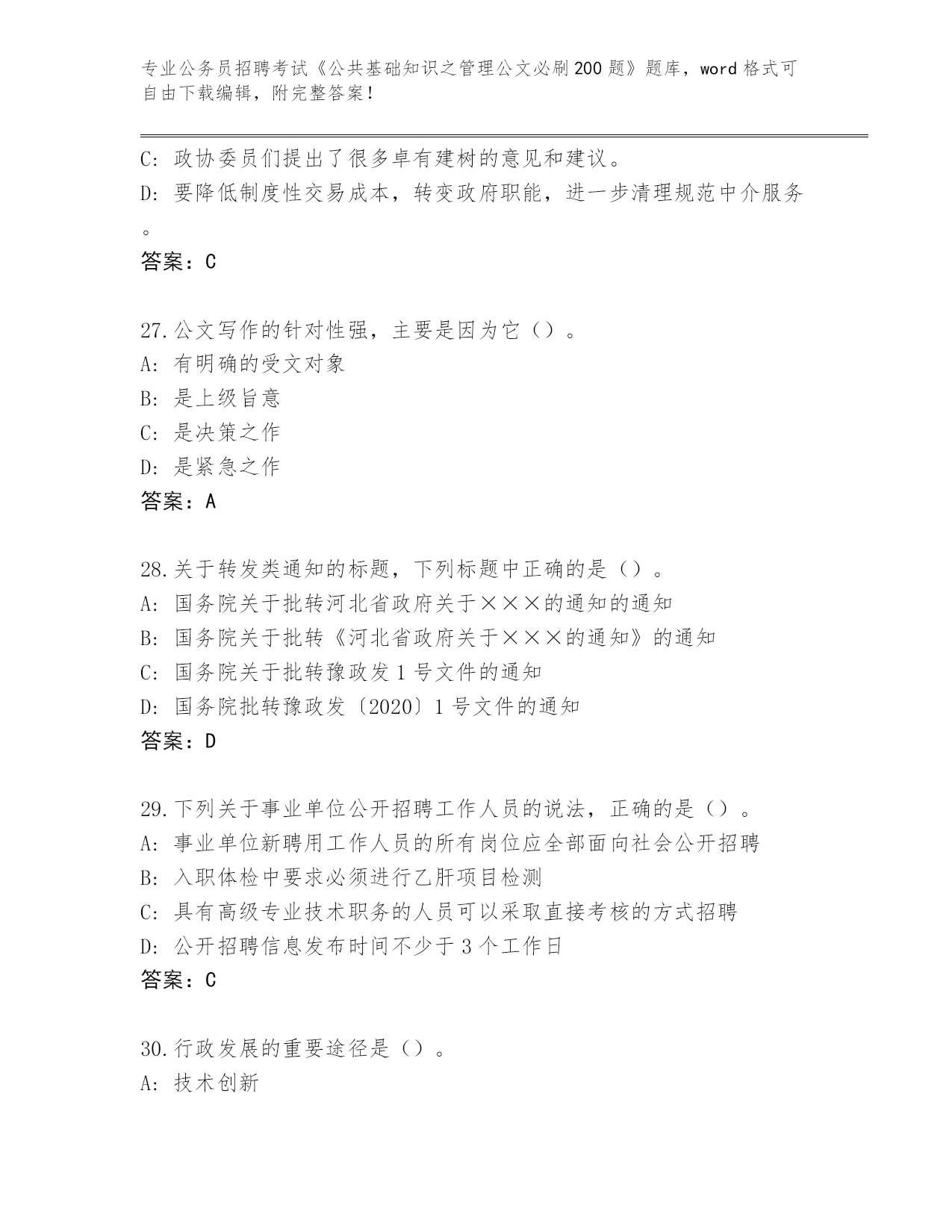 河南省中牟县2024年公务员招聘考试《公共基础知识之管理公文必刷200题》题库大全及答案().docx