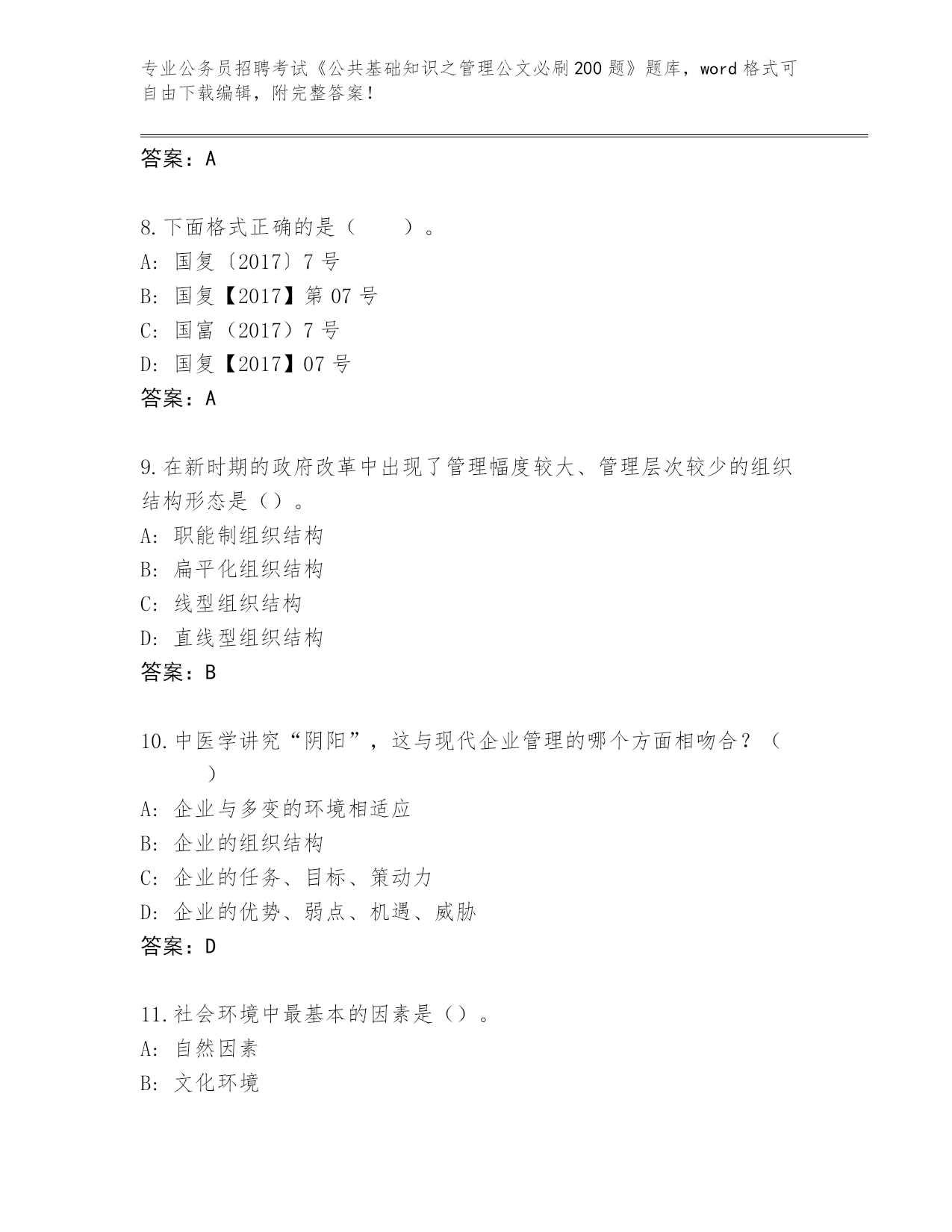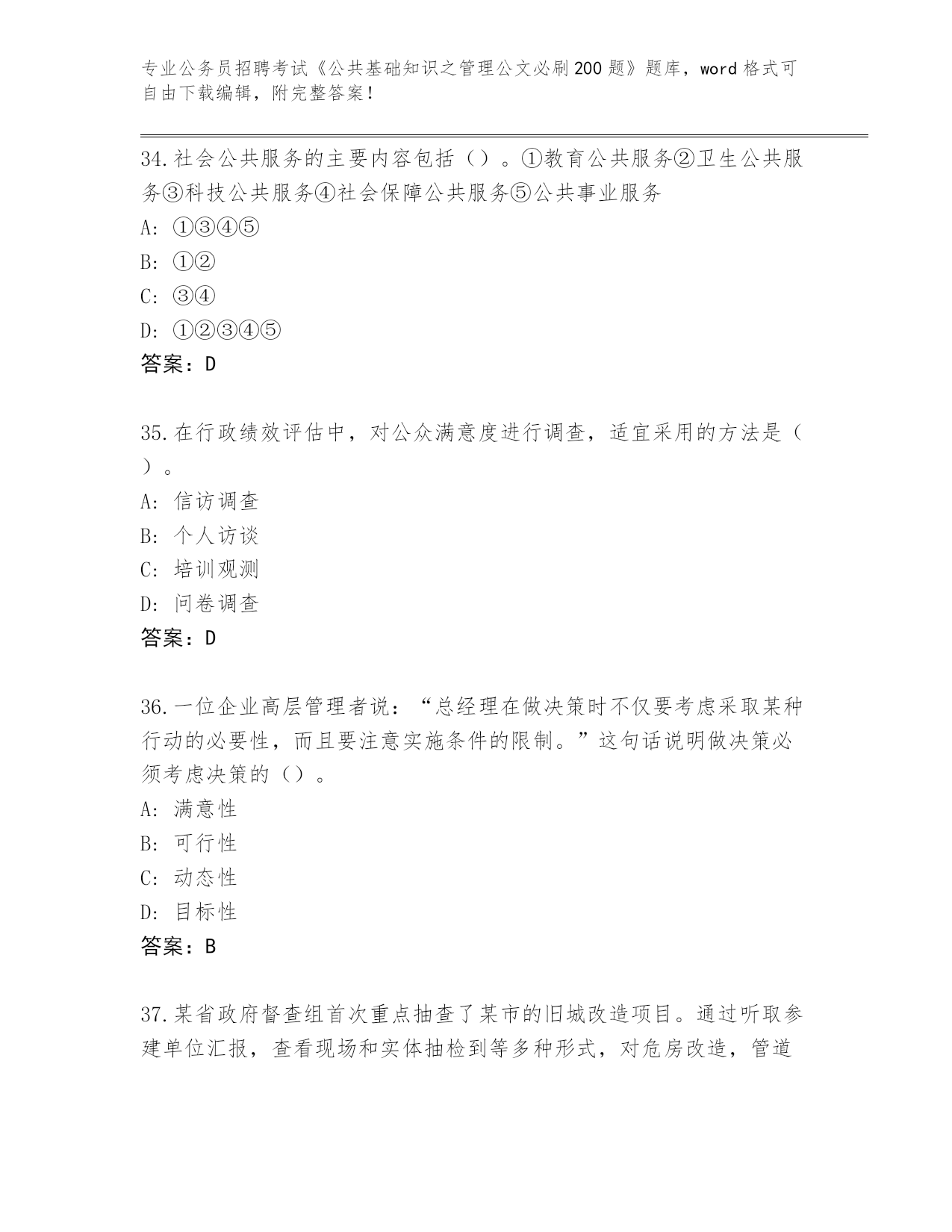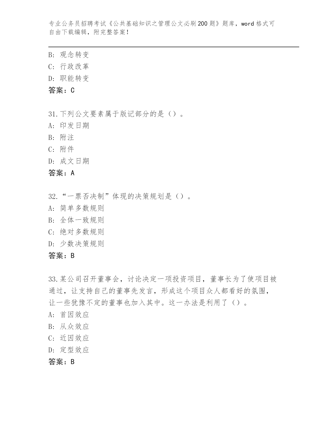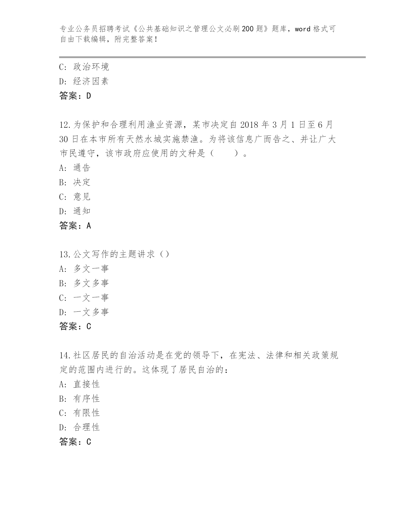 河南省中牟县2024年公务员招聘考试《公共基础知识之管理公文必刷200题》题库大全及答案().docx