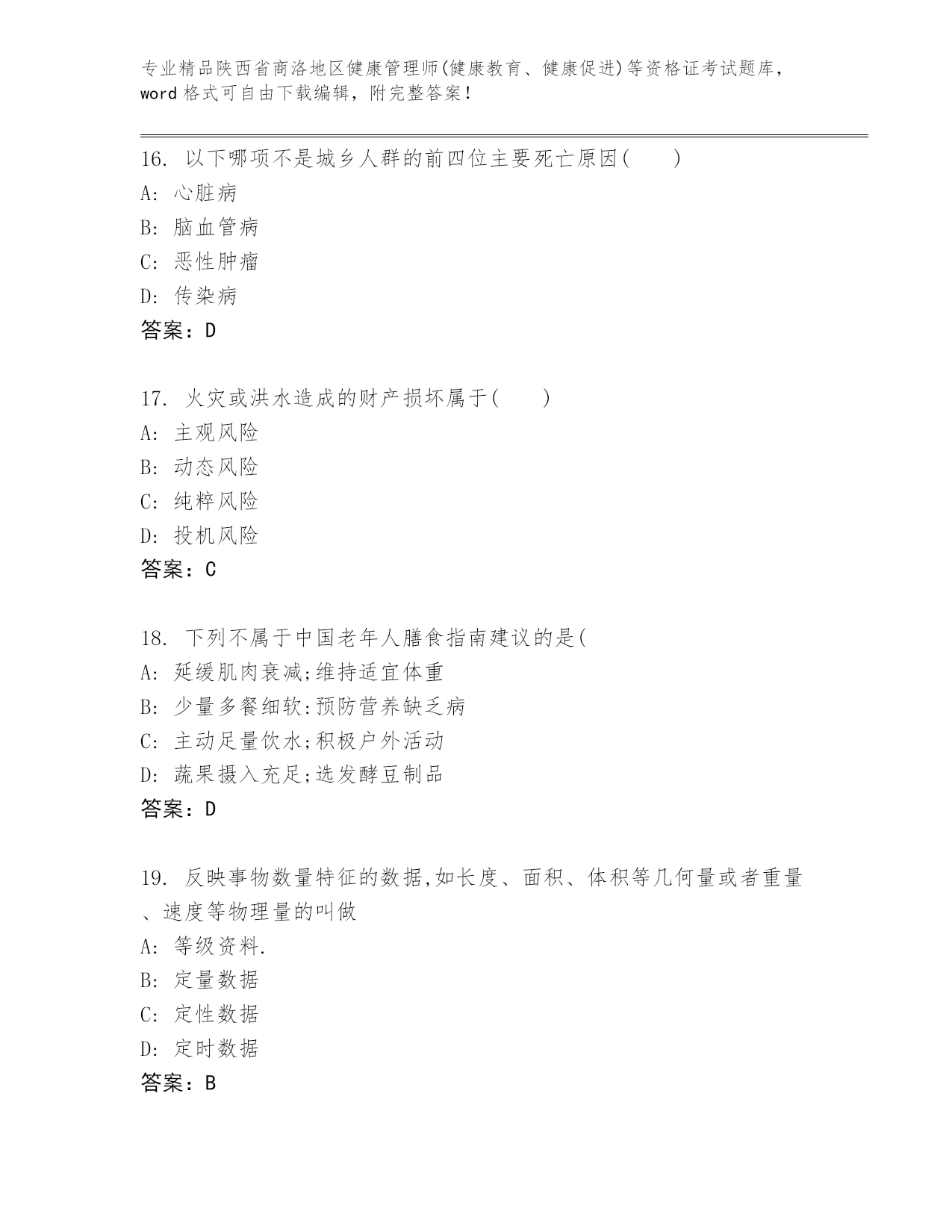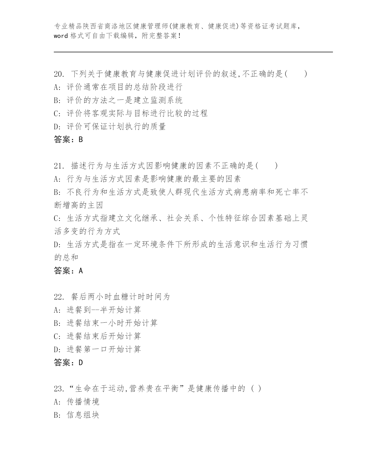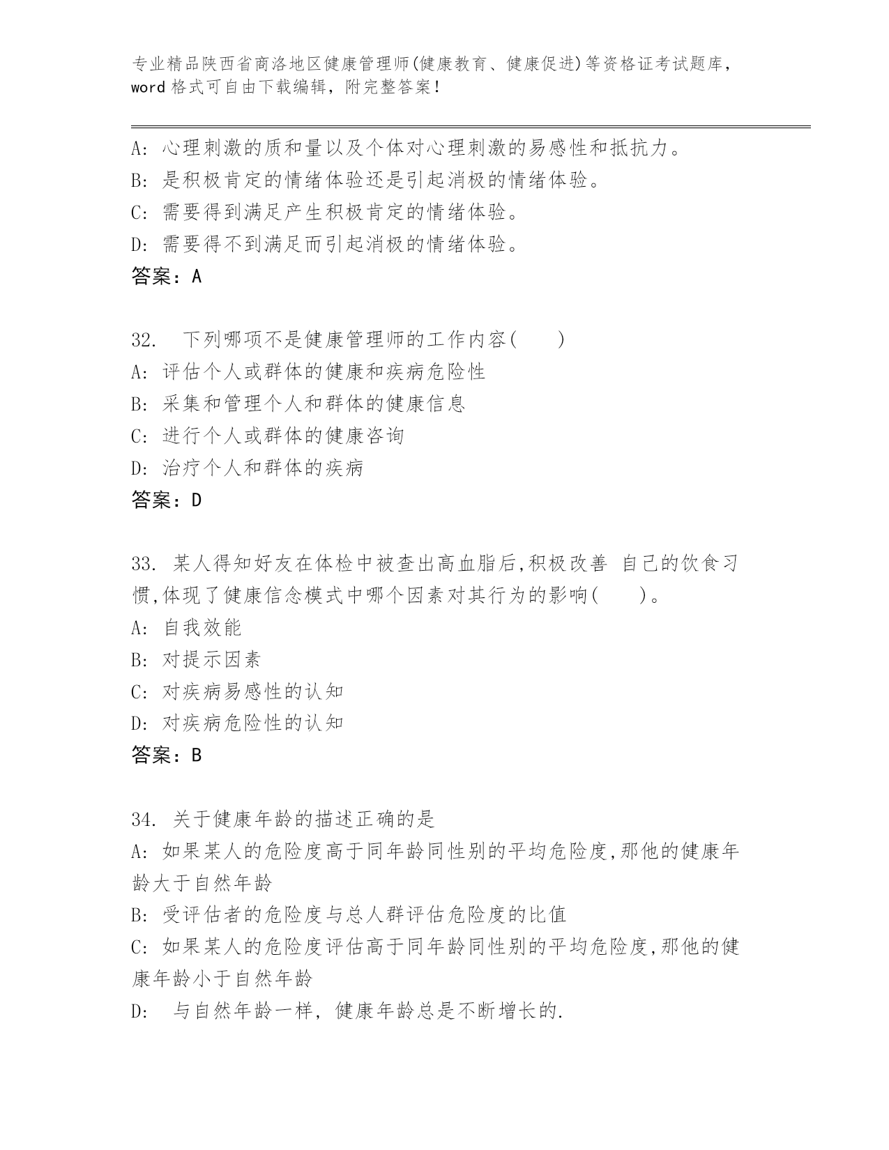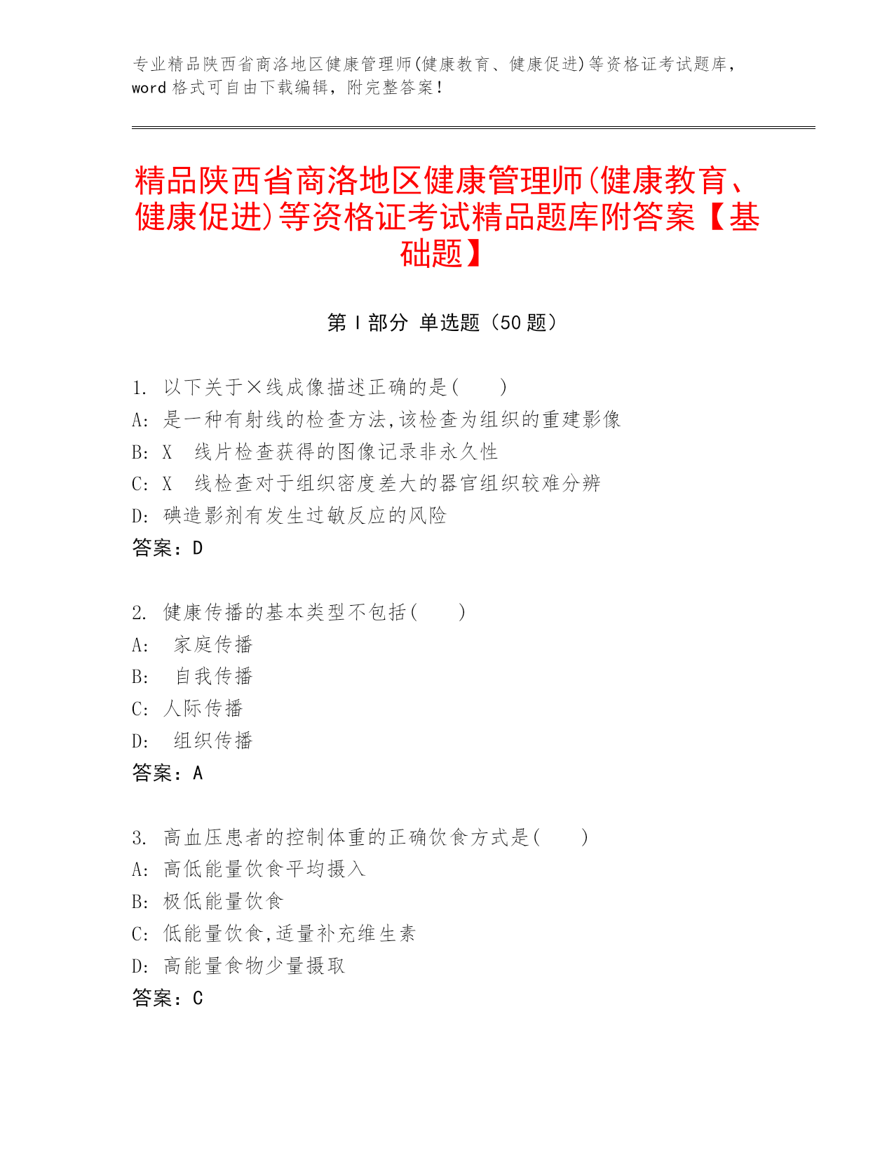 精品陕西省商洛地区健康管理师(健康教育、健康促进)等资格证考试精品题库附答案【基础题】