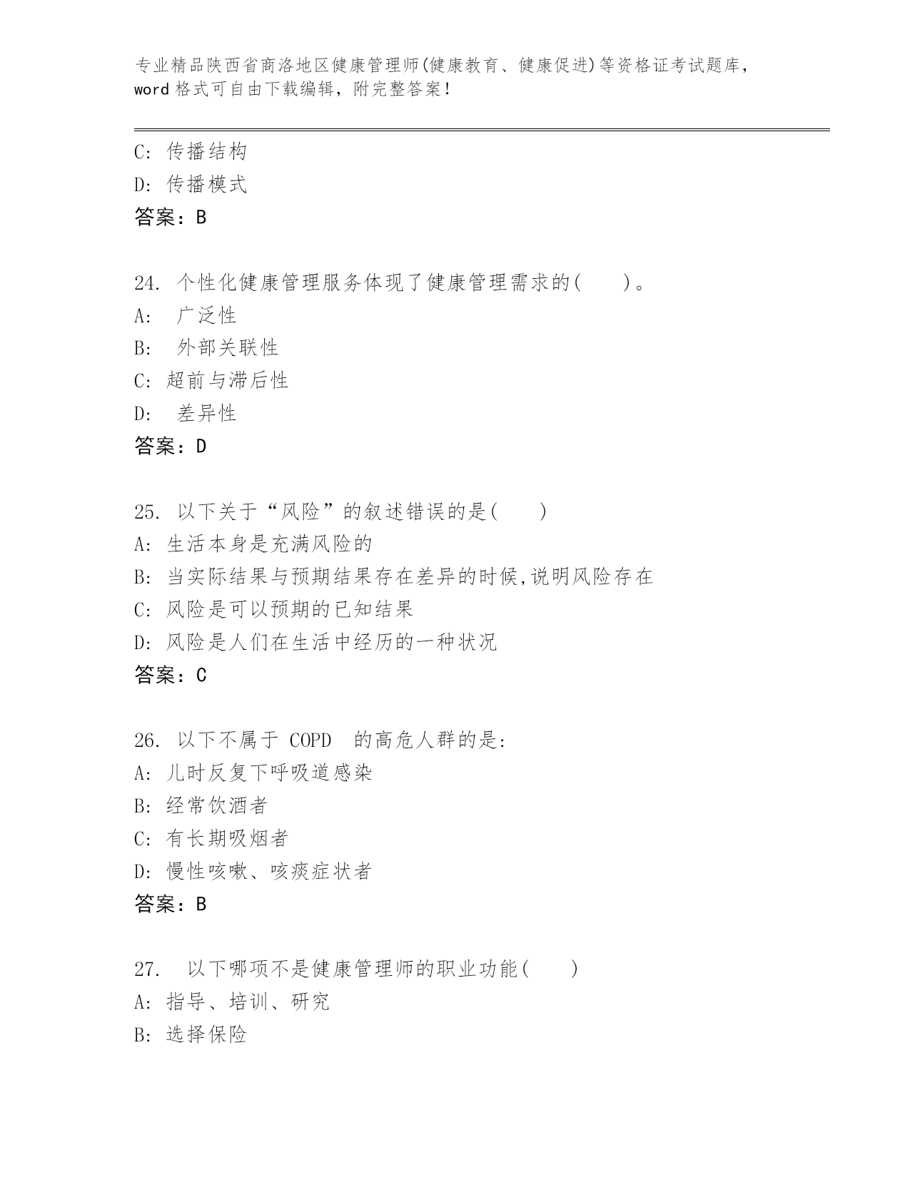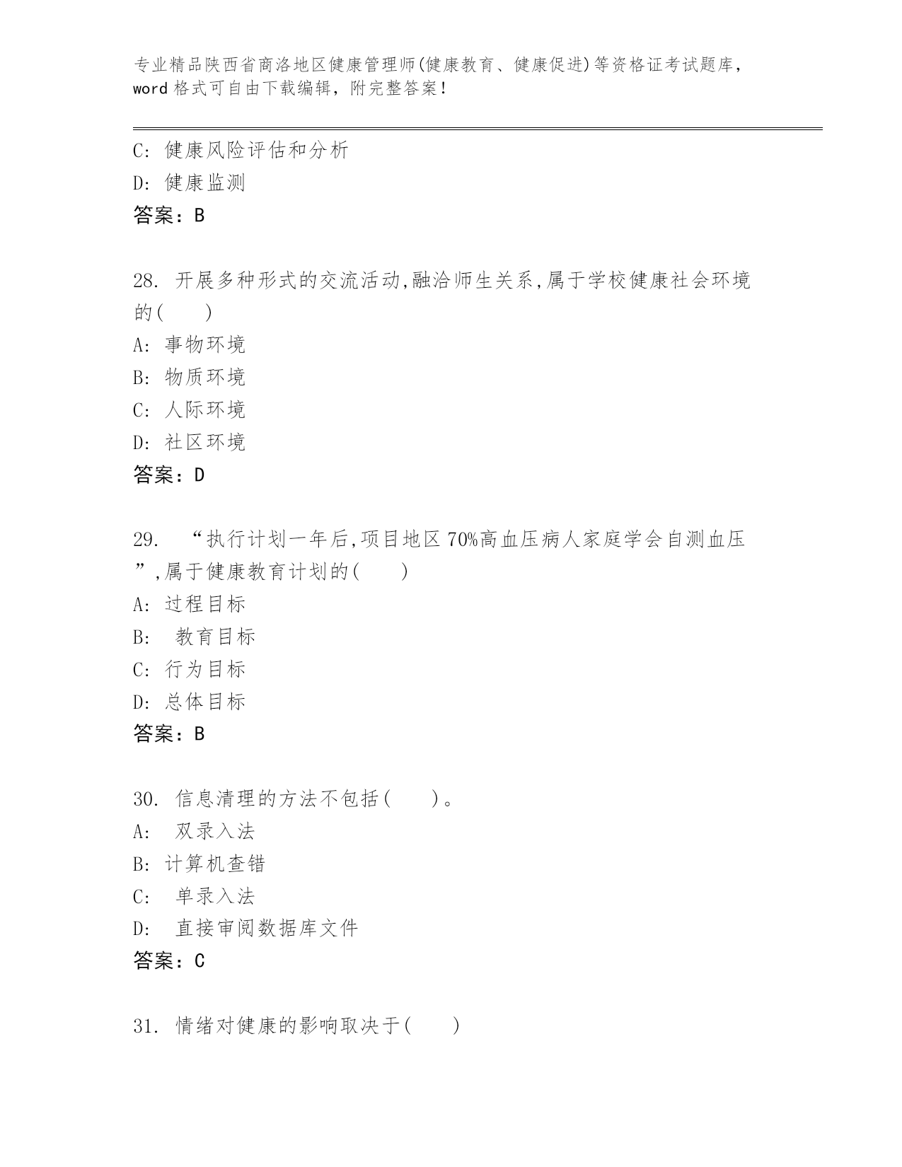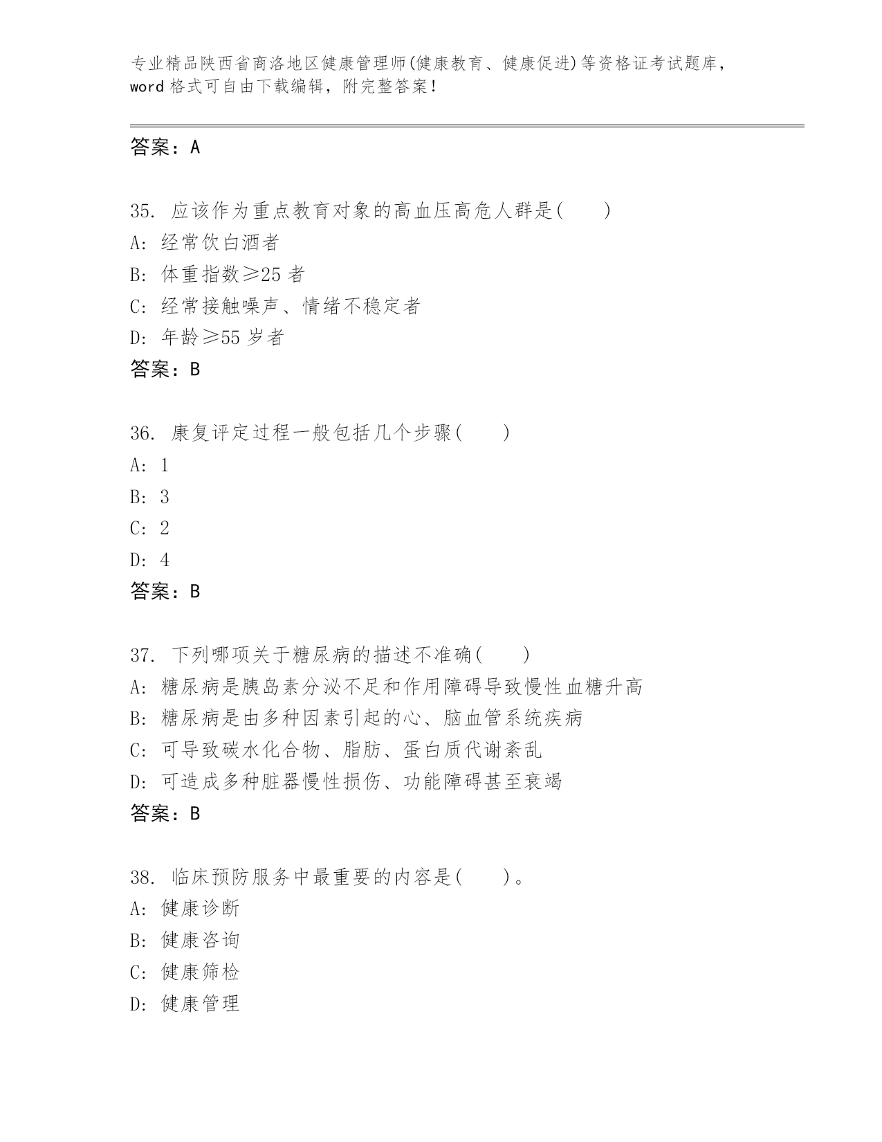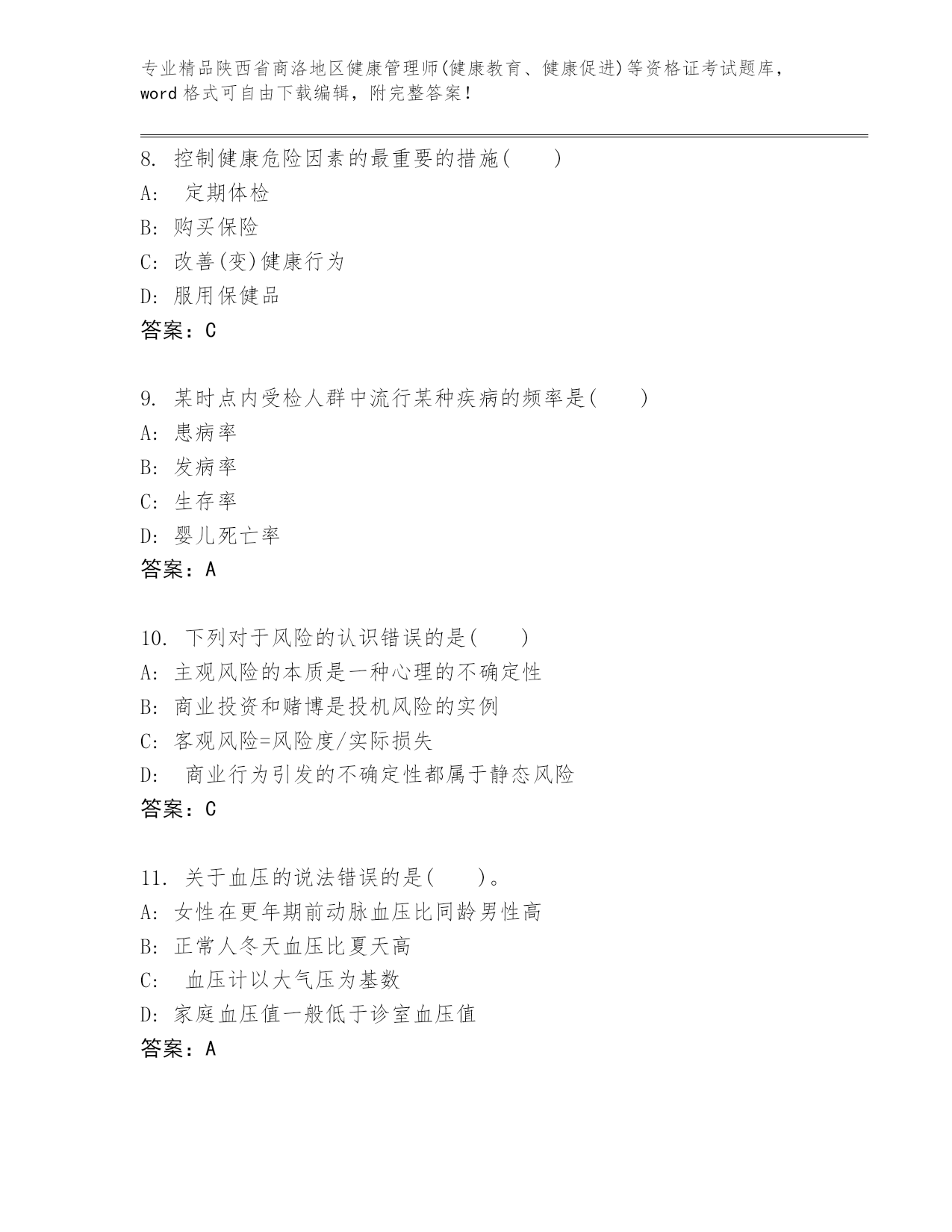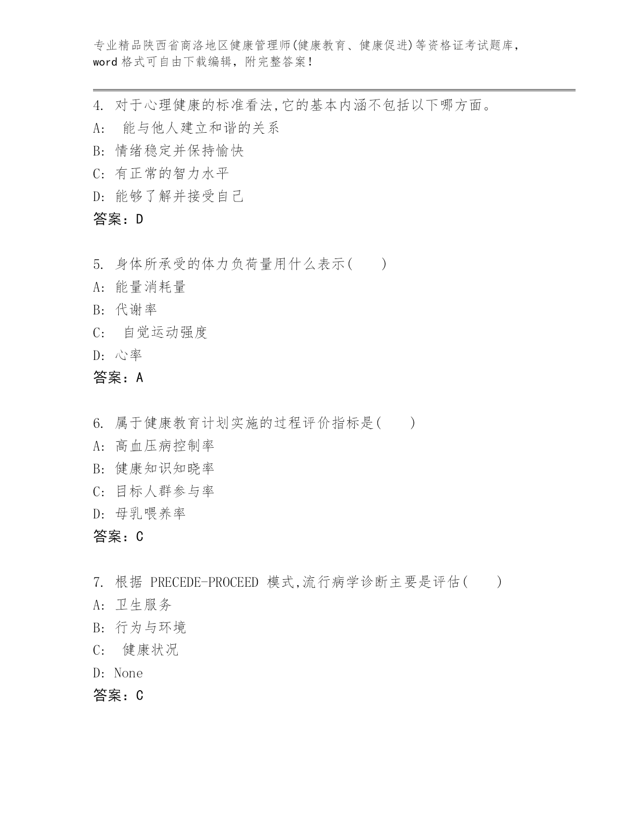 精品陕西省商洛地区健康管理师(健康教育、健康促进)等资格证考试精品题库附答案【基础题】