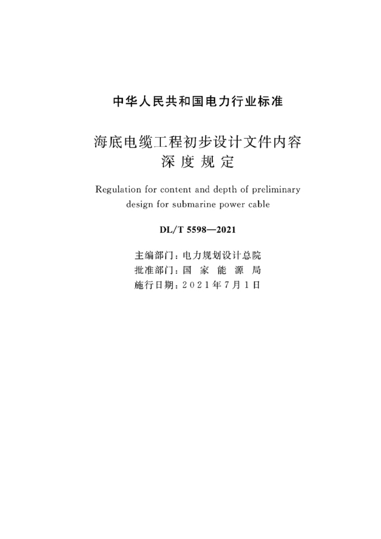 DLT5598-2021海底电缆工程初步设计文件内容深度规定.docx