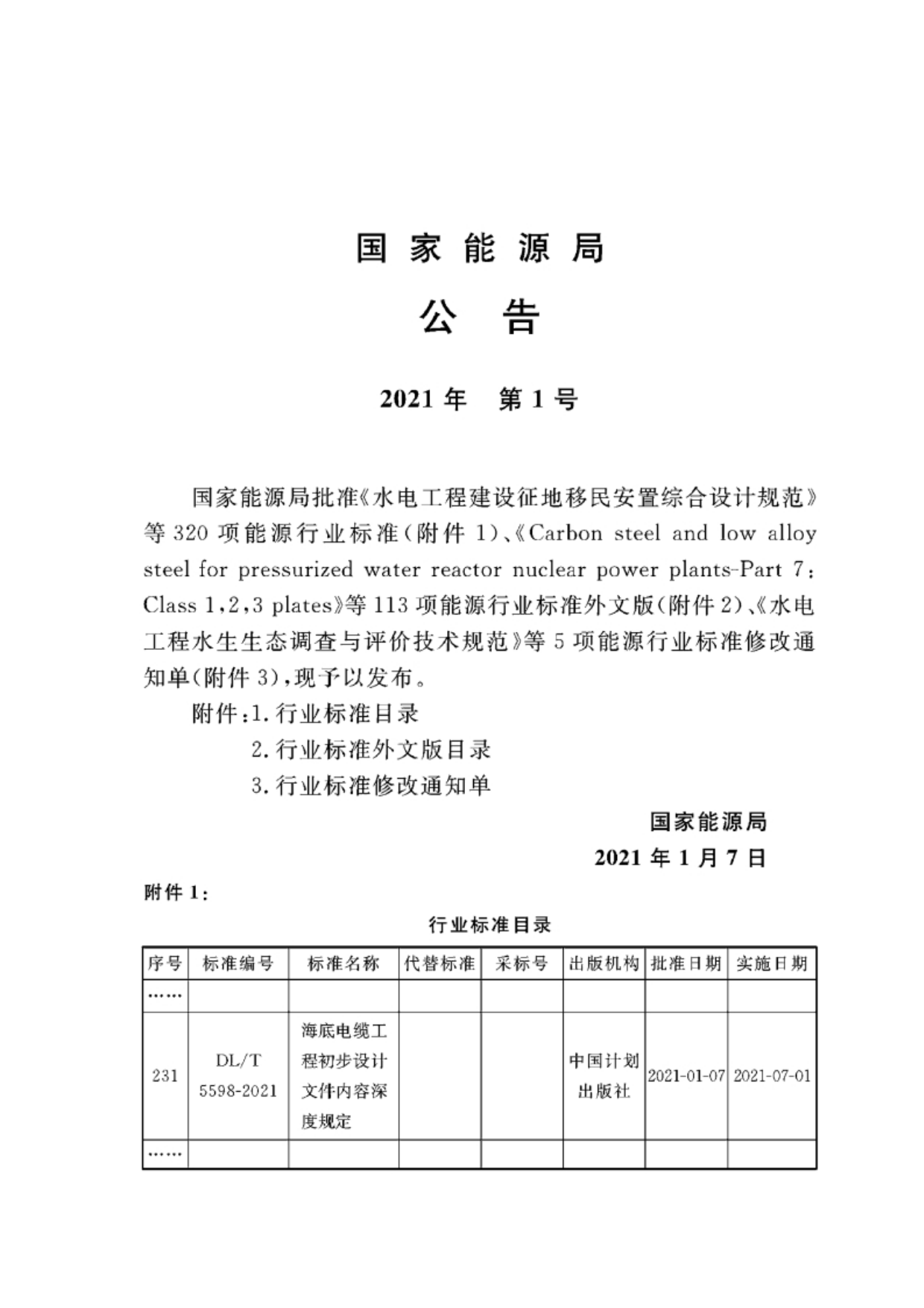 DLT 5598-2021 海底电缆工程初步设计文件内容深度规定