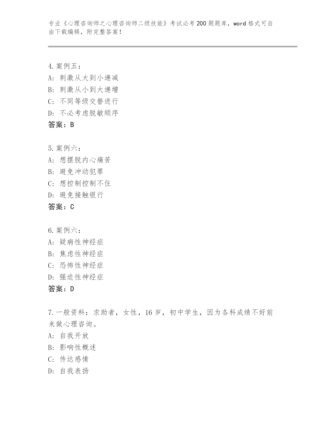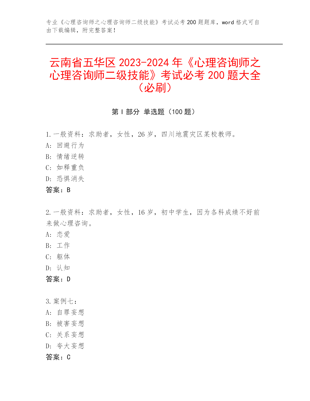 云南省五华区2023-2024年《心理咨询师之心理咨询师二级技能》考试必考200题大全(必刷)