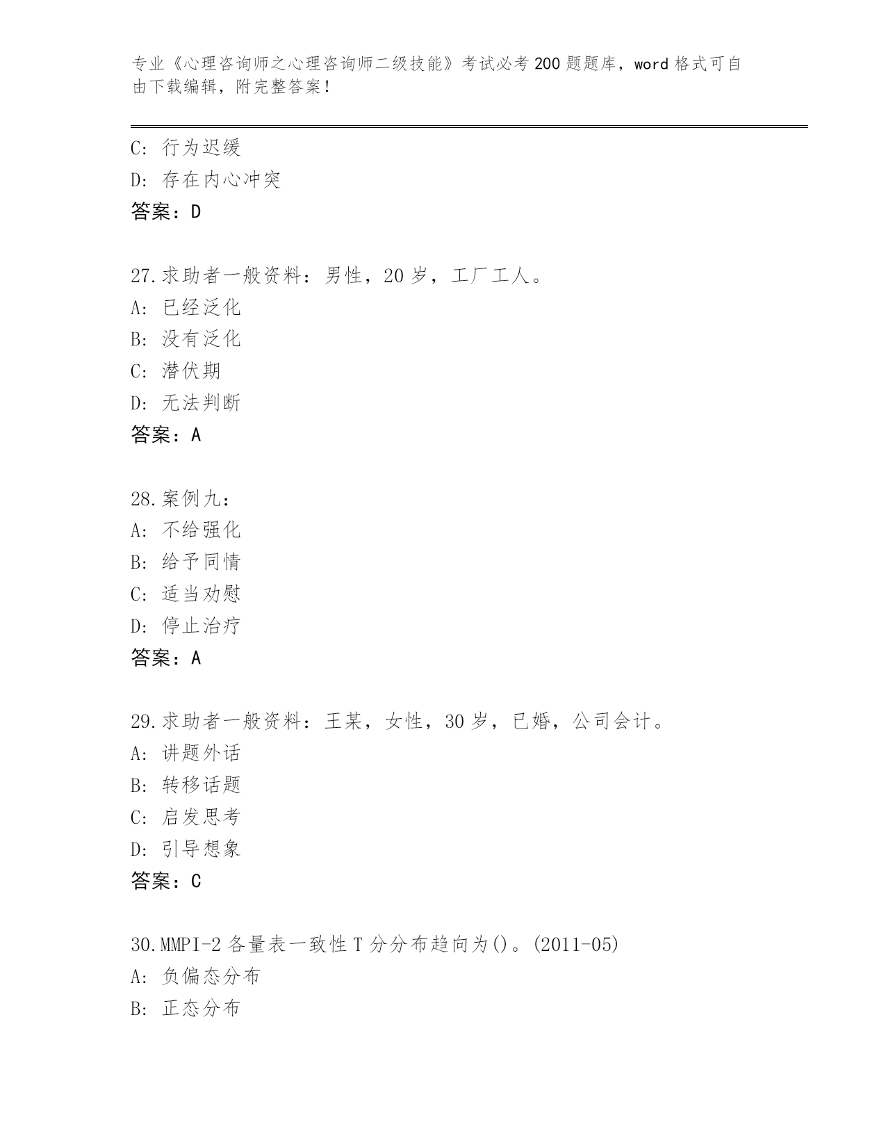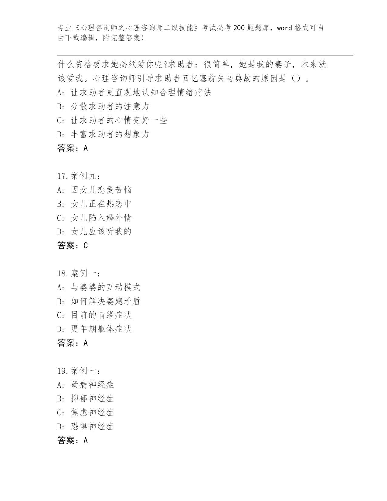 云南省历年《心理咨询师之心理咨询师二级技能》考试必刷200题大全答案下载