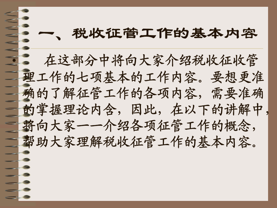 有机合成设计合成设计要求合成步骤设计增链反应消除不必要的基团利用保护基例:4-甲基戊酸的合成税收征收管理工作的基本内容与基本规定冯鸣一、税收征管工作的基本内容税收征收管理工作的七项基本的工作内容(一)税收征收管理工作的内容(一)税收征收管理工作的内容(一)税收征收管理工作的内容(一)税收征收管理工作的内容(二)税务登记的概念与内容(二)税务登记的概念与内容(二)税务登记的概念与内容(二)税务登记的概念与内容(二)税务登记的概念与内容(二)税务登记的概念与内容(二)税务登记的概念与内容(二)税务登记的概念与内容(二)税务登记的概念与内容(二)税务登记的概念与内容(二)税务登记的概念与内容(三)帐薄、凭证管理的概念与内容(三)帐薄、凭证管理的概念与内容(三)帐薄、凭证管理的概念与内容(三)帐薄、凭证管理的概念与内容(三)帐薄、凭证管理的概念与内容(三)帐薄、凭证管理的概念与内容(三)帐薄、凭证管理的概念与内容(三)帐薄、凭证管理的概念与内容(四)纳税申报制度的概念与内容(四)纳税申报制度的概念与内容(四)纳税申报制度的概念与内容(四)纳税申报制度的概念与内容(四)纳税申报制度的概念与内容(四)纳税申报制度的概念与内容(四)纳税申报制度的概念与内容(四)纳税申报制度的概念与内容(四)纳税申报制度的概念与内容(四)纳税申报制度的概念与内容(四)纳税申报制度的概念与内容(五)税款征收制度概念与内容(五)税款征收制度概念与内容(五)税款征收制度概念与内容(五)税款征收制度概念与内容(五)税款征收制度概念与内容(五)税款征收制度概念与内容(五)税款征收制度概念与内容(五)税款征收制度概念与内容(五)税款征收制度概念与内容(五)税款征收制度概念与内容(五)税款征收制度概念与内容(五)税款征收制度概念与内容(六)税务检查的基本概念与内容(六)税务检查的基本概念与内容(六)税务检查的基本概念与内容(七)法律责任的概念与内容(七)法律责任的概念与内容(七)法律责任的概念与内容(七)法律责任的概念与内容(七)法律责任的概念与内容(一)《征管法》及其《细则》(一)《征管法》及其《细则》(一)《征管法》及其《细则》(一)《征管法》及其《细则》2.1由于税收征管的业务量大、复杂程度高、涉及面广,只靠《征管法》《细则》不能满足税收征管的需要,还必须有一系列与之配套的制度、办法。《征管法》《细则》明确规定了由国家税务局与有关部门联合制定21个制度办法,为制定必要的规章提供了法律依据,同时也起到了规范税收规章立法工作的作用。二、配套的制度办法二、配套的制度办法二、配套的制度办法二、配套的制度办法二、配套的制度办法二、配套的制度办法二、配套的制度办法二、配套的制度办法前言我们前面已经讲了,税收征收管理过程它是一个繁杂的系统工程。我们说它繁杂而系统是因为税收征收管理过程中的6大环节(税务登记、账薄凭证管理、纳税申报、税款征收、纳税检查、违章处罚),其核心是税款征收的过程。依法征税,依率计征,这里不仅有法律上程序上的综合要求,还有税种会计制定相关政策的约束。在这个环节里,税收实体法所要贯彻的各税制要素,如纳税人、纳税对象、计税依据、税目、税率、减免税、应纳税额的计算、纳税环节的确定、纳税义务发生的时间、纳税地点、纳税期限和税款缴纳方式等都在这个环节得到了贯彻,是其它征管理环节所不能替代的。此外,税款征收在税收征管的各环节中都能体现。税款征收是以纳税人发生纳税义务为前提的,纳税人的纳税义务有可能发生在税收征管的各环节。如在税务登记环节,有可能在未办理或在办理税务登记的过程中,发生纳税义务;在账簿凭证管理等各个环节都可能发生纳税义务。在纳税检查环节,很可能发现纳税人应履行而未履行的纳税义务,这些都涉及到税款征收。因此,税款征收是税收征管的目的;是税收征管的起点,也是归宿;是各种制度的载体。由于征管工作的繁杂和系统,使得我们在开办12366之初来设定纳税人要咨询、解决纳税事宜的问题就无从把握,因为不同时期、不同时间纳税人咨询的内容也会有不同和侧重。比如,一个新的税收政策的调整或出台、一项新的制度的实施、一个办法的贯彻、企业所得税汇算清缴等,这些变化,都能引起社会的广泛关注。所以在这里设定的基本问题,仅是根据现行的基本法律、法规、制度办法做个初步的假设,实际工作中的问题将会是错综复杂的。(一)企业已办理了工商营业执照,应该到何地、持什么手续办理税务登记?(征管法15条;细则12、13条)(一)企业已办理了工商营业执照,应该到何地、持什么手续办理税务登记?(征管法15条;细则12、13条)(二)如何办理变更税务登记?(征管法16条、细则14条)(二)如何办理变更税务登记?(征管法16条、细则14条)(三)如何办理注销税务登记?(征管法16条、细则15、16条)(三)如何办理