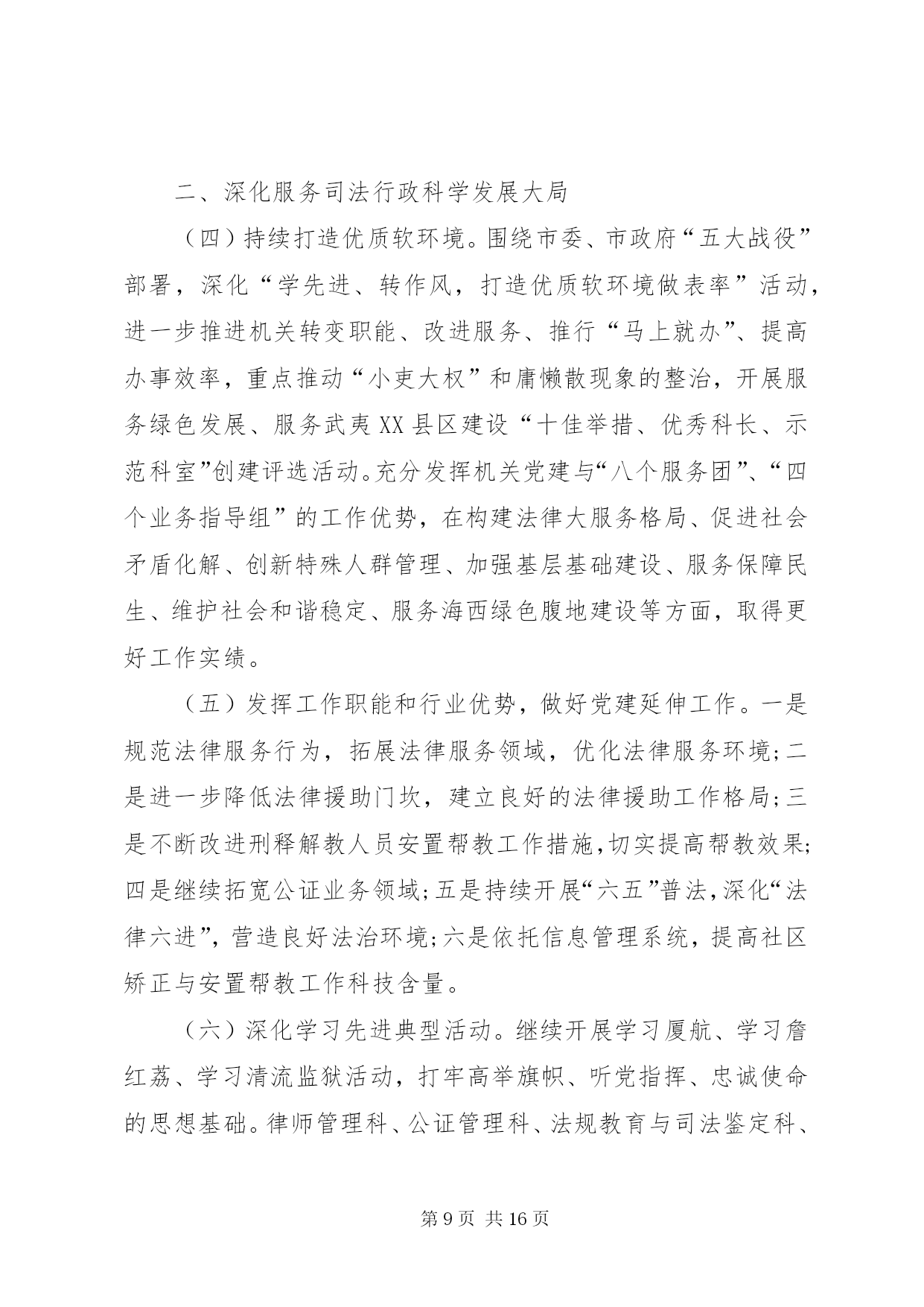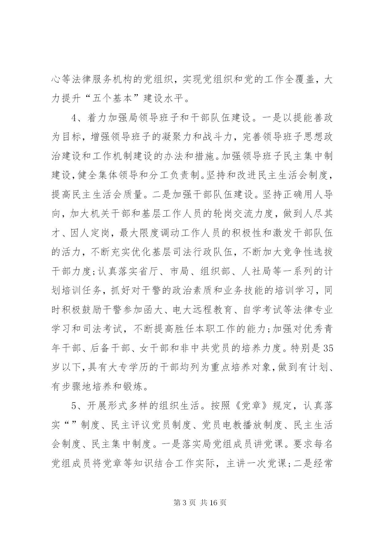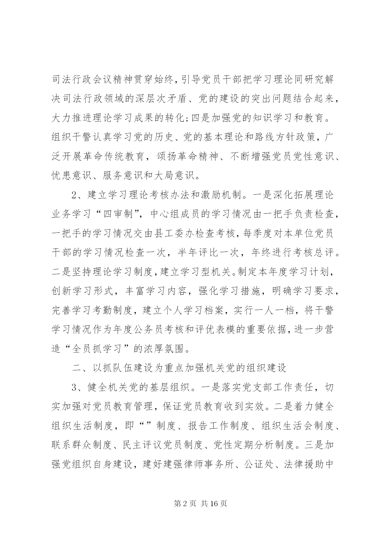第PAGE\*Arabic\*MERGEFORMAT16页共NUMPAGES\*MERGEFORMAT16页司法局党建个人工作计划,是全面贯彻落实党的xx大精神的开局之年。今年我局党建工作要以“学习贯彻xx大、争创发展新业绩”为主线,以服务“五个孝昌”建设为主题,牢牢把握服务中心,建设队伍两大任务,求真务实、开拓创新,发挥优势,积极作为,全面推进党的思想、组织、作风、制度建设,以优异成绩向建县二十周年献礼。一、以学习xx大会议精神为重点提高党员干部理论素养1、认真学习、深刻领会、全面贯彻党的xx大会议精神。一是迅速兴起学习宣传贯彻党的xx大的热潮,以作为机关党的建设的重大政治任务抓紧落实。通过组织专题辅导,参加党的xx大报告和党章知识竞赛,举办专题学习班,引导党员干部紧密结合实际开展学习研讨,把思想和行动统一到十八的精神上来,把智慧和力量凝聚到实现十八确定的宏伟目标和各项任务上来。并结合我局的具体工作,深入研究贯彻落实十八精神的思路和重点,努力开创各项工作的新局面,不断提高党支部建设的整体水平;二是以理想信念教育为重点,继续深入开展政法干警核心价值观学习教育活动。通过政法干警核心价值观的教育实践,使广大司法行政干警始终保持“忠诚”的政治本色,保持“为民”的宗旨理念,保持“公正”的价值追求,保持“廉洁”的基本操守;三是坚持把学习贯彻中央、省、市政法会议和全县三级干部大会、司法行政会议精神贯穿始终,引导党员干部把学习理论同研究解决司法行政领域的深层次矛盾、党的建设的突出问题结合起来,大力推进理论学习成果的转化;四是加强党的知识学习和教育。组织干警认真学习党的历史、党的基本理论和路线方针政策,广泛开展革命传统教育,颂扬革命精神、不断增强党员党性意识、忧患意识、服务意识和大局意识。2、建立学习理论考核办法和激励机制。一是深化拓展理论业务学习“四审制”,中心组成员的学习情况由一把手负责检查,一把手的学习情况交由县工委办检查考核,每季度对本单位党员干部的学习情况检查一次,半年评比一次,年终进行考核总评。二是坚持理论学习制度,建立学习型机关。制定本年度学习计划,创新学习形式,丰富学习内容,强化学习措施,明确学习要求,完善学习考勤制度,建立个人学习档案,实行一人一档,将干警学习情况作为年度公务员考核和评优表模的重要依据,进一步营造“全员抓学习”的浓厚氛围。二、以抓队伍建设为重点加强机关党的组织建设3、健全机关党的基层组织。一是落实党支部工作责任,切实加强对党员教育管理,保证党员教育收到实效。二是着力健全组织生活制度,即“”制度、报告工作制度、组织生活会制度、联系群众制度、民主评议党员制度、党性定期分析制度。三是加强党组织自身建设,建好建强律师事务所、公证处、法律援助中心等法律服务机构的党组织,实现党组织和党的工作全覆盖,大力提升“五个基本”建设水平。4、着力加强局领导班子和干部队伍建设。一是以提能善政为目标,增强领导班子的凝聚力和战斗力,完善领导班子思想政治建设和工作机制建设的办法和措施。加强领导班子民主集中制建设,健全集体领导和分工负责制。坚持和改进民主生活会制度,提高民主生活会质量。二是加强干部队伍建设。坚持正确用人导向,加大机关干部和基层工作人员的轮岗交流力度,做到人尽其才、因人定岗,最大限度调动工作人员的积极性和激发干部队伍的活力,不断充实优化基层司法行政队伍,不断加大竞争性选拔干部力度;认真落实省厅、市局、组织部、人社局等一系列的计划培训任务,抓好对干警的政治素质和业务技能的培训学习,同时积极鼓励干警参加函大、电大远程教育、自学考试等法律专业学习和司法考试,不断提高胜任本职工作的能力;加强对优秀青年干部、后备干部、女干部和非中共党员的培养力度。特别是35岁以下,具有大专学历的干部均列为重点培养对象,做到有计划、有步骤地培养和锻炼。5、开展形式多样的组织生活。按照《党章》规定,认真落实“”制度、民主评议党员制度、党员电教播放制度、民主生活会制度、民主集中制度。一是落实局党组成员讲党课。要求每名党组成员将党章等知识结合工作实际,主讲一次党课;二是经常性地开展党员电化教育,进行先进典型教育和警示教育;三是充分发挥“党员之家”的阵地作用。把党员活动室建设成为党员学习培训的场所、组织党内生活的场所、开展文体活动的场所;四是组织党员开展好“先进基层党组织”、“优秀共产党员”、“优秀党务工作者”的推荐评选活动,通过树立典型、表彰先进,进一步营造局机关奋发向上的良好工作风气;五是组织党员重温入党誓词、重读红色经典、瞻仰革命旧址、走访革命前辈和召开报告会、座谈会等形式,对干警进行生动深刻的革命传统和理想信念教育;六是开门见山、广纳贤言,开展好民主评议党员和公务员年度测评会,营造团结协作、真诚相处、同谋发展的良好氛围;七是以支