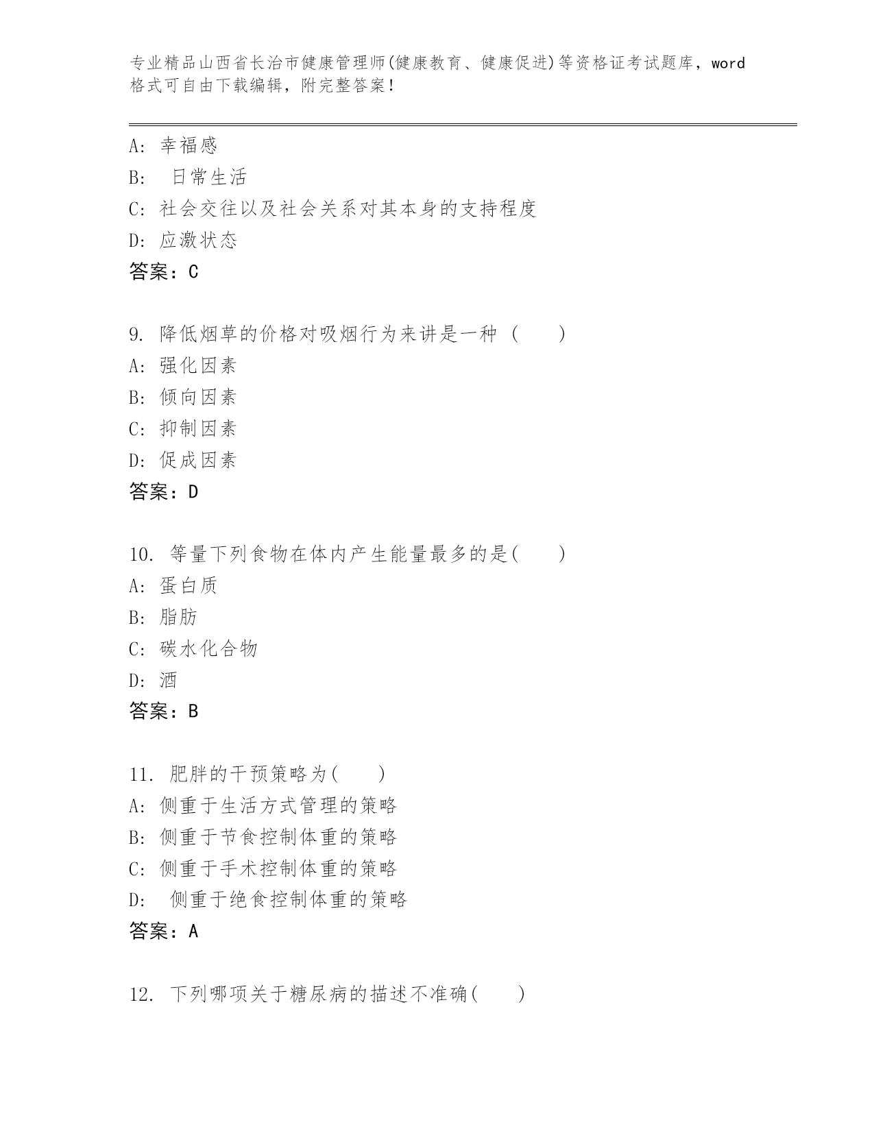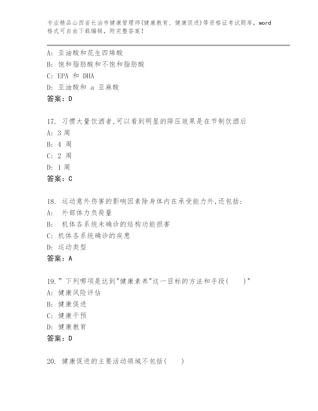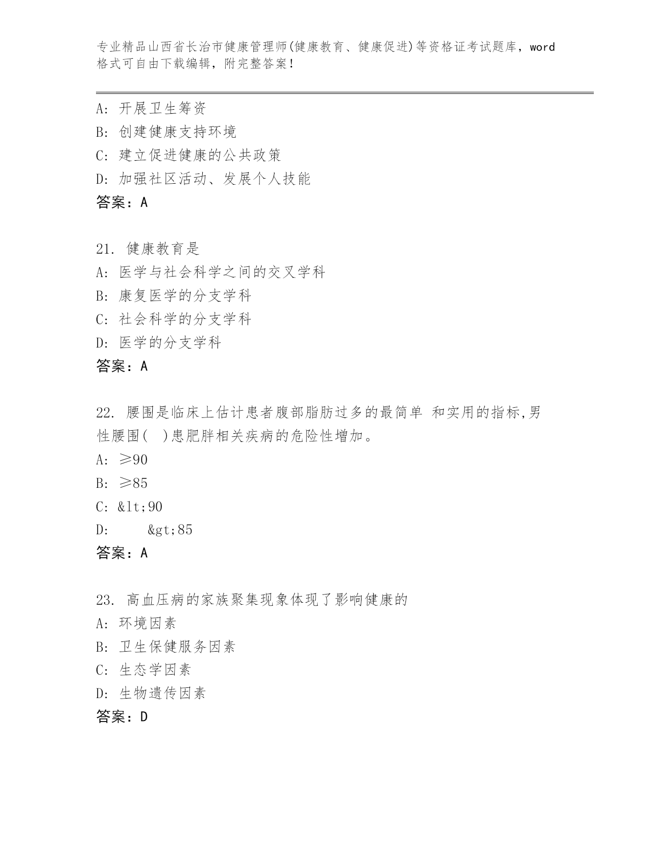 历年山西省长治市健康管理师(健康教育、健康促进)等资格证考试及参考答案(最新).docx