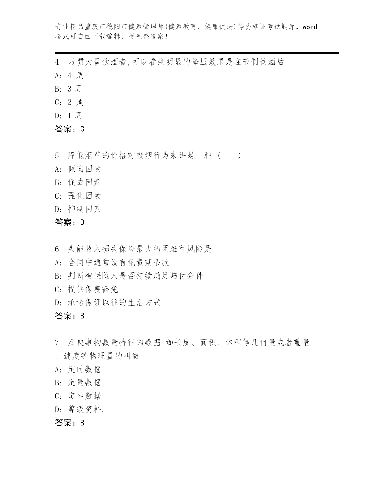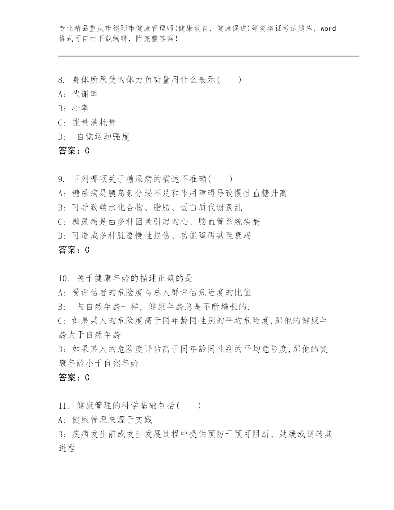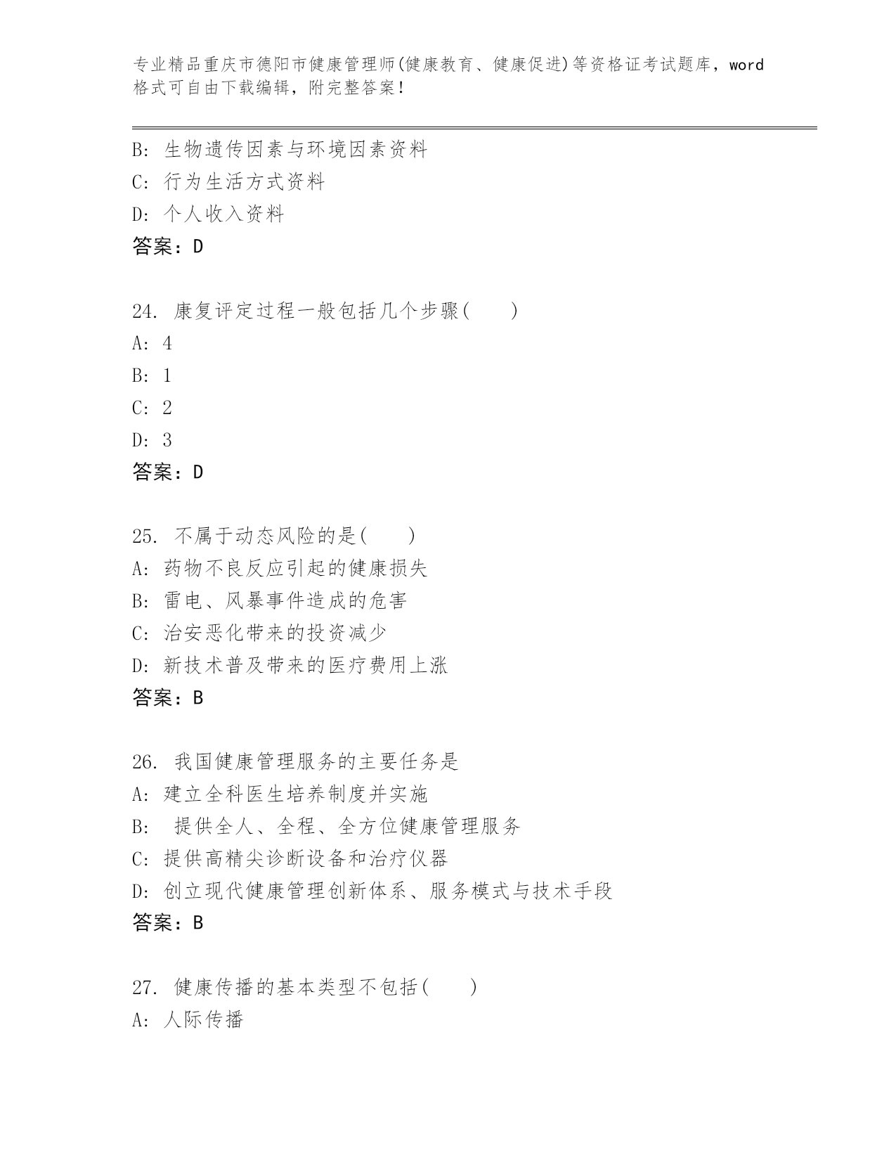历年重庆市德阳市健康管理师(健康教育、健康促进)等资格证考试完整