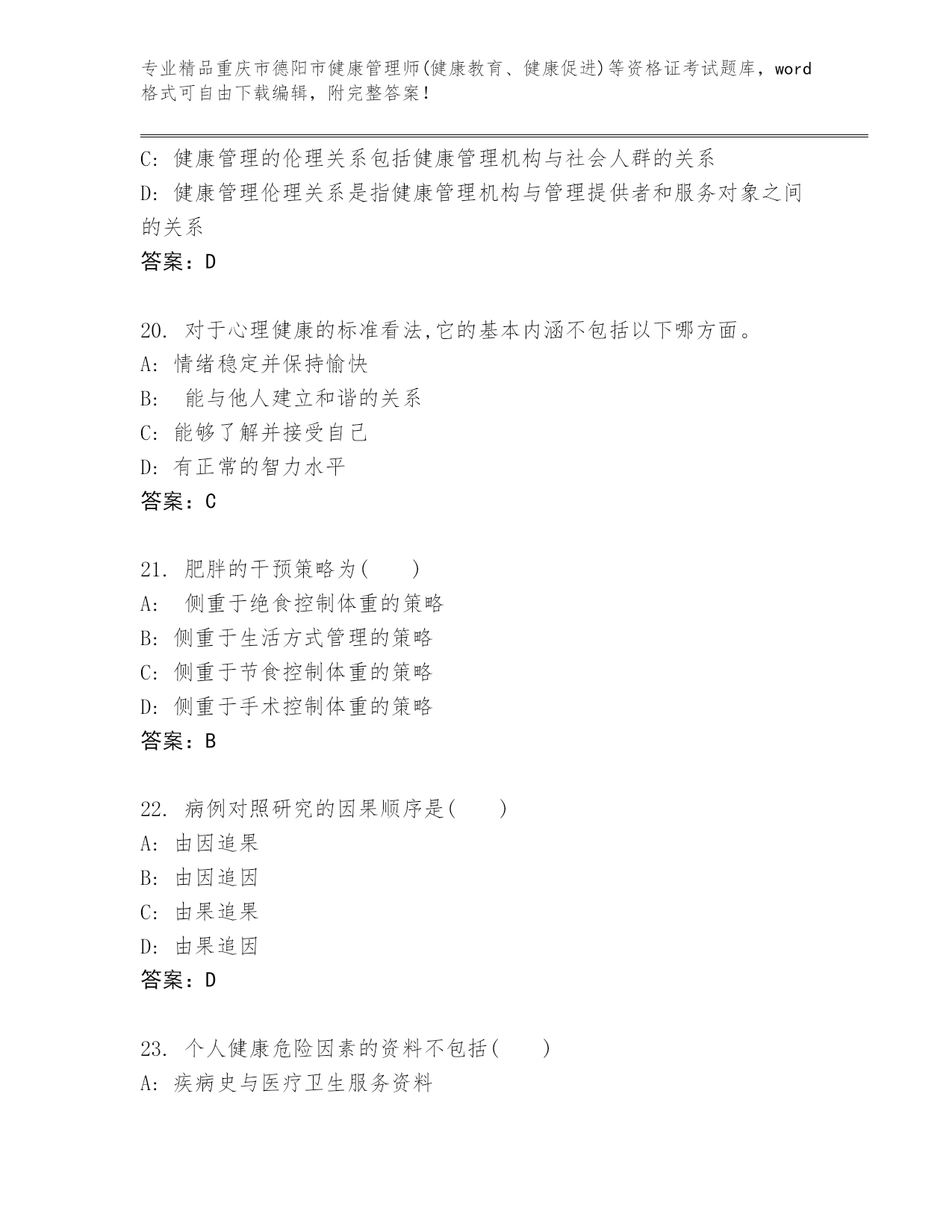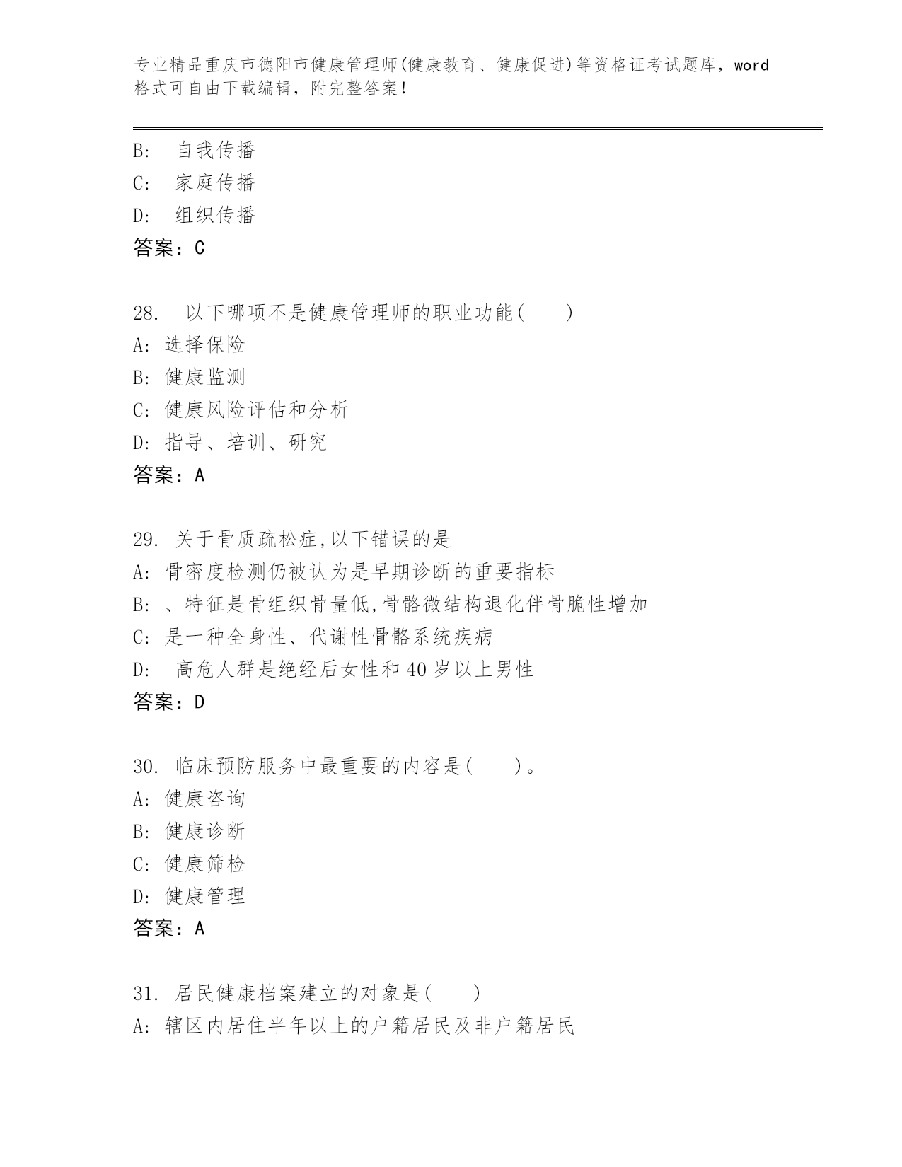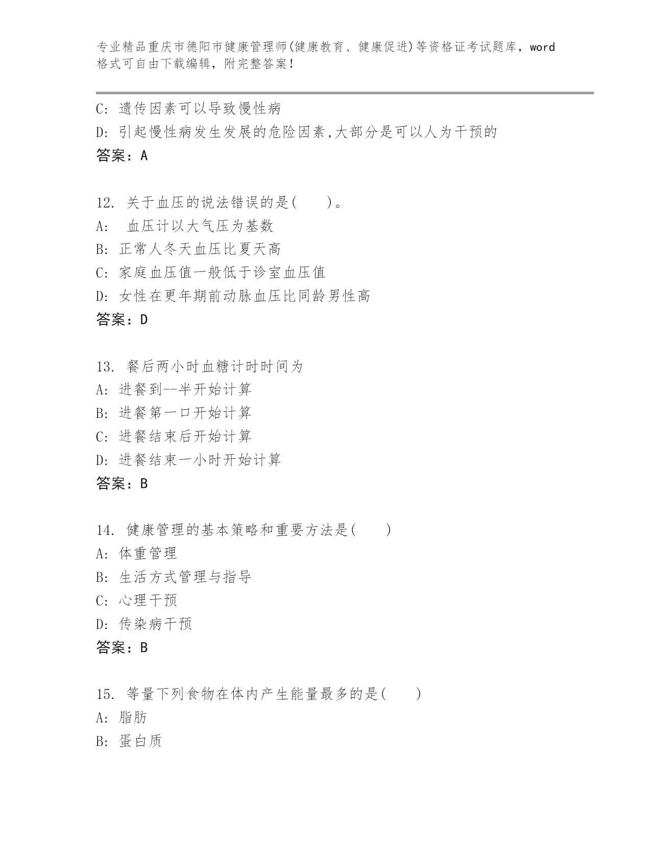 历年重庆市德阳市健康管理师(健康教育、健康促进)等资格证考试完整.docx