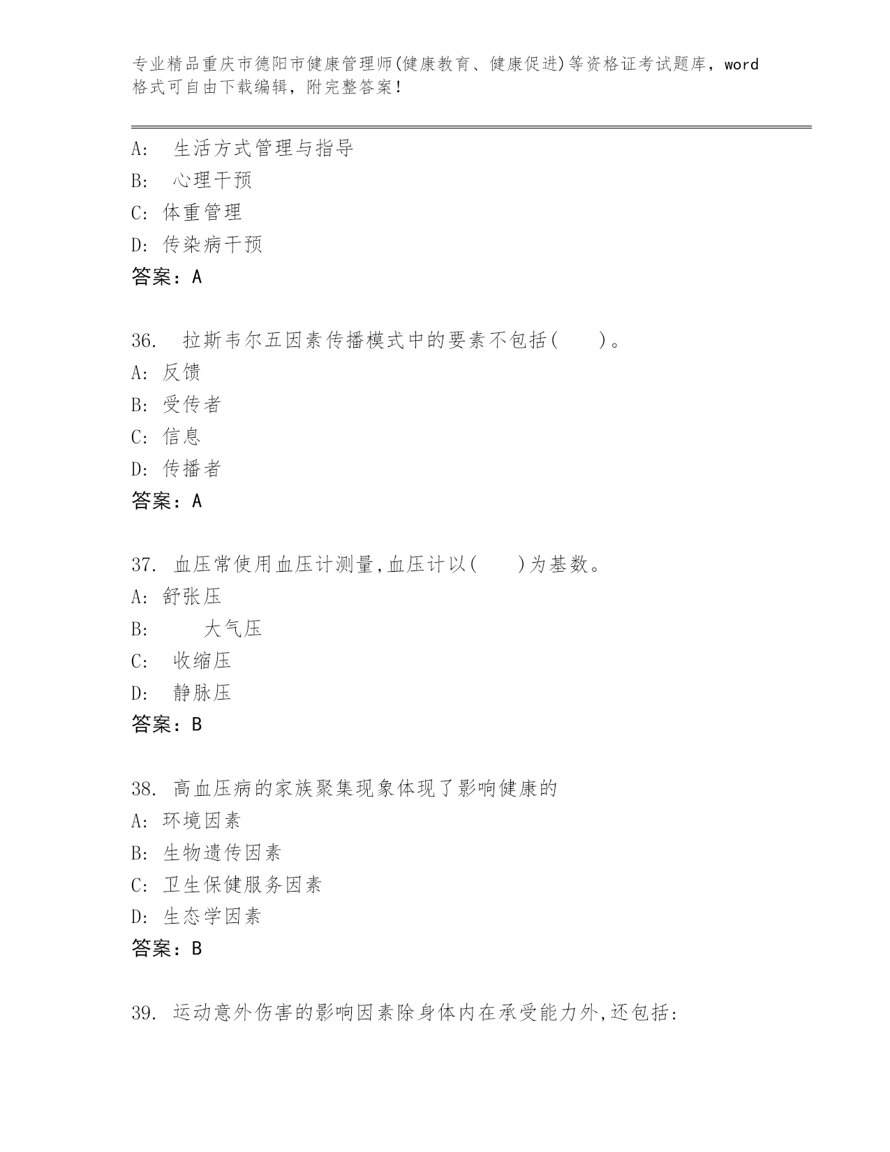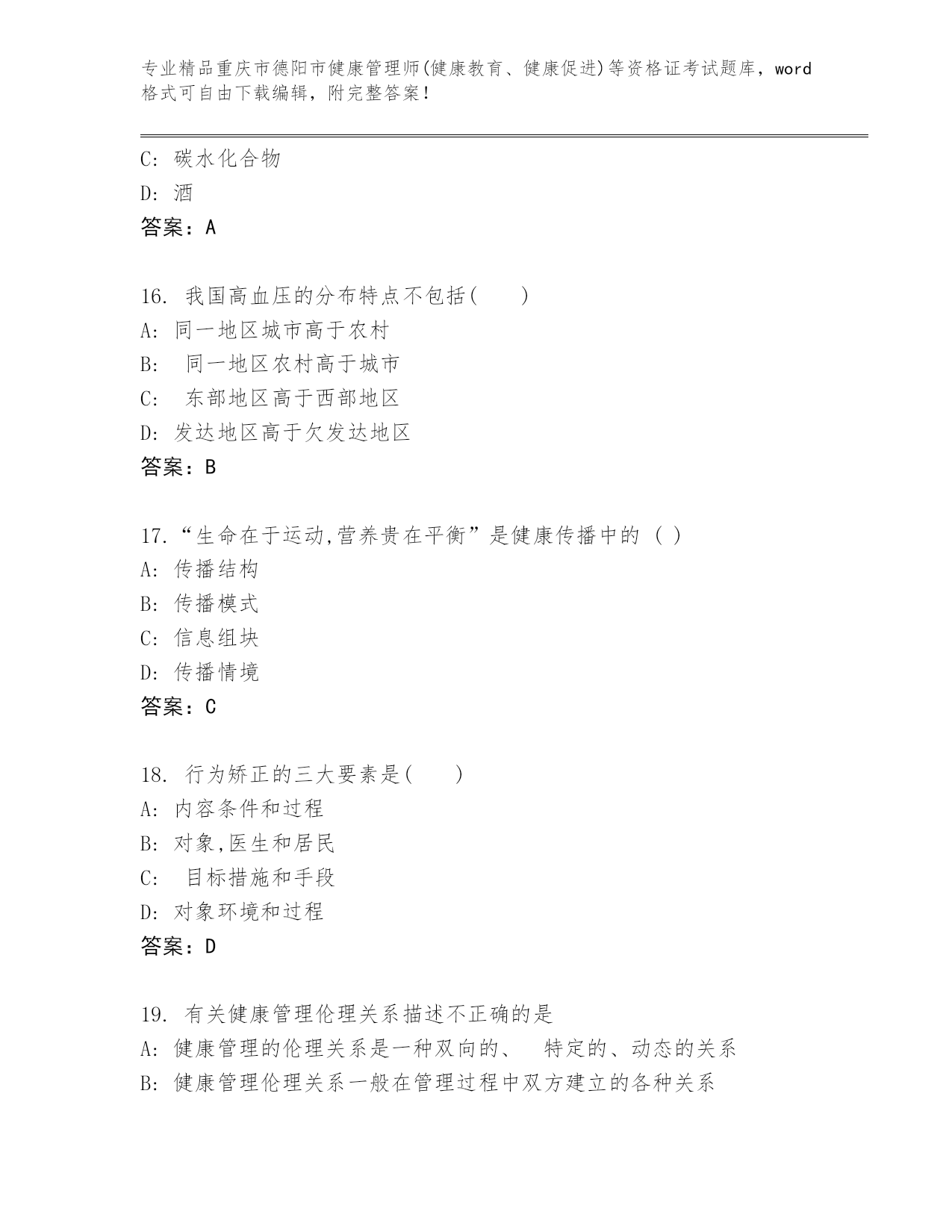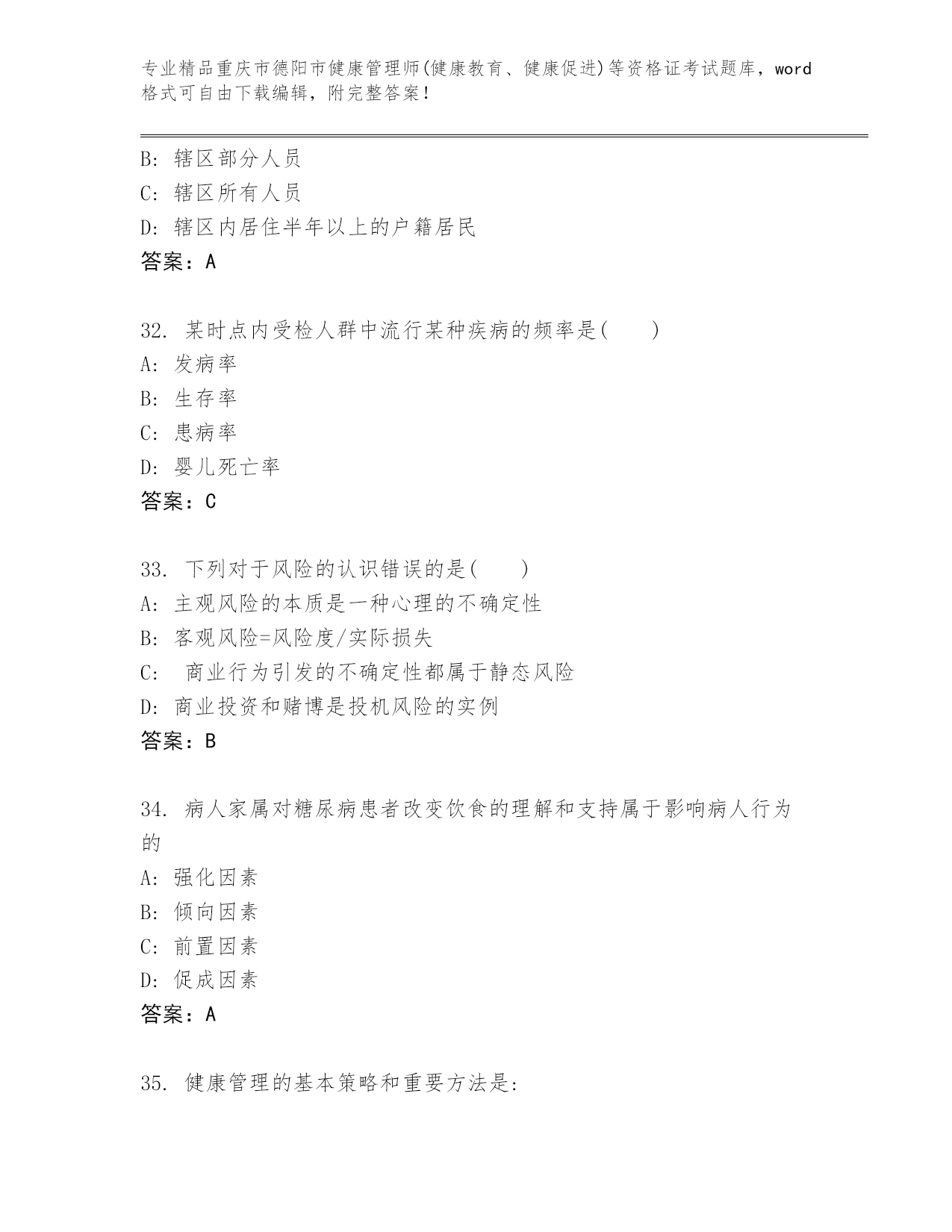 历年重庆市德阳市健康管理师(健康教育、健康促进)等资格证考试完整.docx