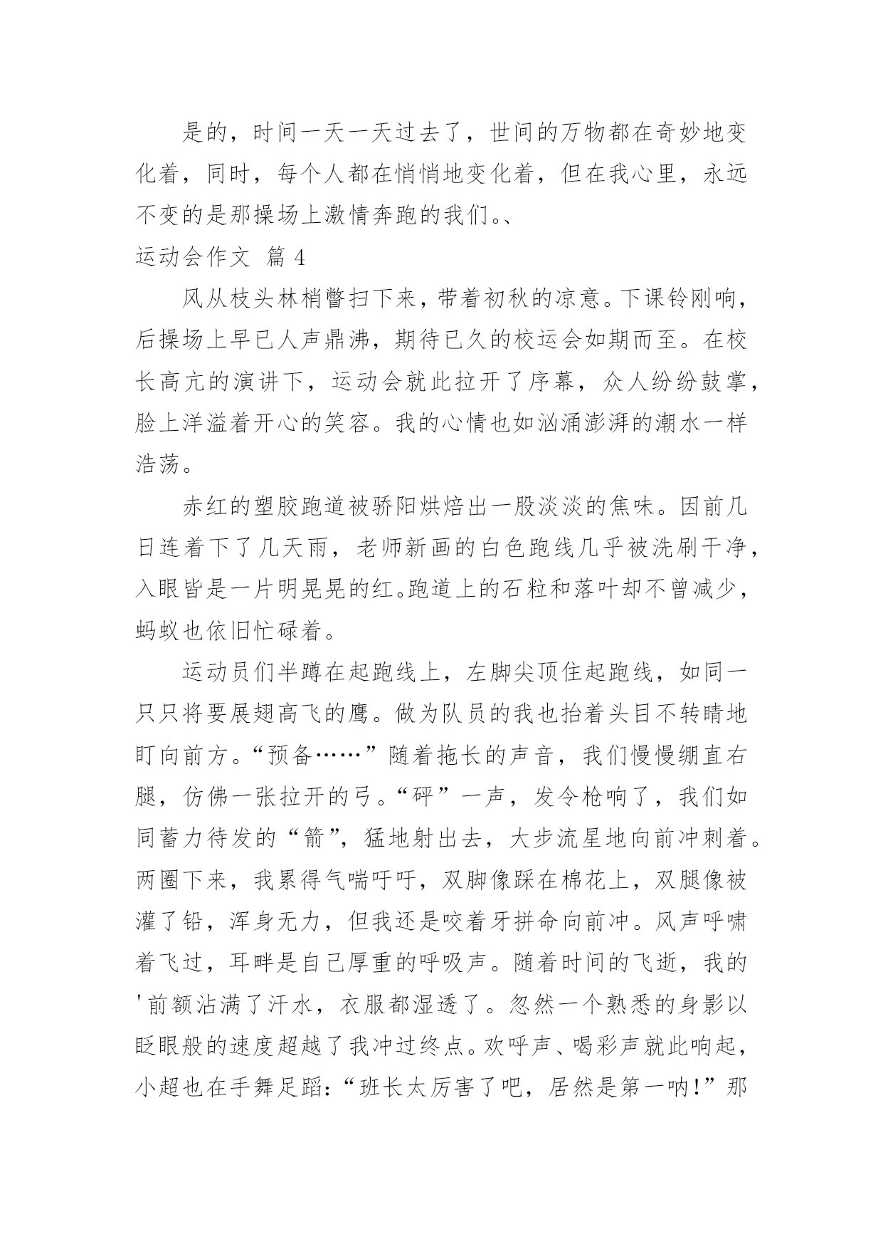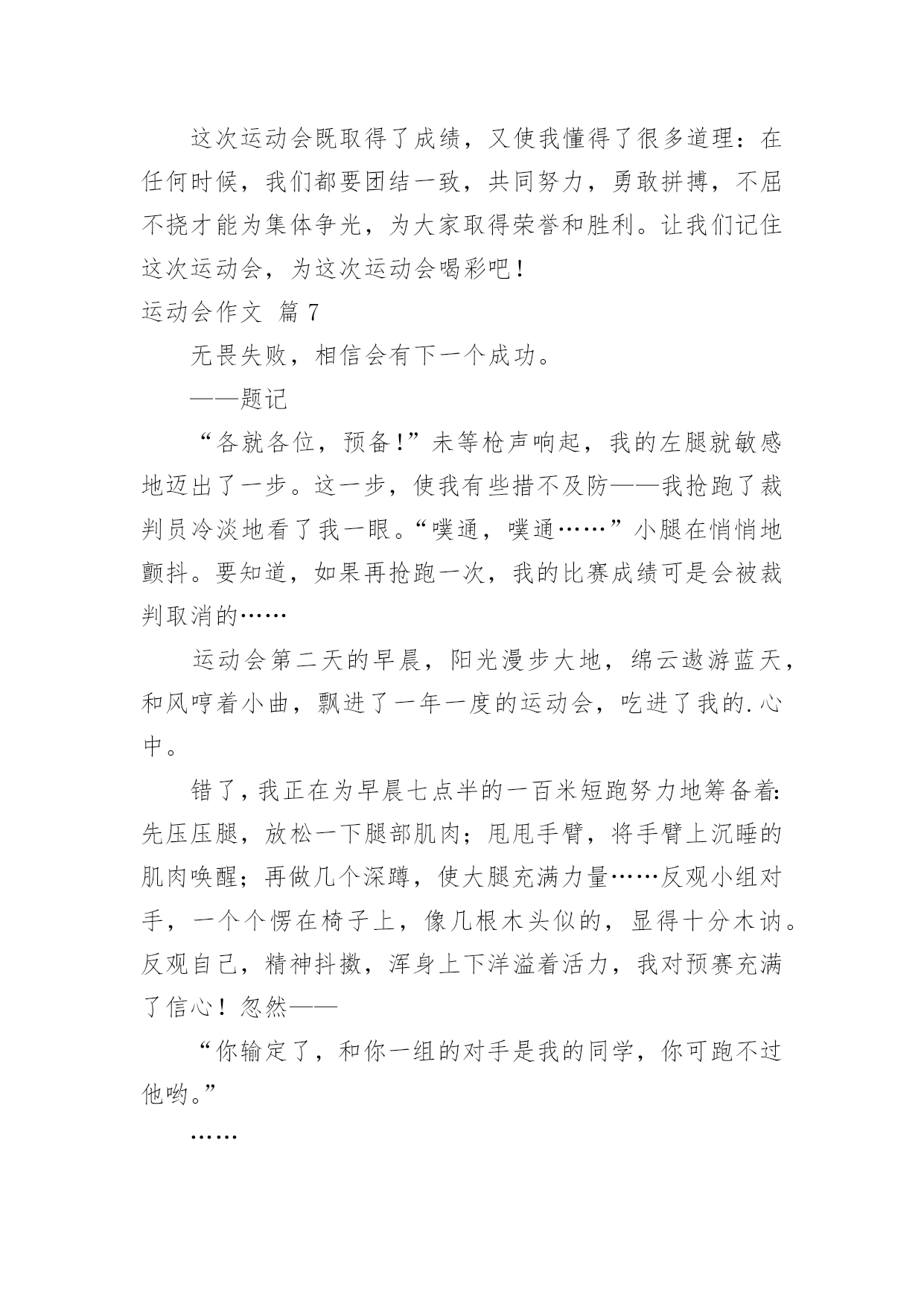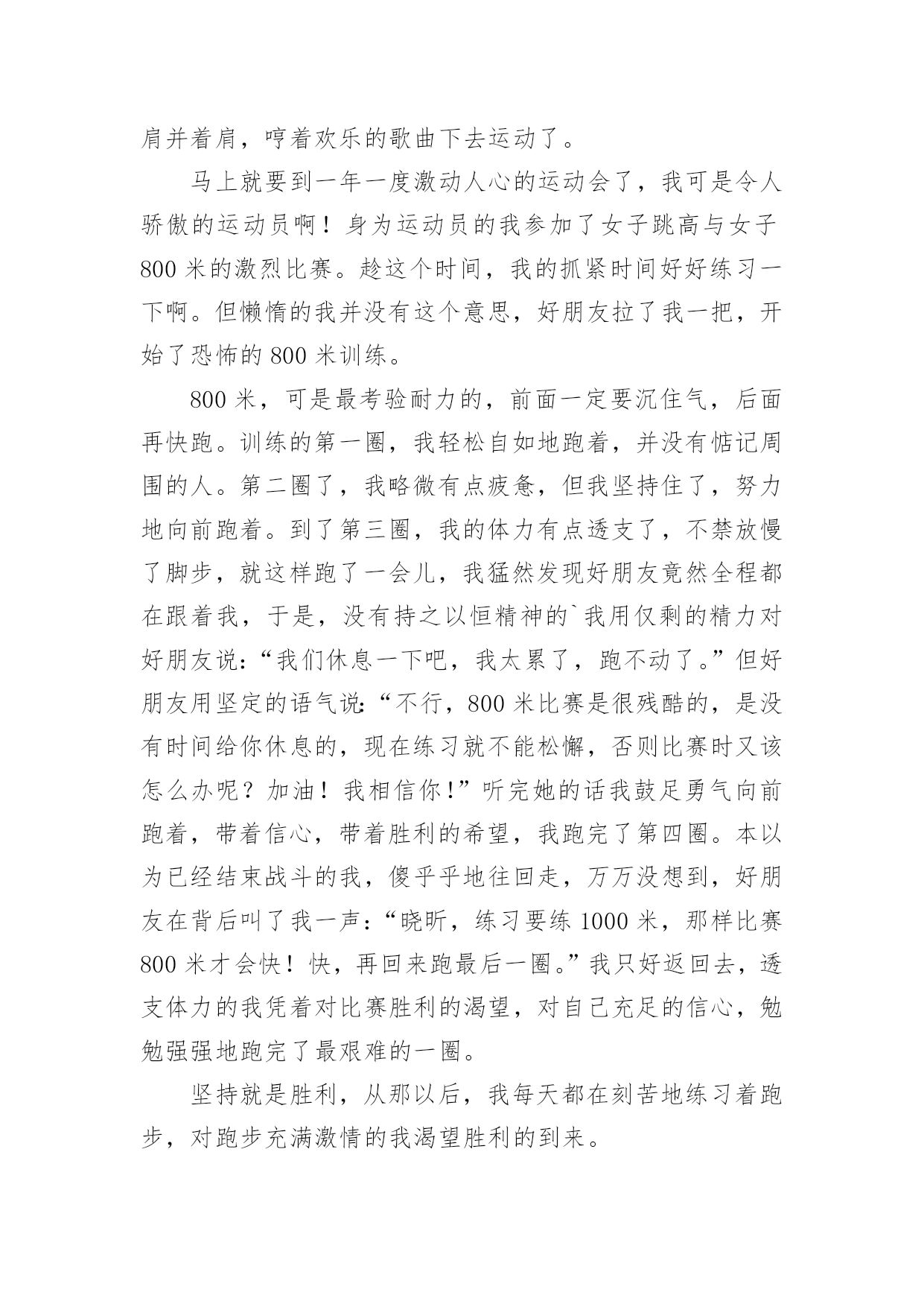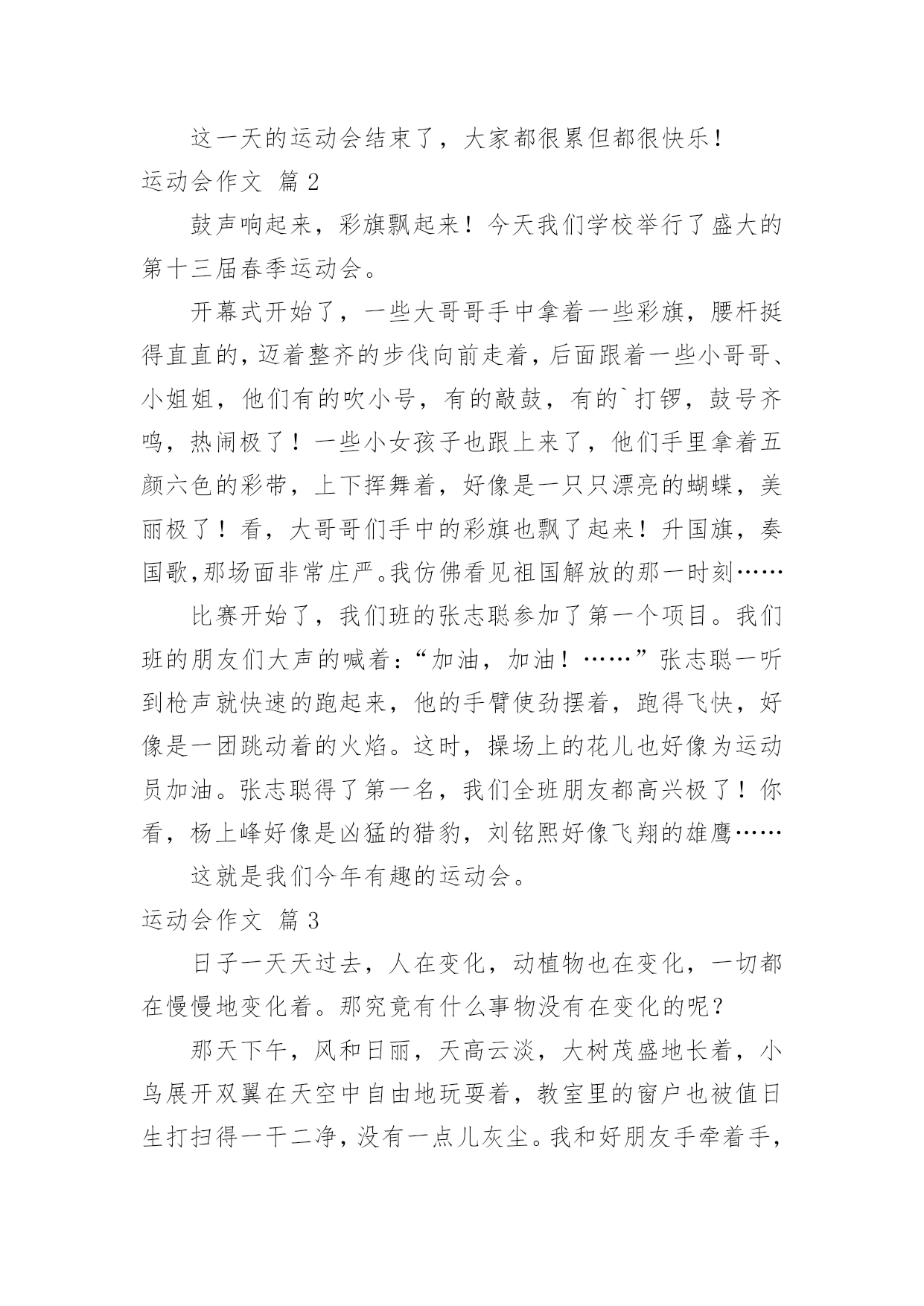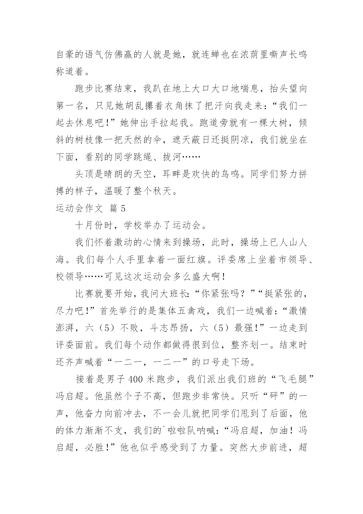 运动会作文运动会作文8篇[优]在学习、工作乃至生活中,大家都接触过作文吧,作文是由文字组成,经过人的思想考虑,通过语言组织来表达一个主题意义的文体。那么,怎么去写作文呢?下面是小编为大家收集的运动会作文8篇,欢迎阅读,希望大家能够喜欢。运动会作文篇1几天前,老师说最近几天要举行春季运动会。大家都很兴奋,总觉得每一天都过得太慢了。老师选好运动员后他们每天都努力训练,当然我也是其中之一,大家都在为班级取的好成绩而努力。我们终于等到运动会开幕的那一天,观看的同学在看台上,运动员们准备着开幕仪式。首先走过主席台的是国旗方阵,各队的运动员穿着同样的校服,喊着响亮的口号,迈着矫健的步伐走过主席台。总于轮到我们班了,我们迈着整齐的步子,喊着自己准备好的口号从主席台经过,我感觉千万双眼睛盯着我。我们的腰板挺的更直了,个个精神抖擞。我们着绕跑道走了半圈,到达了班级指定位置。接下来是升国旗奏国歌,我们每周一次既严肃又庄严的升旗仪式开始了,全体师生起立,向国旗敬礼,那响起的国歌声在校园上空回荡。开幕式完成了,各班的运动员纷纷退场准备比赛。首先的是男子、女子60米跑,我们班是王嘉琦和王志娇参加比赛。首先比赛的'是男子组的王嘉琦,只听见体育老师手中的枪声“啪”的一响,王嘉琦开始跑了。他起跑慢了,这个时候大家都为他捏了一把汗,但王嘉琦越跑越快,他好似飞一般的奔跑。“不好了!”他在快撞线时,一个人竟然超过了他,王嘉琦得了第二名,不过还好他进了决赛。接下来是女子60米跑,王志娇参赛,王志娇唰的一下跑了出去她轻而易举的跑在了前面,一直遥遥领先轻轻松松的跑了个第一,我们欢呼起来。100米的男女子分别是,王梓晴和郭子一。郭子一看都不用看,因为他可是我们班的“飞毛腿”,果然不出我所料他获得了第一名。王梓晴上场了,她是我的好朋友我对她有一些不放心,心里像是有一块石头总是放不下。比赛开始了,果然那些对手很强大,王梓晴怎么也跑不过,我们大家一直在为她加油、呐喊、助威,还是有一点可惜王梓晴跑了第五名。她很是落的回到了看台没有进决赛。友谊第一比赛第二吗?大家一起安慰她,她的心情又好了起来。终于到我的比赛项目了,投实心球。我是一个新手,第一次尝试总是怕投不好。我只好一遍遍的对自己说:“相信自己,相信自己我管不了了,只好奋力一博。”我竭尽全力,用力一投“啊!太好了!我破记录了!”我欢呼道太好了,我为班级得分了!还有几个趣味项目,屡带战车、赶猪跑、抢收抢种,都是一等奖,我们班今次总分在全年级获得了第二名的好成绩。这一天的运动会结束了,大家都很累但都很快乐!运动会作文篇2鼓声响起来,彩旗飘起来!今天我们学校举行了盛大的第十三届春季运动会。开幕式开始了,一些大哥哥手中拿着一些彩旗,腰杆挺得直直的,迈着整齐的步伐向前走着,后面跟着一些小哥哥、小姐姐,他们有的吹小号,有的敲鼓,有的`打锣,鼓号齐鸣,热闹极了!一些小女孩子也跟上来了,他们手里拿着五颜六色的彩带,上下挥舞着,好像是一只只漂亮的蝴蝶,美丽极了!看,大哥哥们手中的彩旗也飘了起来!升国旗,奏国歌,那场面非常庄严。我仿佛看见祖国解放的那一时刻……比赛开始了,我们班的张志聪参加了第一个项目。我们班的朋友们大声的喊着:“加油,加油!……”张志聪一听到枪声就快速的跑起来,他的手臂使劲摆着,跑得飞快,好像是一团跳动着的火焰。这时,操场上的花儿也好像为运动员加油。张志聪得了第一名,我们全班朋友都高兴极了!你看,杨上峰好像是凶猛的猎豹,刘铭熙好像飞翔的雄鹰……这就是我们今年有趣的运动会。运动会作文篇3日子一天天过去,人在变化,动植物也在变化,一切都在慢慢地变化着。那究竟有什么事物没有在变化的呢?那天下午,风和日丽,天高云淡,大树茂盛地长着,小鸟展开双翼在天空中自由地玩耍着,教室里的窗户也被值日生打扫得一干二净,没有一点儿灰尘。我和好朋友手牵着手,肩并着肩,哼着欢乐的歌曲下去运动了。马上就要到一年一度激动人心的运动会了,我可是令人骄傲的运动员啊!身为运动员的我参加了女子跳高与女子800米的激烈比赛。趁这个时间,我的抓紧时间好好练习一下啊。但懒惰的我并没有这个意思,好朋友拉了我一把,开始了恐怖的800米训练。800米,可是最考验耐力的,前面一定要沉住气,后面再快跑。训练的第一圈,我轻松自如地跑着,并没有惦记周围的人。第二圈了,我略微有点疲惫,但我坚持住了,努力地向前跑着。到了第三圈,我的体力有点透支了,不禁放慢了脚步,就这样跑了一会儿,我猛然发现好朋友竟然全程都在跟着我,于是,没有持之以恒精神的`我用仅剩的精力对好朋友说:“我们休息一下吧,我太累了,跑不动了。”但好朋友用坚定的语气说:“不行,800米比赛是很残酷的,是没有时间给你休息的,现在练习就不能松懈,否则比赛时又该怎么办呢?加油!我相信你!”听完她的话我鼓足勇气向前跑着,带着信心,带着胜利