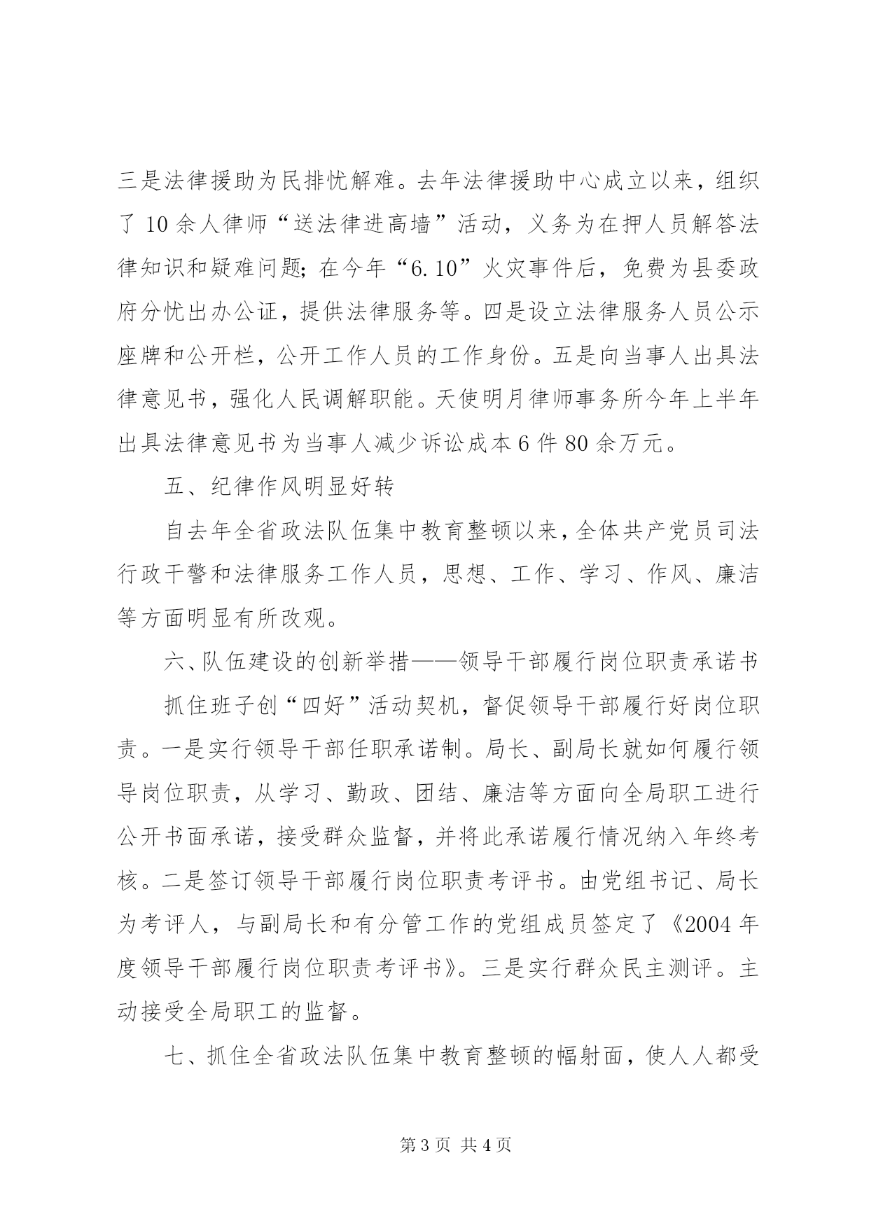 第PAGE\*Arabic\*MERGEFORMAT4页共NUMPAGES\*MERGEFORMAT4页司法局开展“党员先锋工程”活动总结一、加强组织领导,强化目标责任根据局领导班子成员分工调整及局机关党支部换届的实际,完善充实“党员先锋工程”活动领导小组,仍实行“一把手”负总责,在局党组的领导下,分管领导各负其责的逐级层层落实机制。小组成员由纪检组长、工会主席、党支部书记、政治处主任及局办公室主任组成。日常工作由党支部负责,同时,仍将把“党员先锋工程”活动情况纳入年度全局目标考核范围,与股、室、处、所、中心层层签订目标责任书。二、加强学习,树立宗旨意识观念一是以健全和完善局中心组学习制度为基础,制定出中心组学习考勤记录、奖惩措施。二是结合全省政法队伍集中教育整顿为契机,在全局公务员队伍,聘用法律工作者和律师队伍中大力开展执法为民的宗旨意识教育。三是开展党内帮扶,大力提倡济贫扶困活动,为九龙乡洪涝灾害捐资1485元,捐衣物60余件,帮助受灾农户抗灾自救;帮助金旗水泥公司特困职工马敬坤扶助子女上学1000余元,解决了该户职工的燃眉之急;四是积极捐资建设救济贫困党员的帮扶基金近600元;五是积极组织开展和不断深化3月“爱民月”活动。开展“送法下乡”,共赠送书籍500余册,发放资料26000余份,解答咨询400余人次。六是建立法律服务党员示范岗。建立党员示范岗8个,评选示范党员被表彰3人。三、严格执法,热情为民服务(一)规范制度。一是新建工作制度44个,其中机关24个,法律服务11个,基层工作制度9个,基本上解决了教育整顿期间收集的意见和建议。二是分机关、直属单位、基层法律服务所三条线学习制度。三是加强法律法规和党的纪律教育,对省纪委、省监察厅关于共产党员先进性七个具体要求、《宪法》修正案、《行政许可法》、《行政诉讼法》、《依法行政纲要》等法律法规进行了学习。(二)建立和完善司法行政执法监督体系。一是以群众投诉举报、来信来访为主体,逐渐建立了投诉错案责任追究和惩罚制制度。二是严格查处违纪违规行为。2003年共受理来信来访投诉、举报19件,经调查核实,投诉举报事实基本属实的有14件查处14件.今年截止目前为止,共接待群众投诉举报9件,立案查处5件,结案5件,比去年同期下降50%。(三)建立法律服务投诉局长接待日制度。为加强队伍建设集中教育成果,树立良好的社会公众服务形象。建立了每隔周二法律服务投诉局长接待日制度。(四)建立法律工作热情服务平台。一是建立了县人民政府法律顾问律师团。二是为外出务工人员工伤死亡索赔提供法律服务,全局共办理(请登陆政法秘书网)工伤(亡)案件30件。三是法律援助为民排忧解难。去年法律援助中心成立以来,组织了10余人律师“送法律进高墙”活动,义务为在押人员解答法律知识和疑难问题;在今年“6.10”火灾事件后,免费为县委政府分忧出办公证,提供法律服务等。四是设立法律服务人员公示座牌和公开栏,公开工作人员的工作身份。五是向当事人出具法律意见书,强化人民调解职能。天使明月律师事务所今年上半年出具法律意见书为当事人减少诉讼成本6件80余万元。五、纪律作风明显好转自去年全省政法队伍集中教育整顿以来,全体共产党员司法行政干警和法律服务工作人员,思想、工作、学习、作风、廉洁等方面明显有所改观。六、队伍建设的创新举措——领导干部履行岗位职责承诺书抓住班子创“四好”活动契机,督促领导干部履行好岗位职责。一是实行领导干部任职承诺制。局长、副局长就如何履行领导岗位职责,从学习、勤政、团结、廉洁等方面向全局职工进行公开书面承诺,接受群众监督,并将此承诺履行情况纳入年终考核。二是签订领导干部履行岗位职责考评书。由党组书记、局长为考评人,与副局长和有分管工作的党组成员签定了《2004年度领导干部履行岗位职责考评书》。三是实行群众民主测评。主动接受全局职工的监督。七、抓住全省政法队伍集中教育整顿的幅射面,使人人都受到教育。一是在全省去年政法队伍集中教育整顿期间,把政法干警接受教育整顿的对象范扩大到内部从事法律服务的聘用工作人员。二是抓住今年全国律师教育整顿的契机,认真解决律师执业活动中“散、乱、差”问题。清理律师与法官在诉讼活动中不正当交往关系的问题,严格按照“两个六条禁令”进行检查剖析。三是抓住公证领域西安“宝马事件”典型案例,加大对公证员队伍的教育整顿。四是抓集中教育培训。今年,我局共参加市局公证员、律师、法律工作者培训30人次。全局参加省培训6人次,局内部举办业务培训班3次86人次。