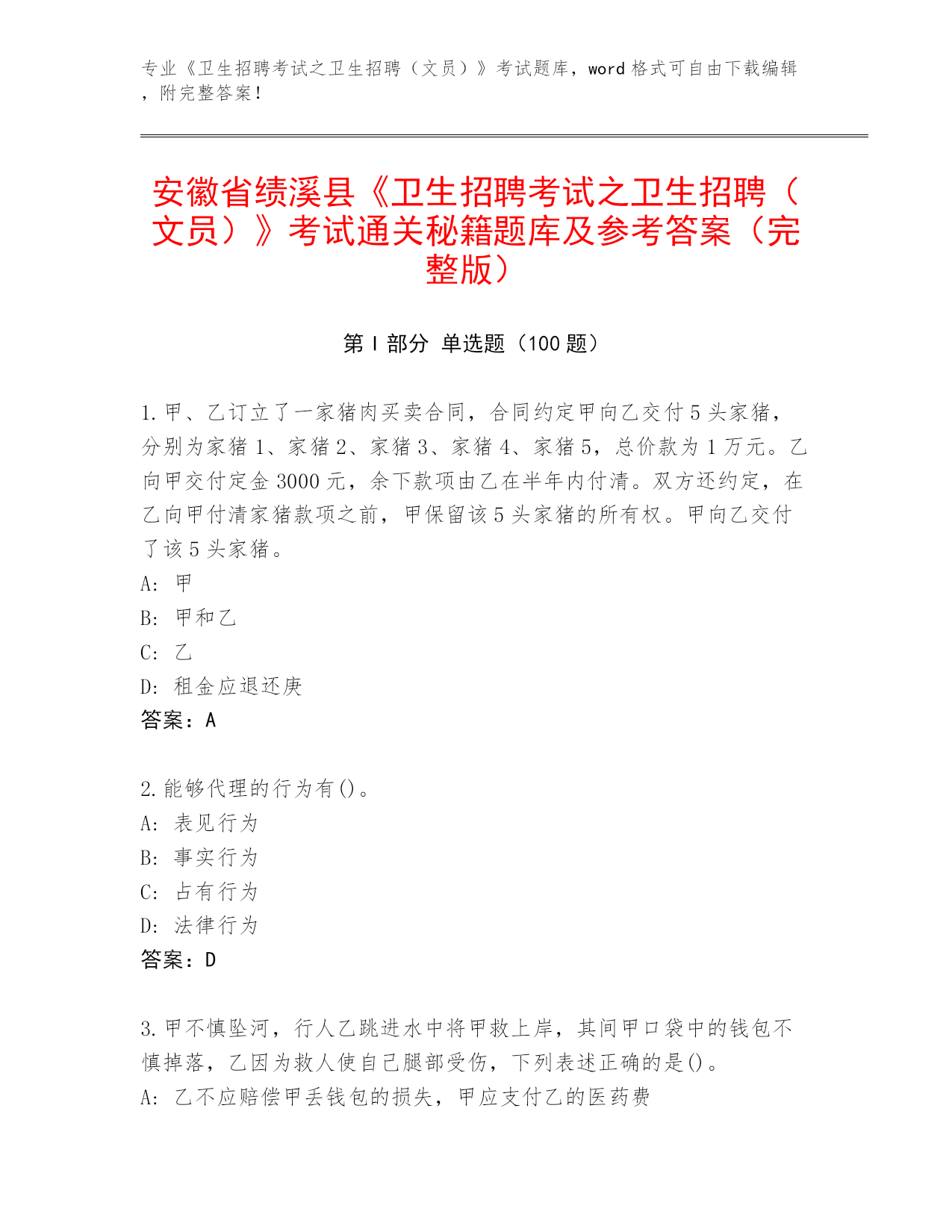 安徽省绩溪县《卫生招聘考试之卫生招聘(文员)》考试通关秘籍题库及参考答案(完整版)